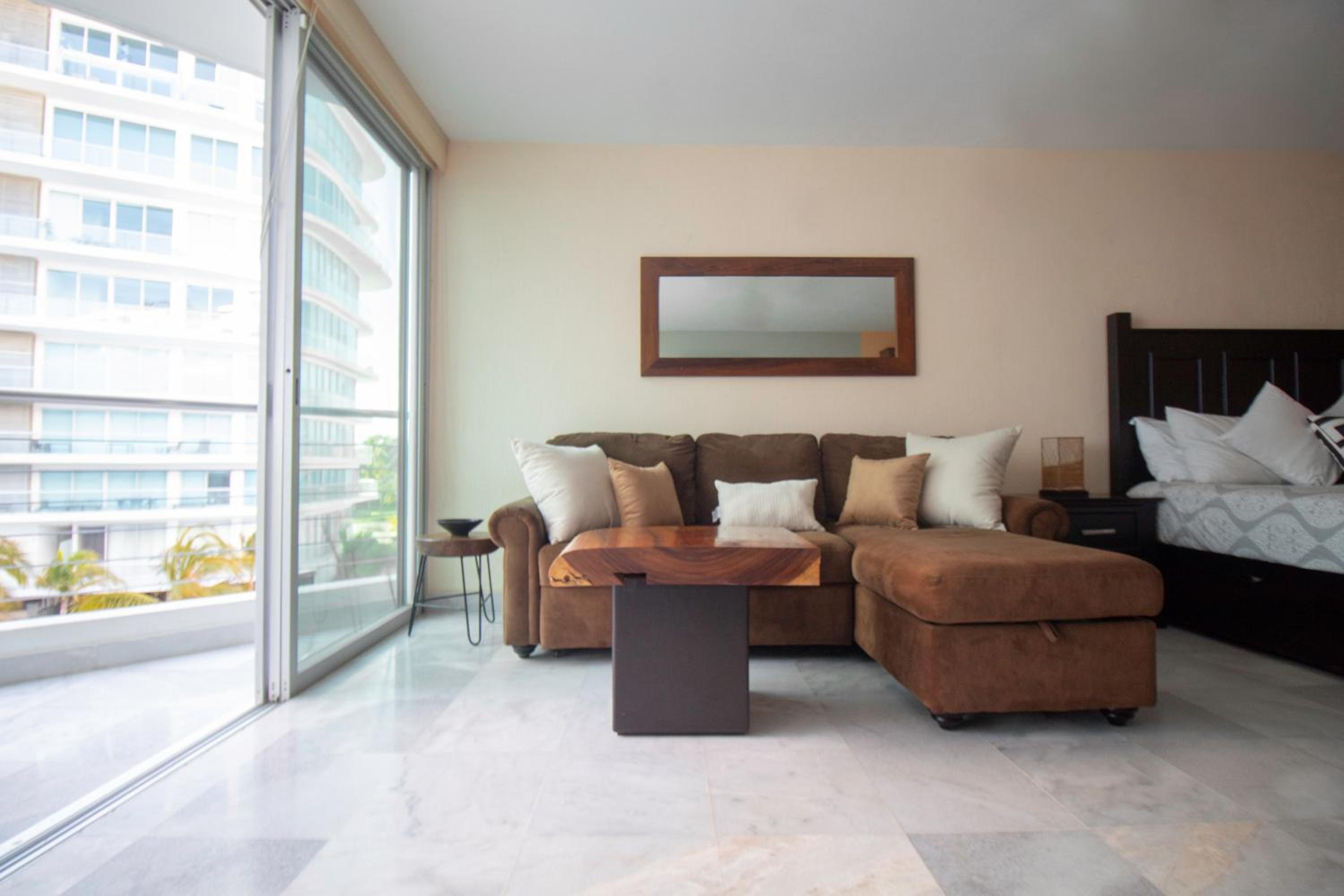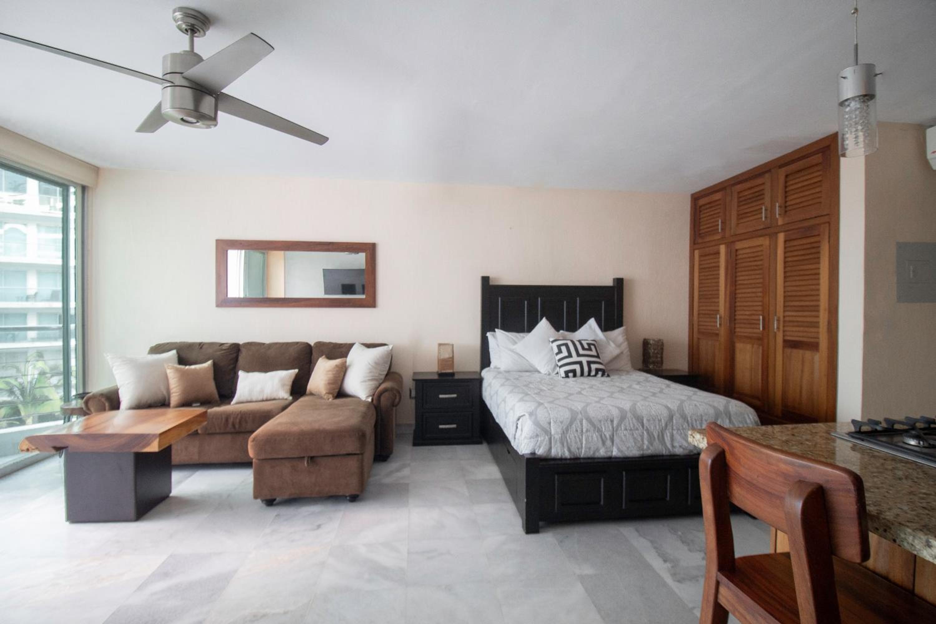 Enjoy mountain views from your private balcony at Suites at Aria Pacific Ocean Studio. Relax by the infinity pool or take a stroll on the private beach.