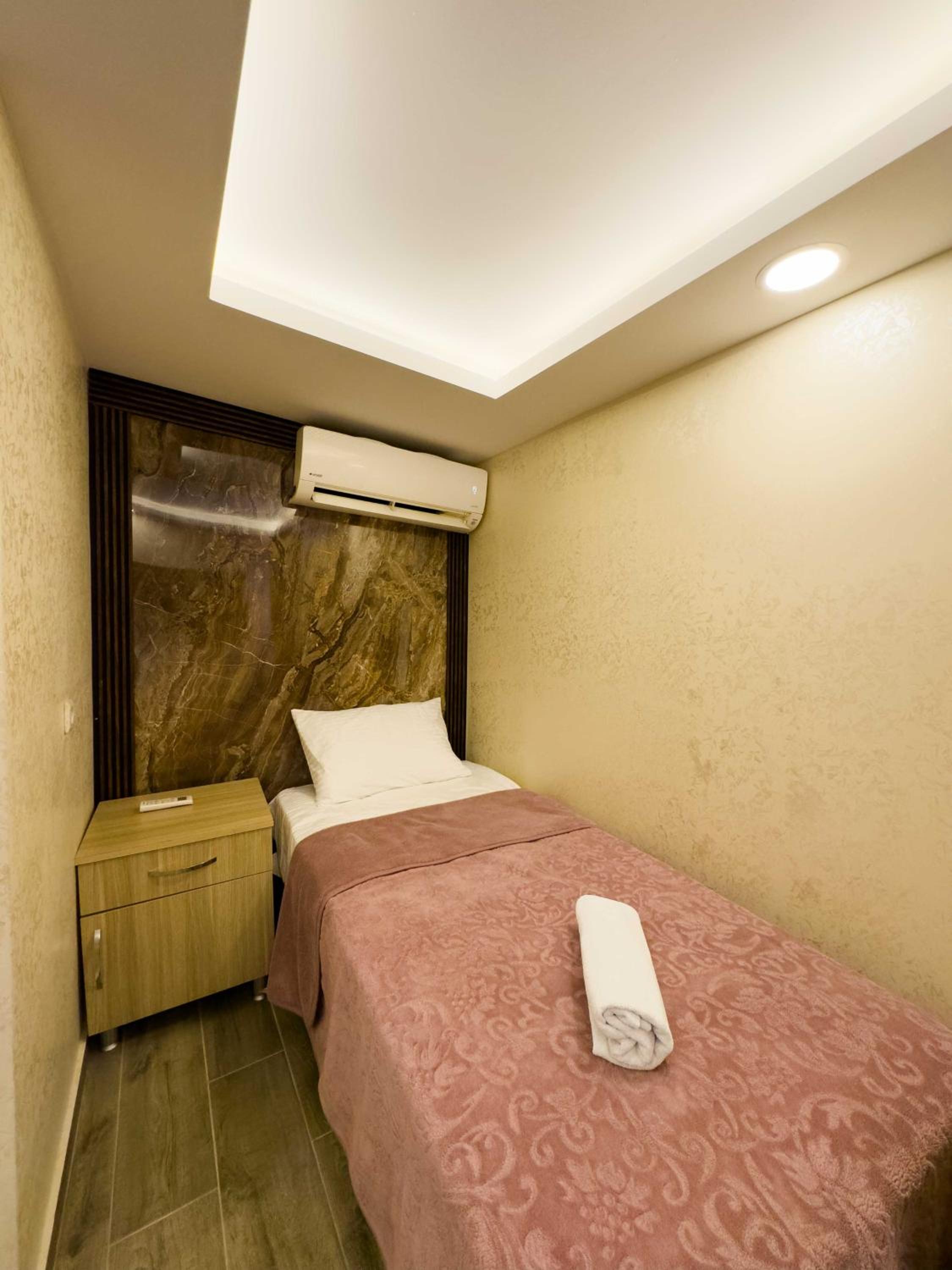 Tesisin konumu çok iyiydi metroya iki dakika yürüme mesafesinde sıcak su var klima çalışıyor temiz havlu var gayet iyiydi çalisanlar kibardı. Fiyat performans ancak bu kadar olur