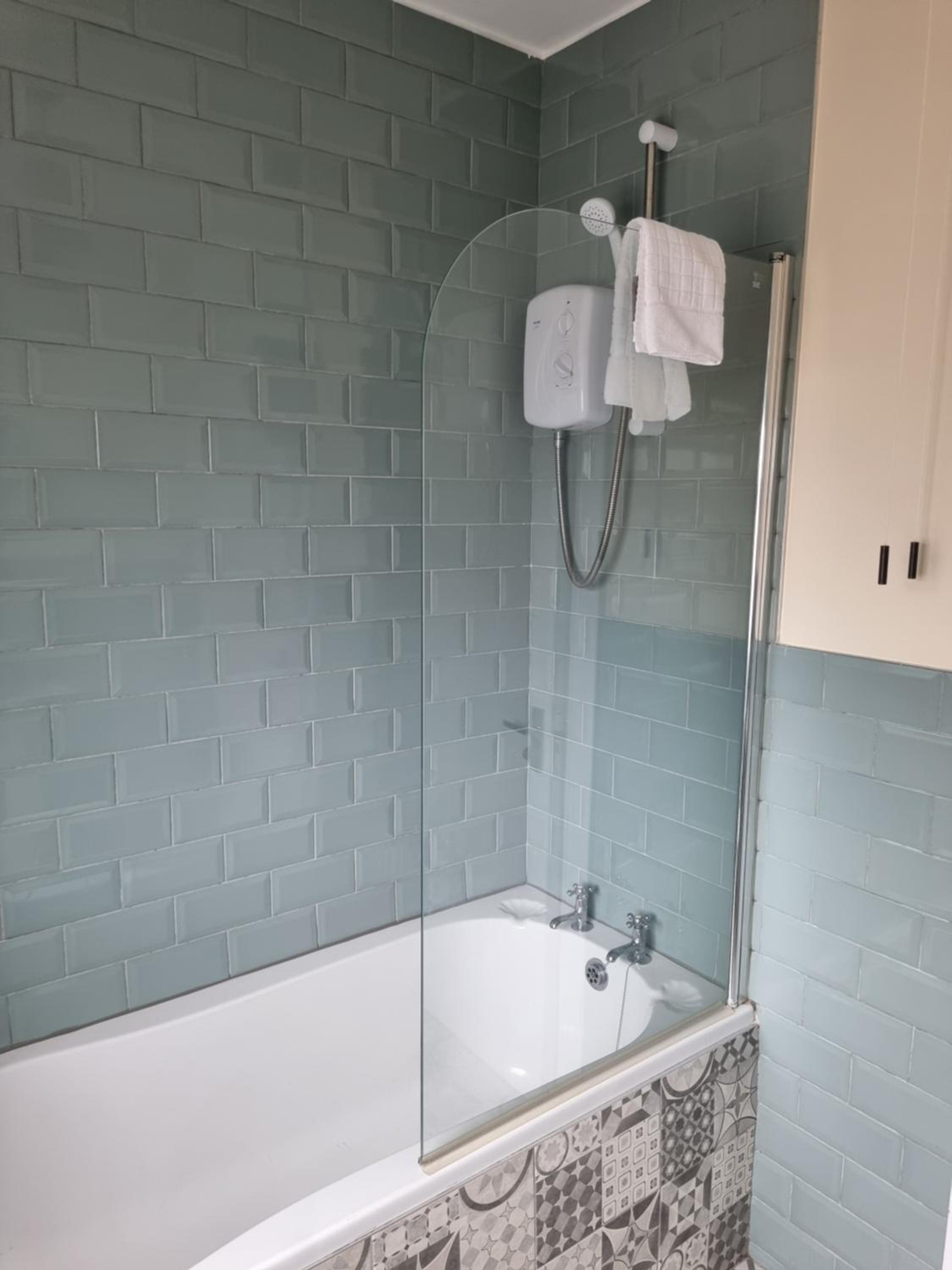 A TV would top it off nicely but safety rail required for shower in the bath. A fan for the warmer days would also be great
