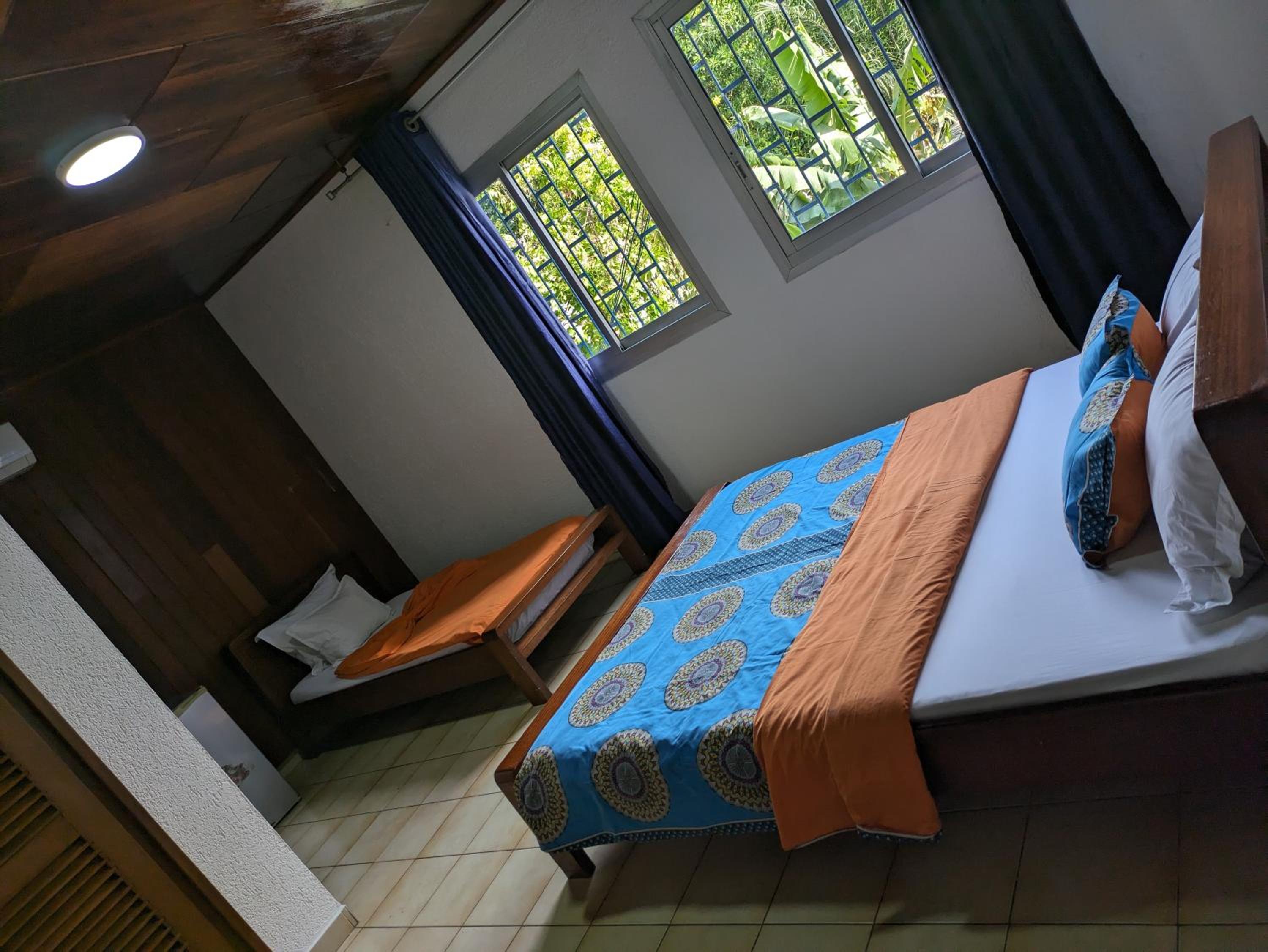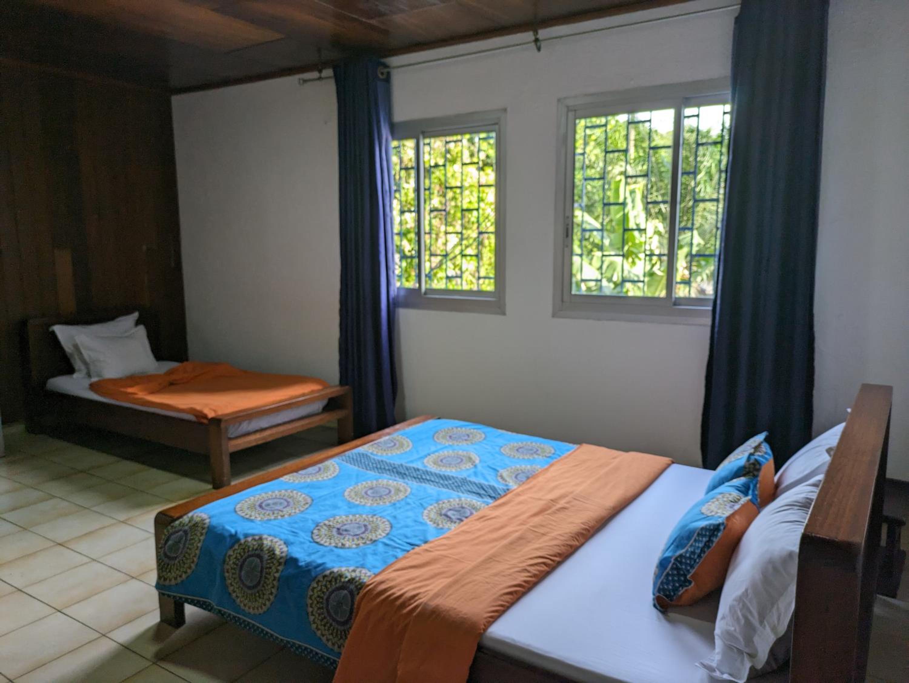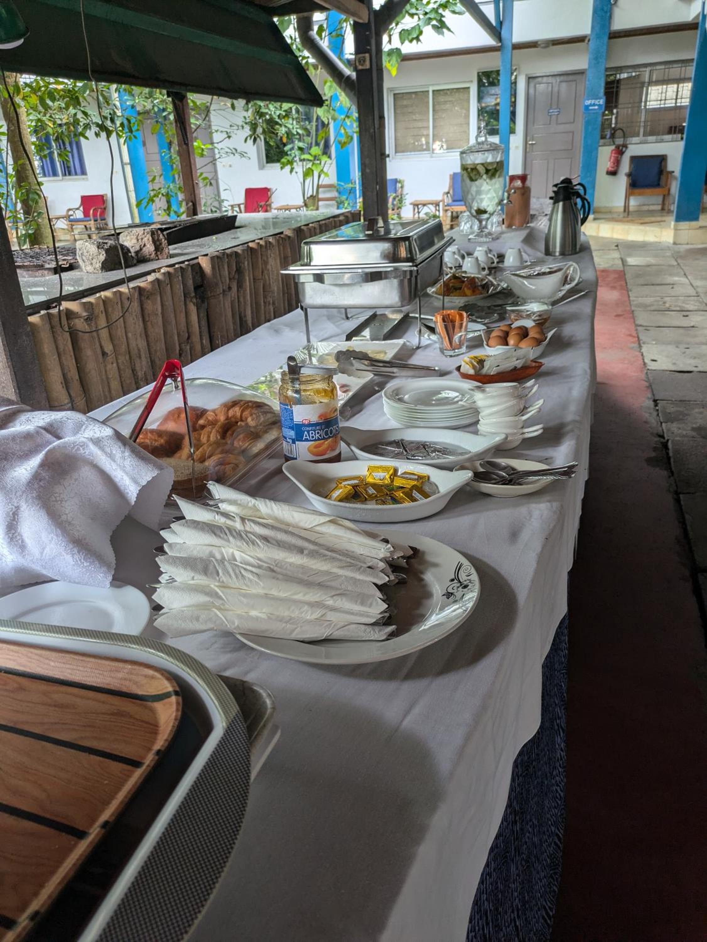Le toit en tôte s'avère assez bruyant lors des averses. Le petit-déjeuner n'est servi qu'à 7h30. Or à Douala, les embouteillages imposent souvent un départ à 7h au plus tard