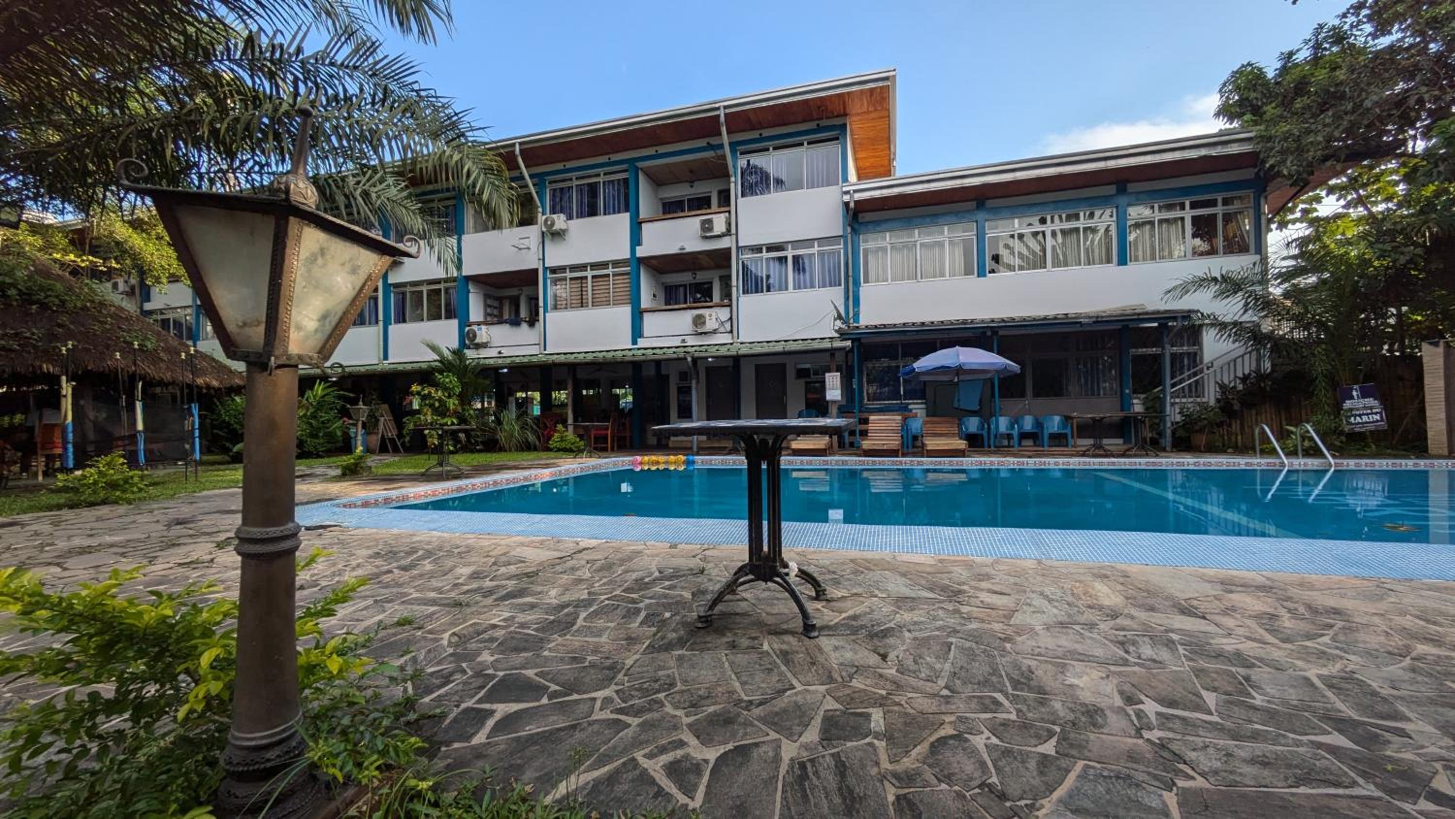 Haven of peace in the middle of a chaotic city. Garden offers a lot of corners where you can quitely work. The swimming pool is good size for swimming. Staff very friendly.