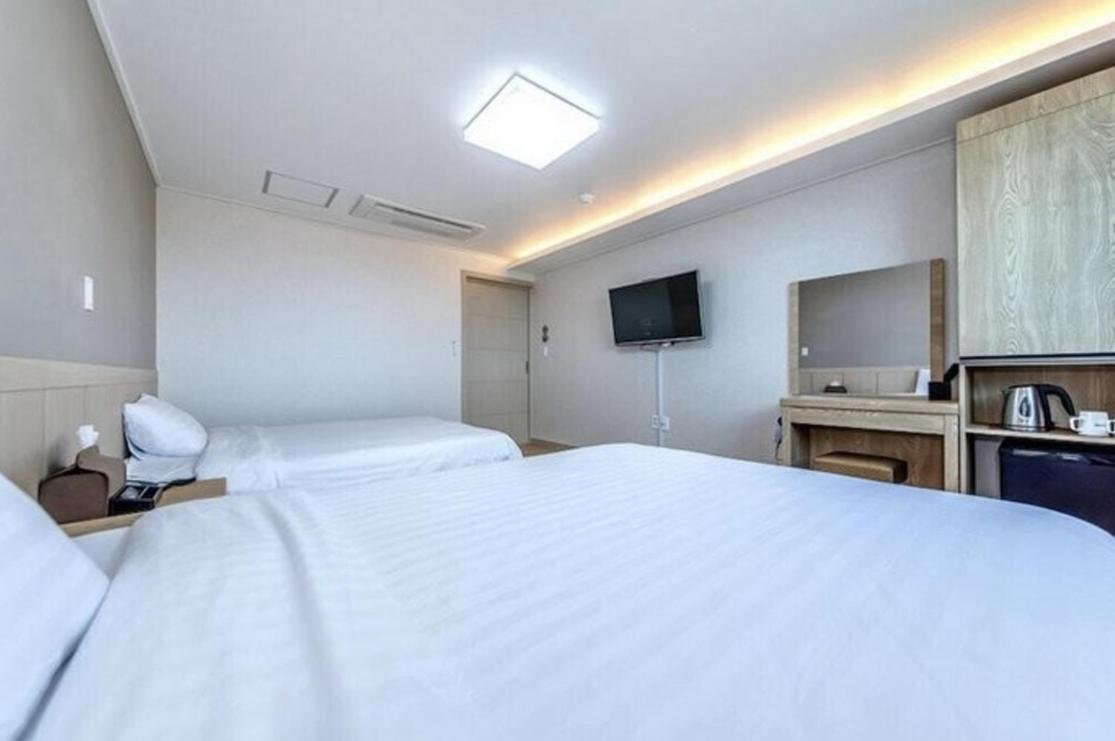 The hotel boasts spacious family rooms, perfect for a relaxing stay with loved ones. The 24-hour front desk staff fluent in Korean and Chinese ensures a smooth check-in process and caters to guests' needs at all times.