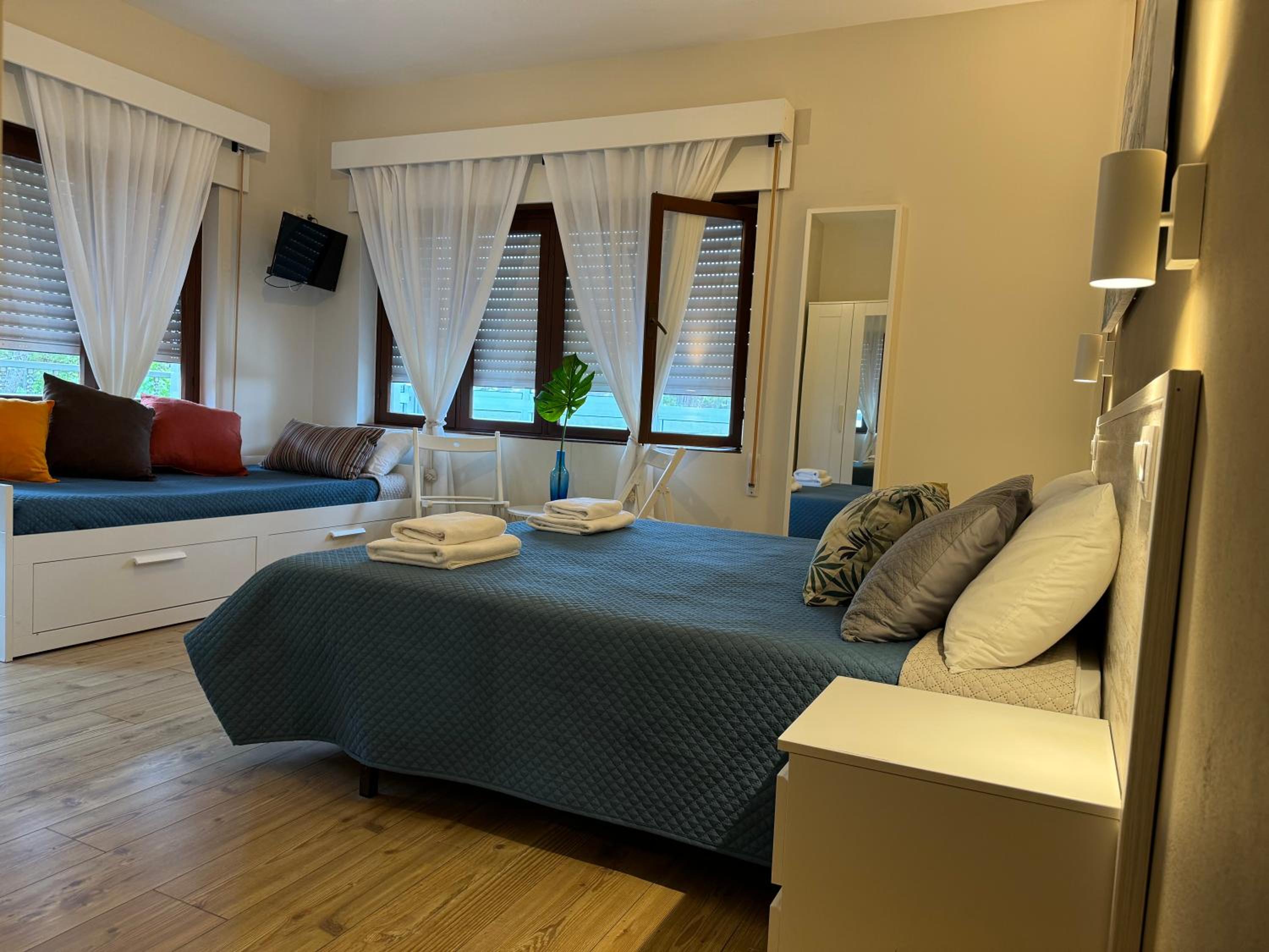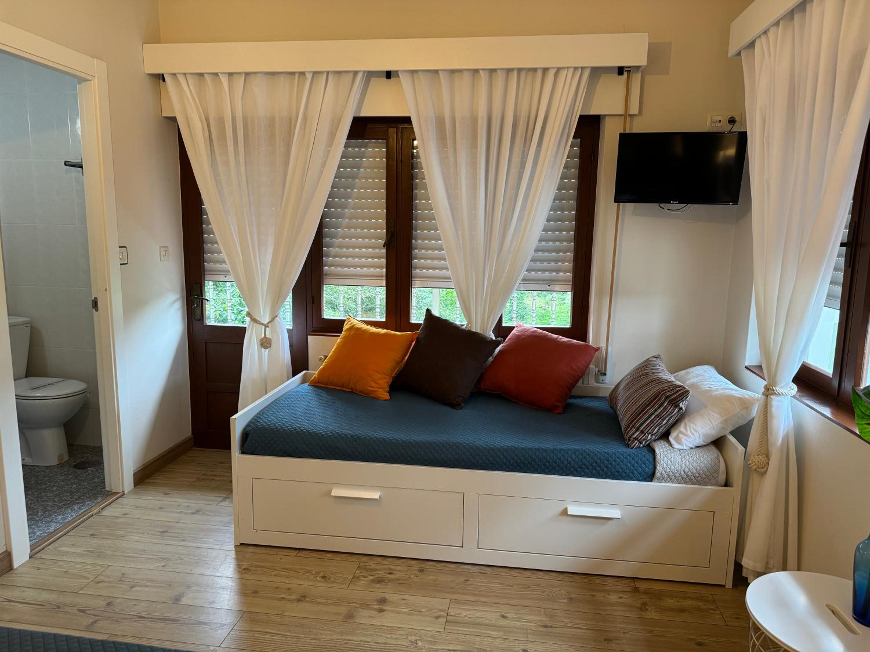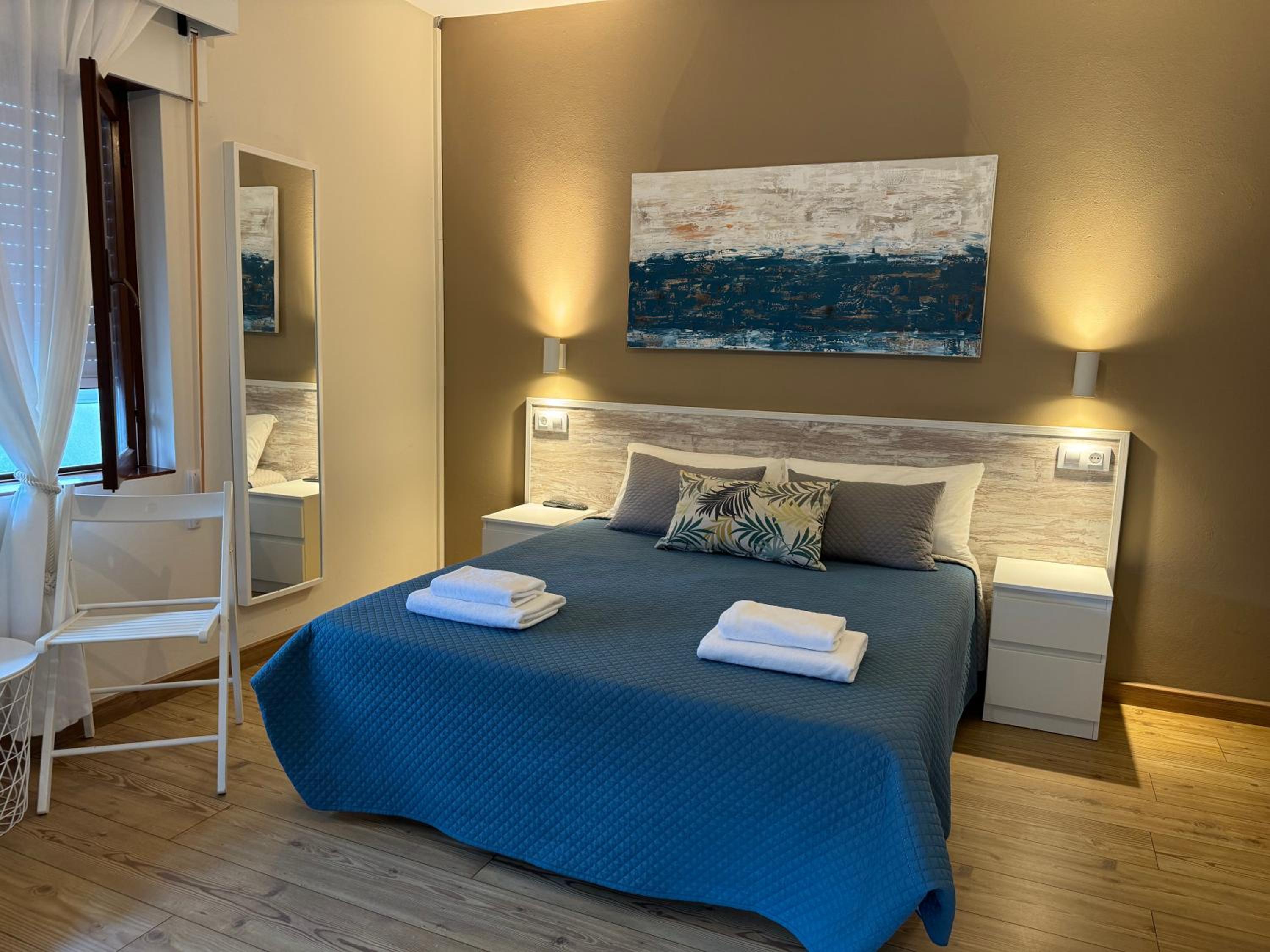 La limpieza debajo de la cama inexistente y alguna otra zona. Las toallas y la colcha de la cama tenían manchas y marcas de mucho uso. En el baño había marcas de haber existido un toallero junto al lavabo que ya no está, las toallas hay que ponerlas sobre el mismo lavabo y tardan en secar, no se pueden poner en el toallero de las toallas de baño porque no se secan ni una ni otra. Las fotos que se ven en booking o en la web del alojamiento no aparece esta habitación. El mobiliario es bastante más antiguo o inexistente respecto a las fotos de ambos sitios.