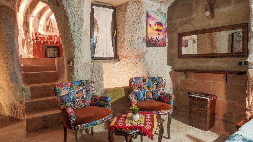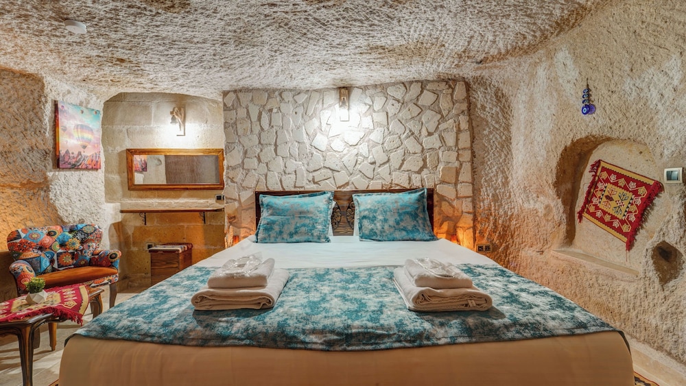 Oda çok otantik ve güzeldi ancak mağara olması bizi biraz darladı yani konsept o ama bunu bilerek seçin. Pencere yoktu ve rutubet vardı mağaradan dolayı. Jakuzili oda seçtik honeymoon büyük odaydı. Oda ilk girdiğimde banyoda bi tutam saç ve önceki misafirlerden kalan havlular kapının arkasındaydı. Onun dışında diğer alanlar gayet temizdi. Terasın manzarası harika. Kahvaltılarıda çok güzeldi. Ablanın ismini öğrenmedim ama bizimle çok ilgilendi çok güleryüzlüydü. Her şey için teşekkürler