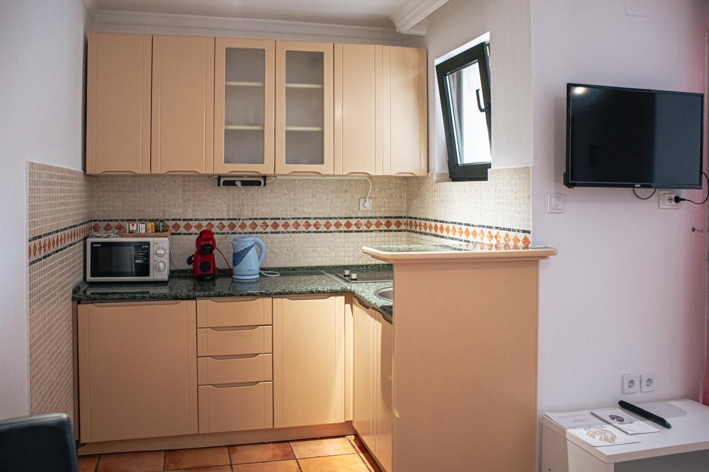 Небольшой уютный отель. Очень красивый вид из окна на море и горы. 👍 Комфортный чистый 2-комнатный номер с кухней . Можно заказать вкусный завтрак. Удобное местоположение, особенно если вы на машине.