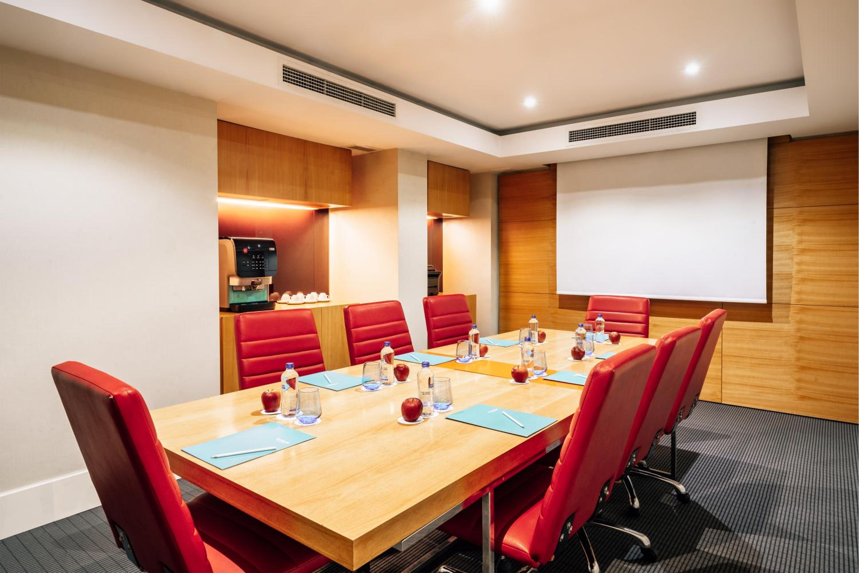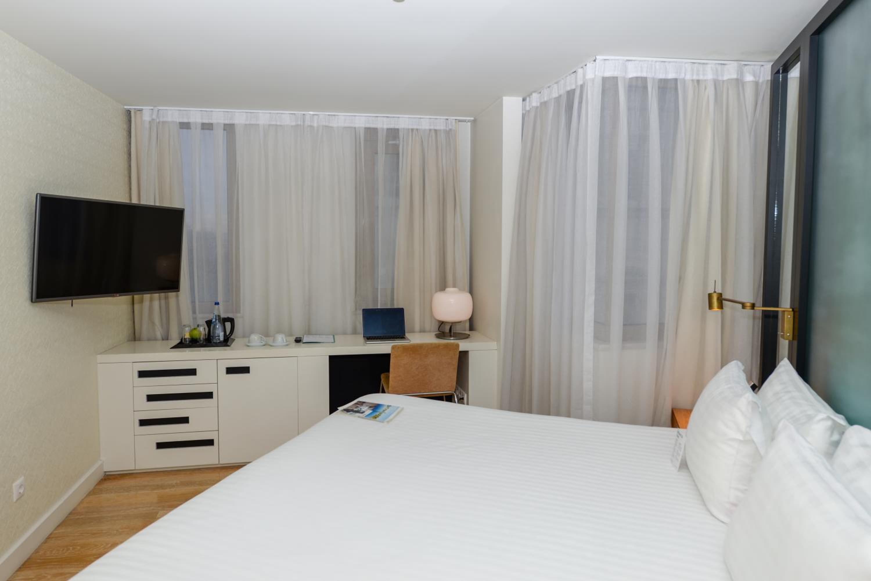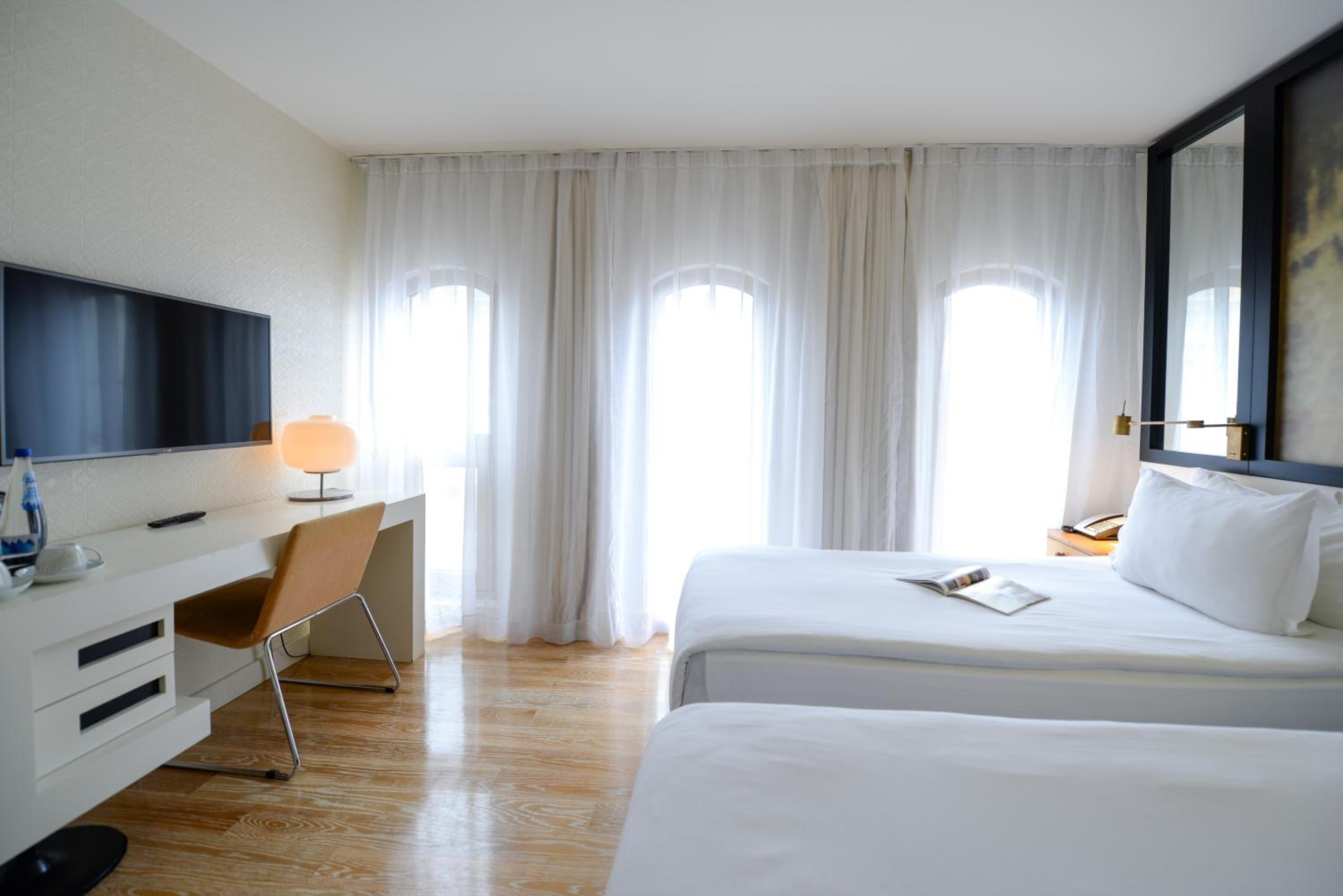 Each room and suite at the hotel features contemporary decor, flat-screen TVs, air conditioning, and minibars, ensuring a comfortable stay with all the necessary conveniences.