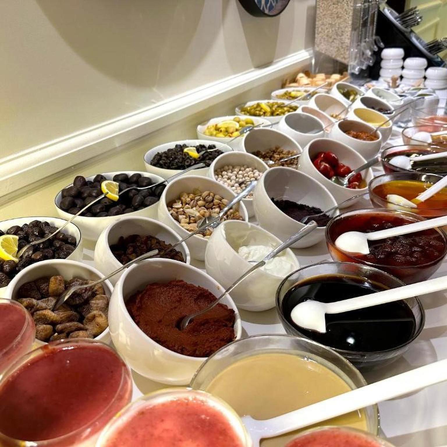 Zimmereinrichtung war schön, Frühstück war reichhaltig &gut - tolle Mezzeauswahl, viele Süße Sachen zum Probieren, Lobby war hübsch, kleiner Balkon am Zimmer.