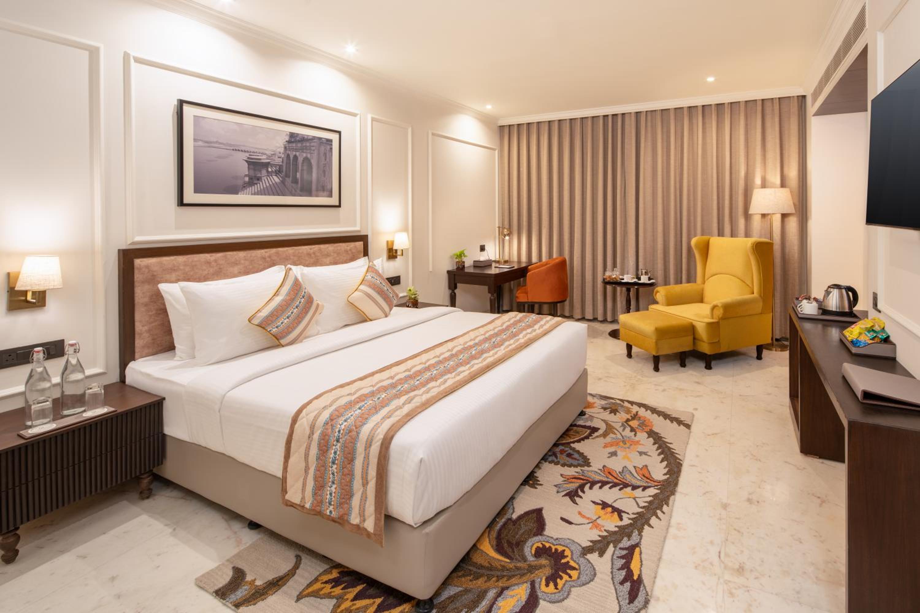 To book your stay at Brij Eternity, Vrindavan By Leisure Hotels and indulge in a relaxing getaway amidst nature and luxury amenities.