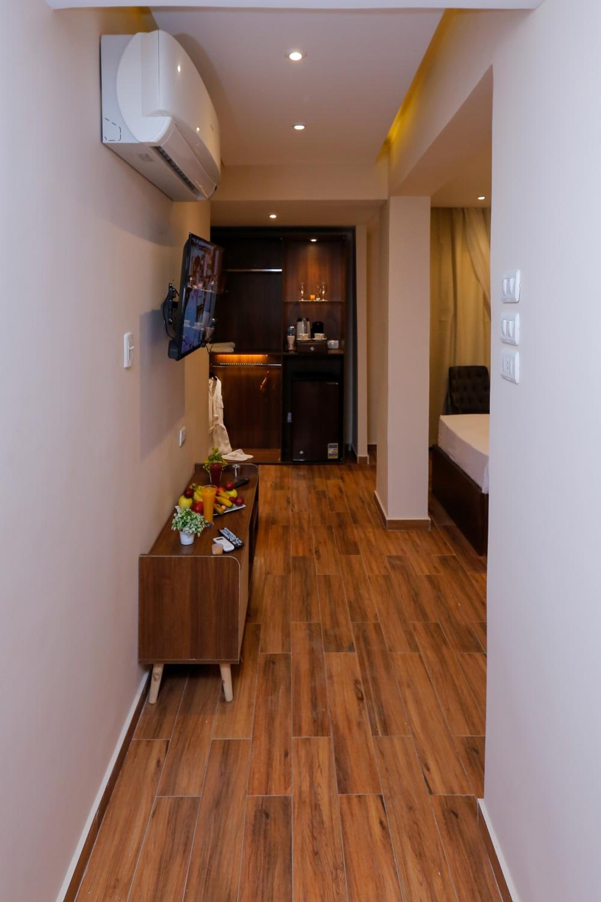 The small private balcony with 3 giza pyramids undisturbed view was one of the highlights. 2 minutes walk to the giza entrance, lot of options to eat very near, safe area in the center of touristic action. New room, nice and modern, good facilities like mattresses, hot water etc. A disk of ordinary breakfast was served in the room, which is convenient if you want an early start to the sights. Feels more like apartments for rent, but there is always someone on whatsapp for whatever you need, including car, tours etc. Honest advice on taxi to the museum etc. Recommended 100%