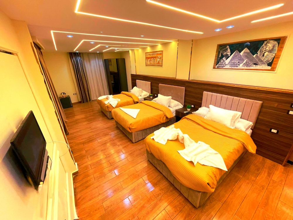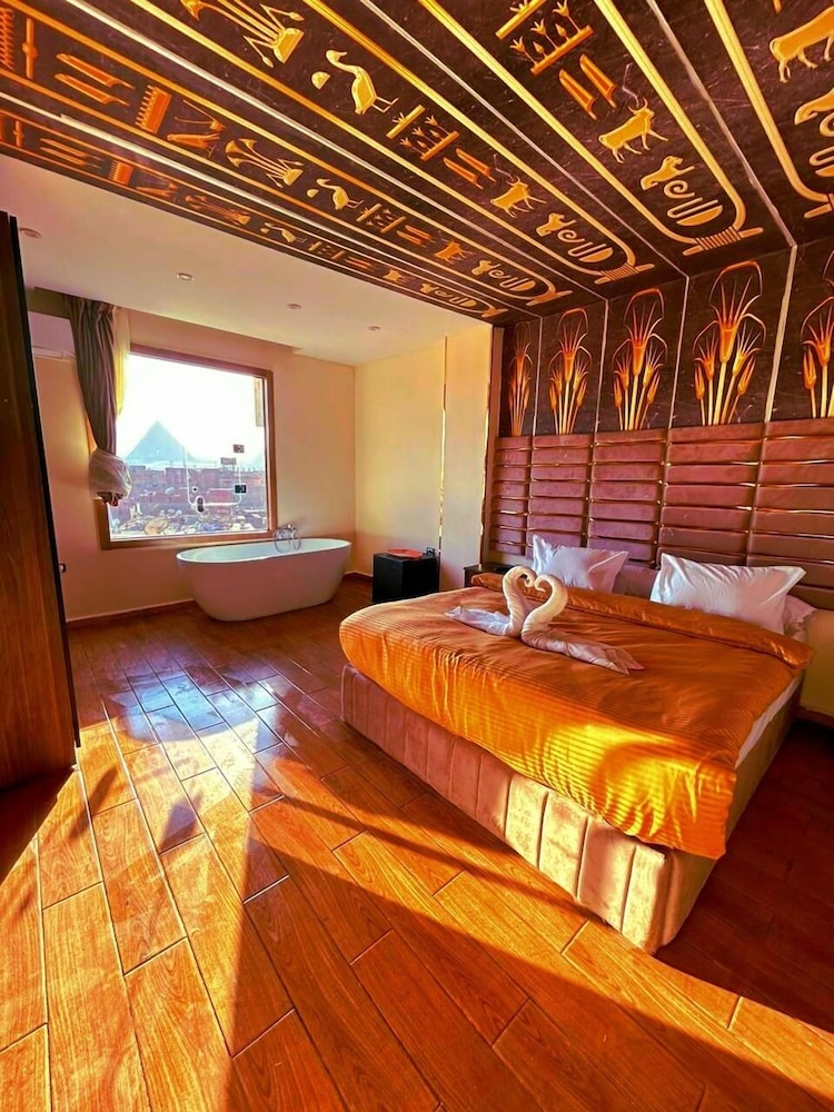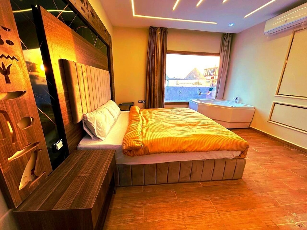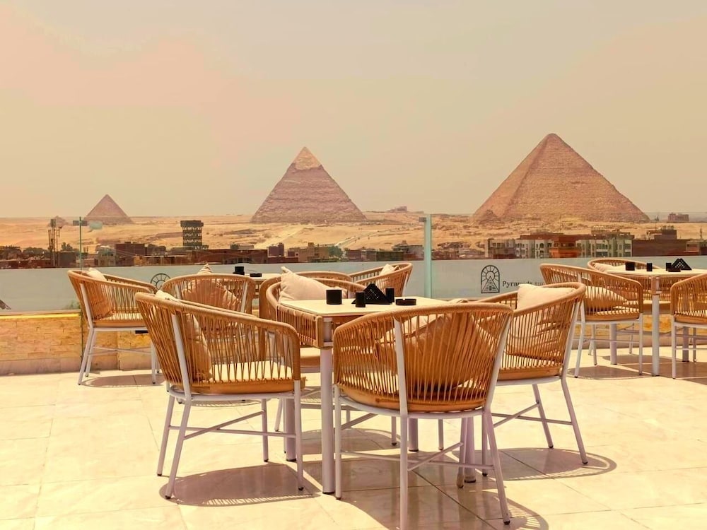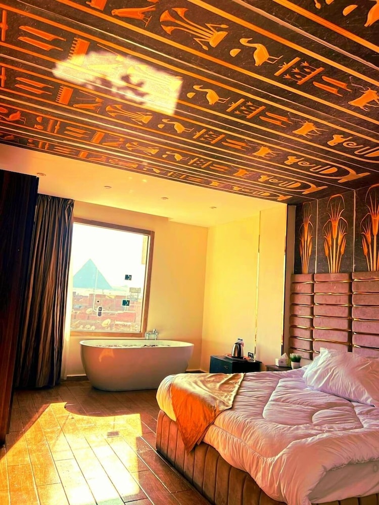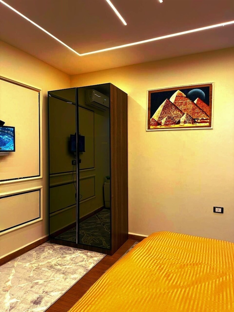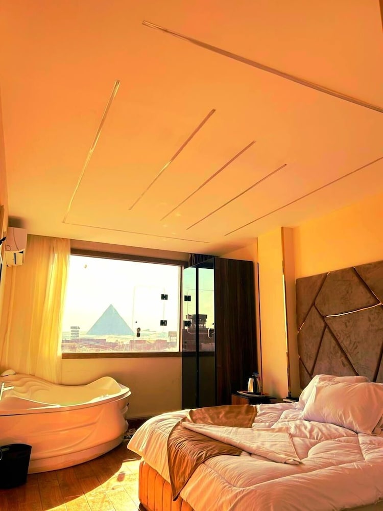 This is not a place fit for people to stay. We booked the wrong hotel. All the hotels in the area have pyramids in their name we ended up here by mistake. We were 8 persons, all 8 of us are sick after spending only one night out of the two nights we wanted to stay. There is no front desk, after you get to the desk on the 8 floor after a boy in the street makes 10 different phone calls, they tried to do shady business. Long story short don’t stay here.