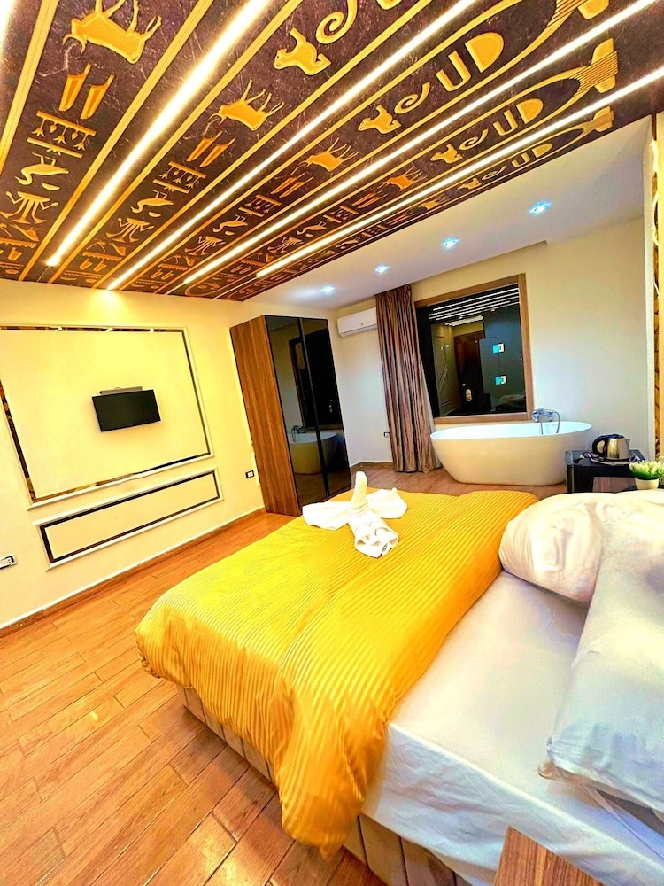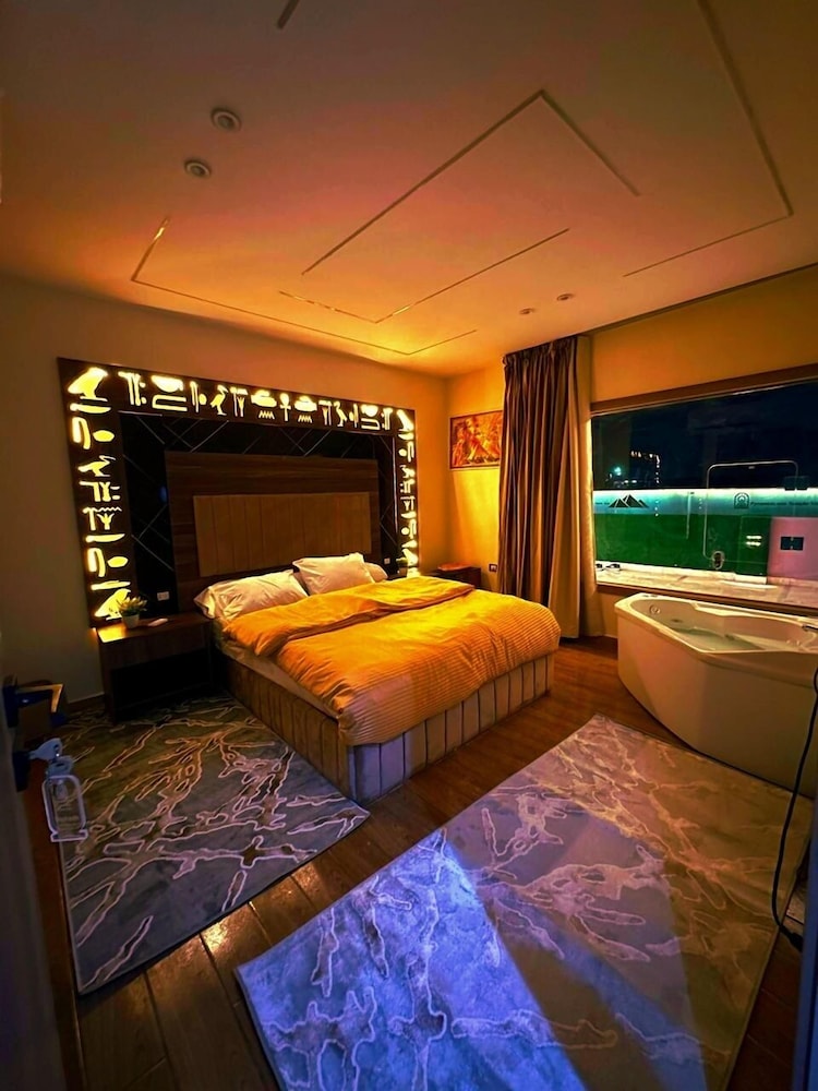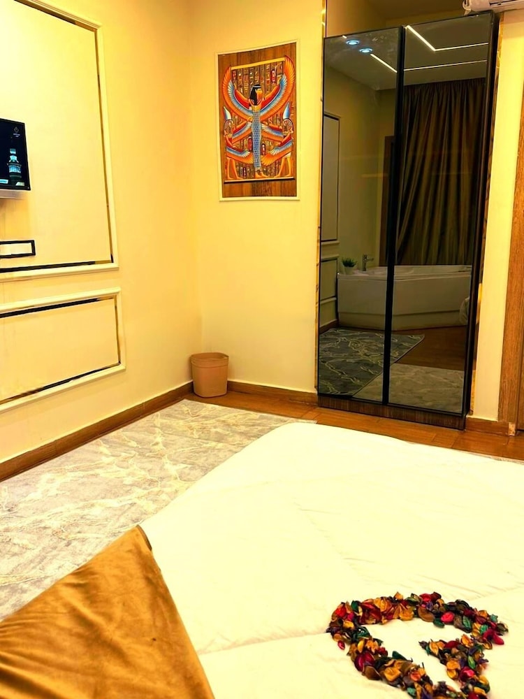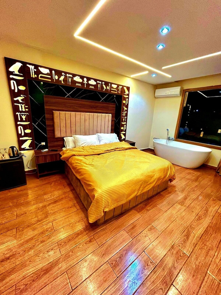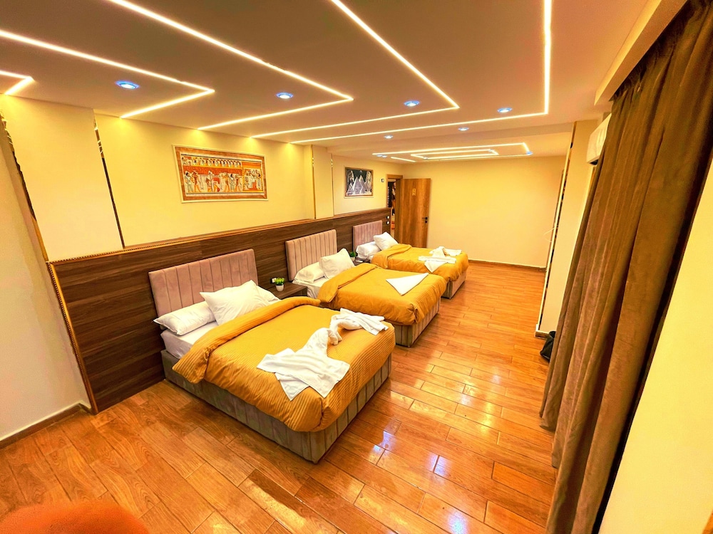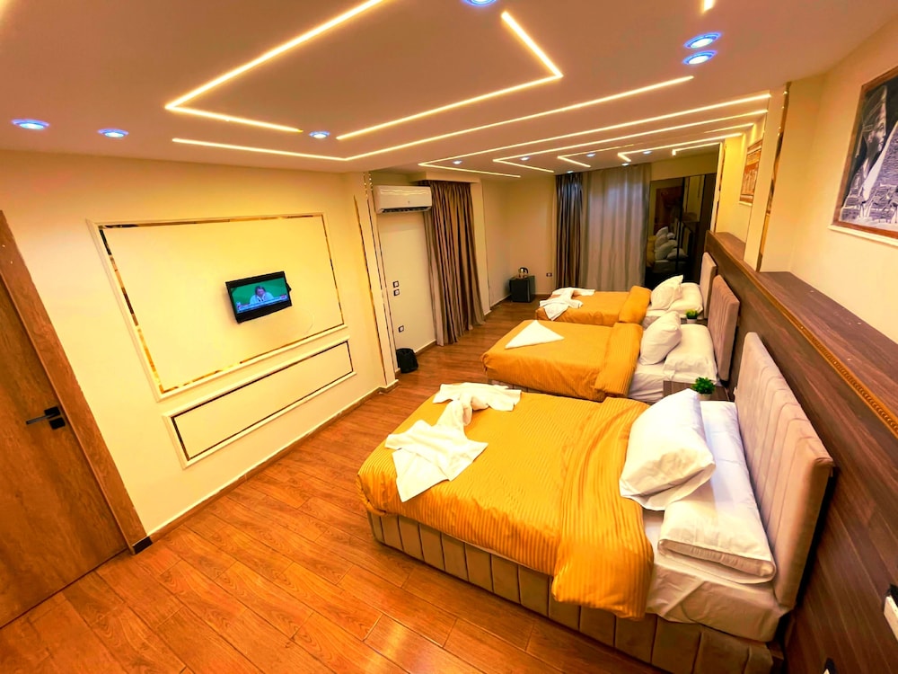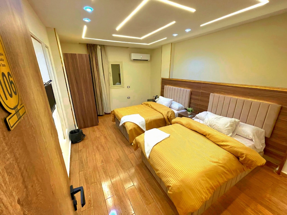 This is not a place fit for people to stay. We booked the wrong hotel. All the hotels in the area have pyramids in their name we ended up here by mistake. We were 8 persons, all 8 of us are sick after spending only one night out of the two nights we wanted to stay. There is no front desk, after you get to the desk on the 8 floor after a boy in the street makes 10 different phone calls, they tried to do shady business. Long story short don’t stay here.