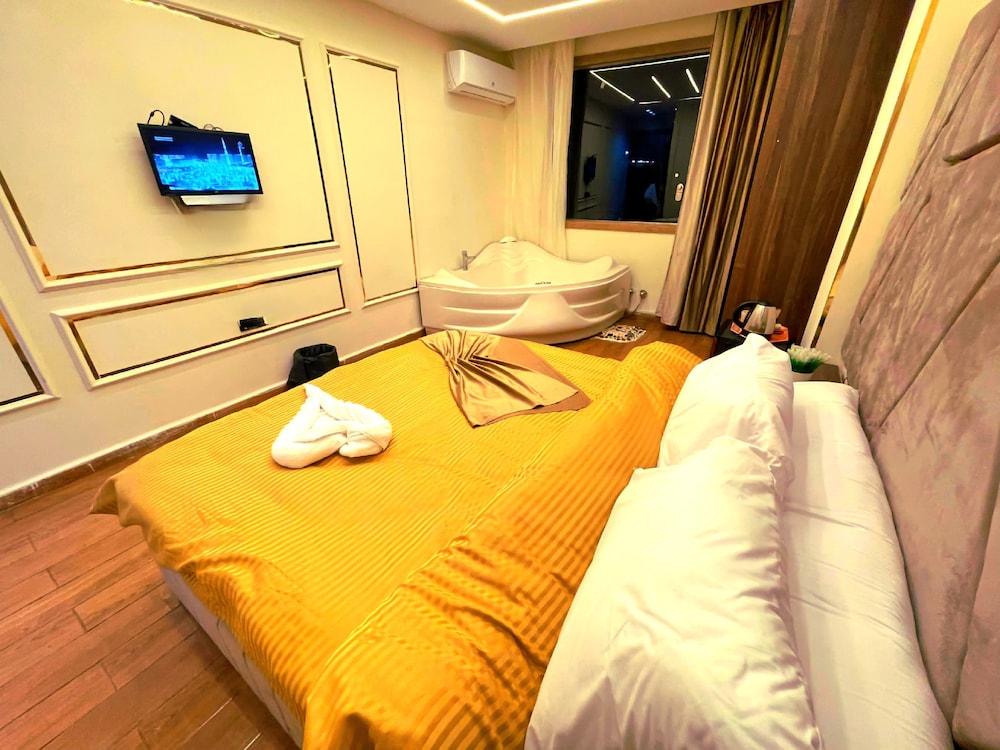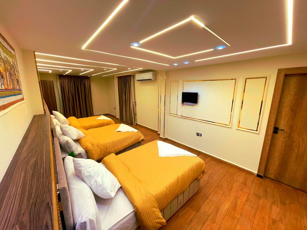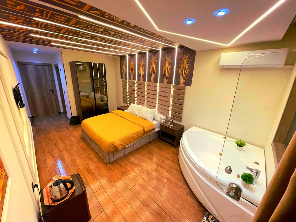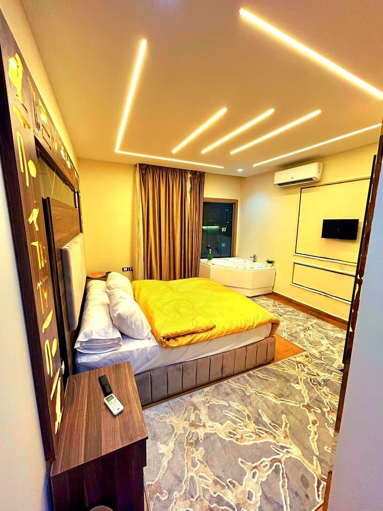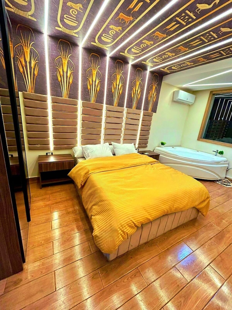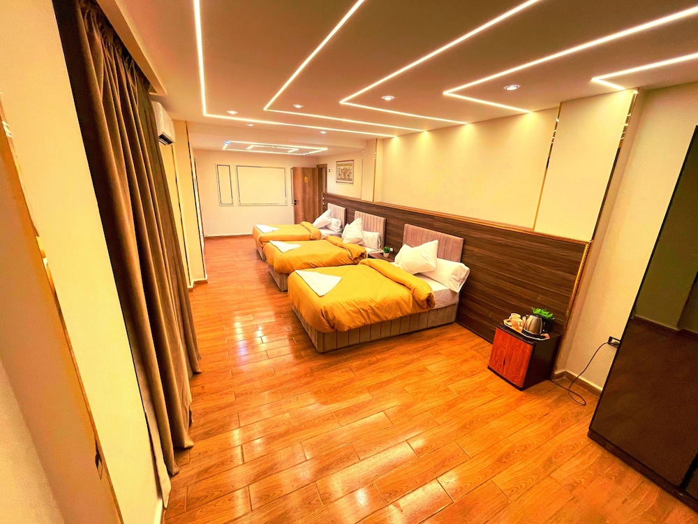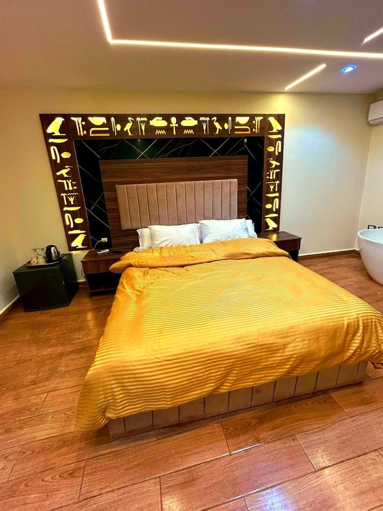 This is not a place fit for people to stay. We booked the wrong hotel. All the hotels in the area have pyramids in their name we ended up here by mistake. We were 8 persons, all 8 of us are sick after spending only one night out of the two nights we wanted to stay. There is no front desk, after you get to the desk on the 8 floor after a boy in the street makes 10 different phone calls, they tried to do shady business. Long story short don’t stay here.