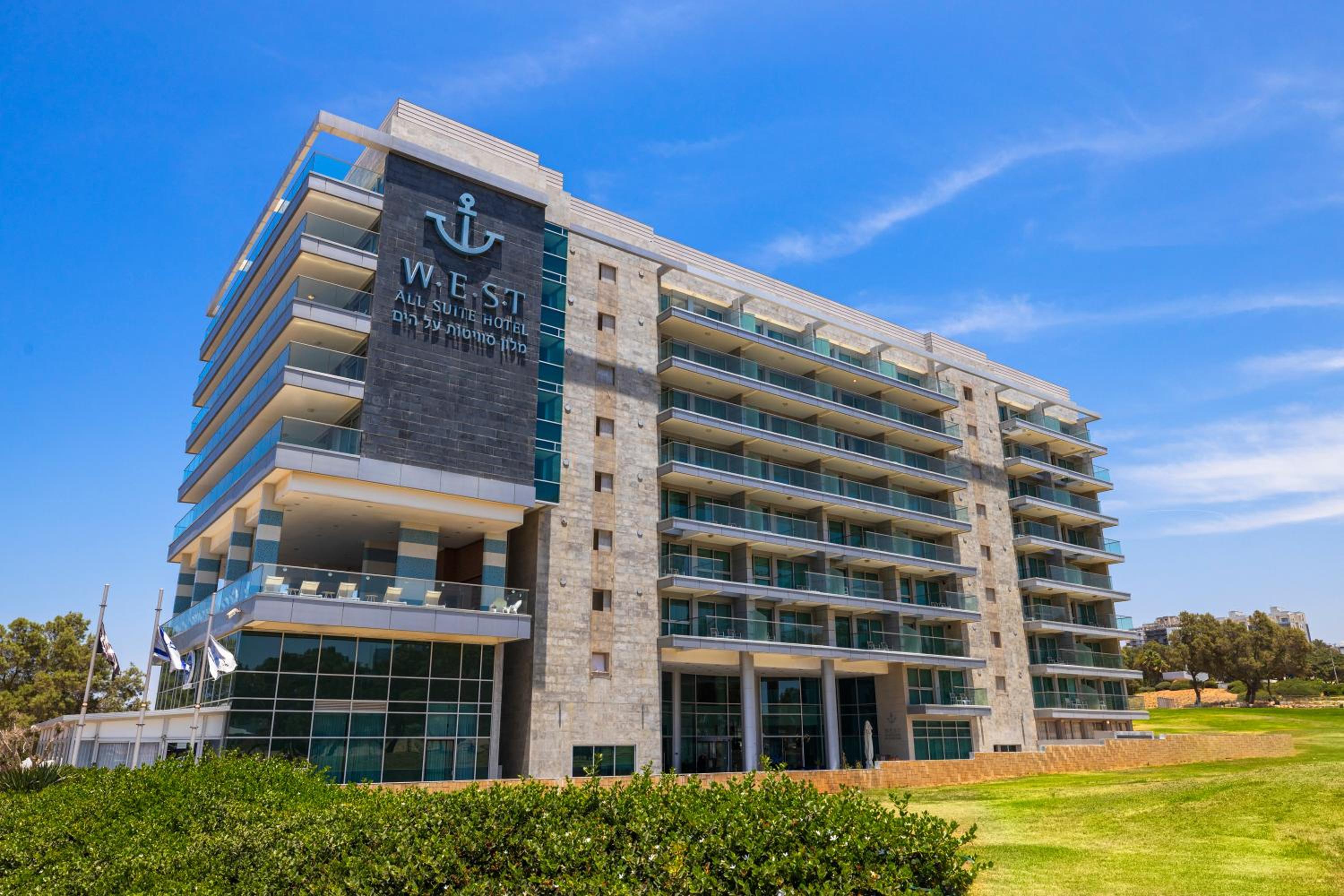 Experience luxury at West All Suites Hotel Ashdod, a 9-storey building overlooking the picturesque Mediterranean Sea. Enjoy the breathtaking views from your spacious suite's balcony or terrace.