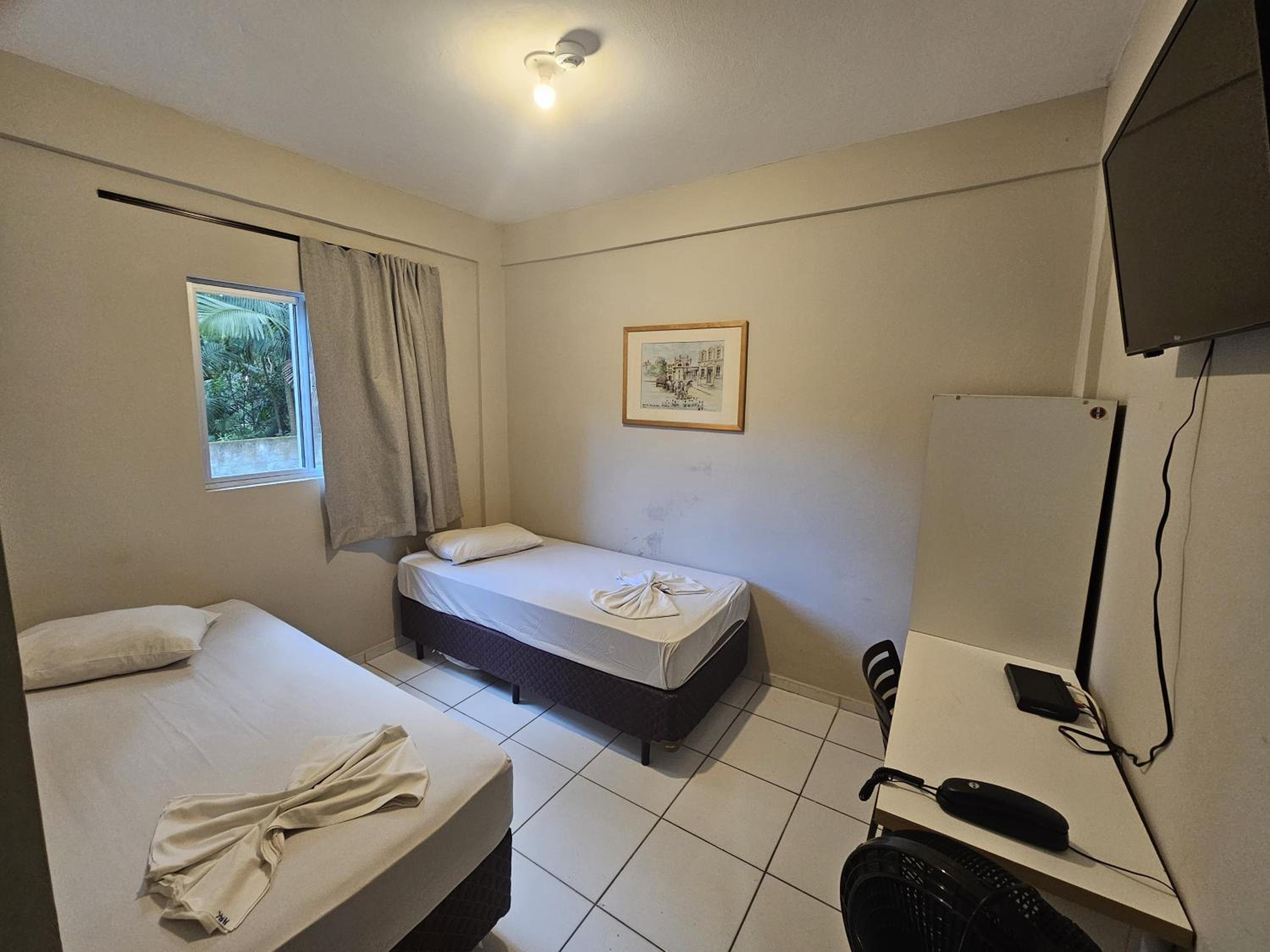 A camareira escutando áudio/vídeo volume alto, dava para escutar do quarto. Não tinha toalha de rosto. Colchão ruim, ao deitar fica-se num buraco. Pia do banheiro muito grande, atrapalha a passagem para o chuveiro e vaso.
