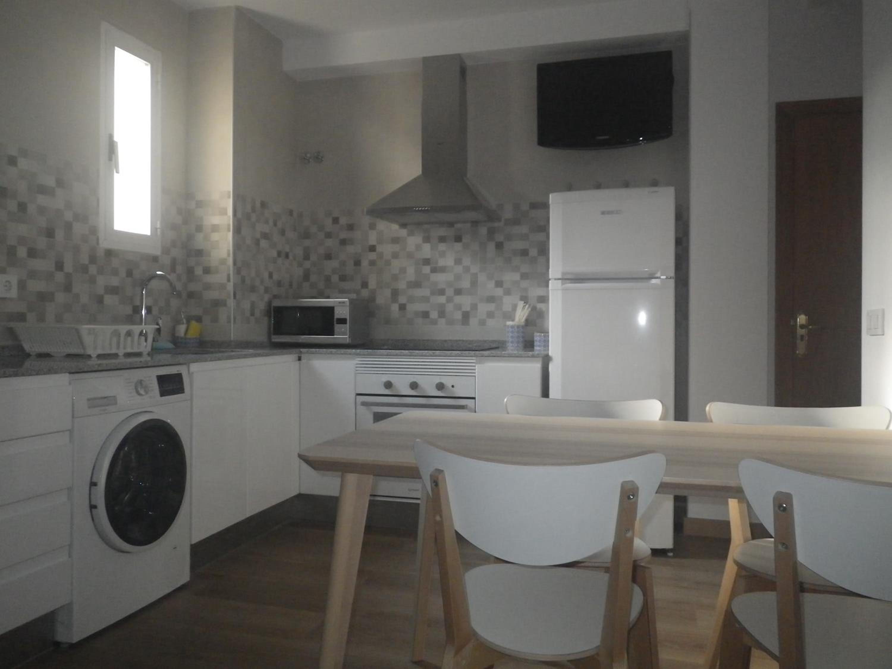 A l’apartament hi hauria d’haver algun estri més com per exemple una gerra d’aigua, un rallador, algun cobert de més, gots de més i copes de vi… i la cafetera és massa petita per 4 persones…