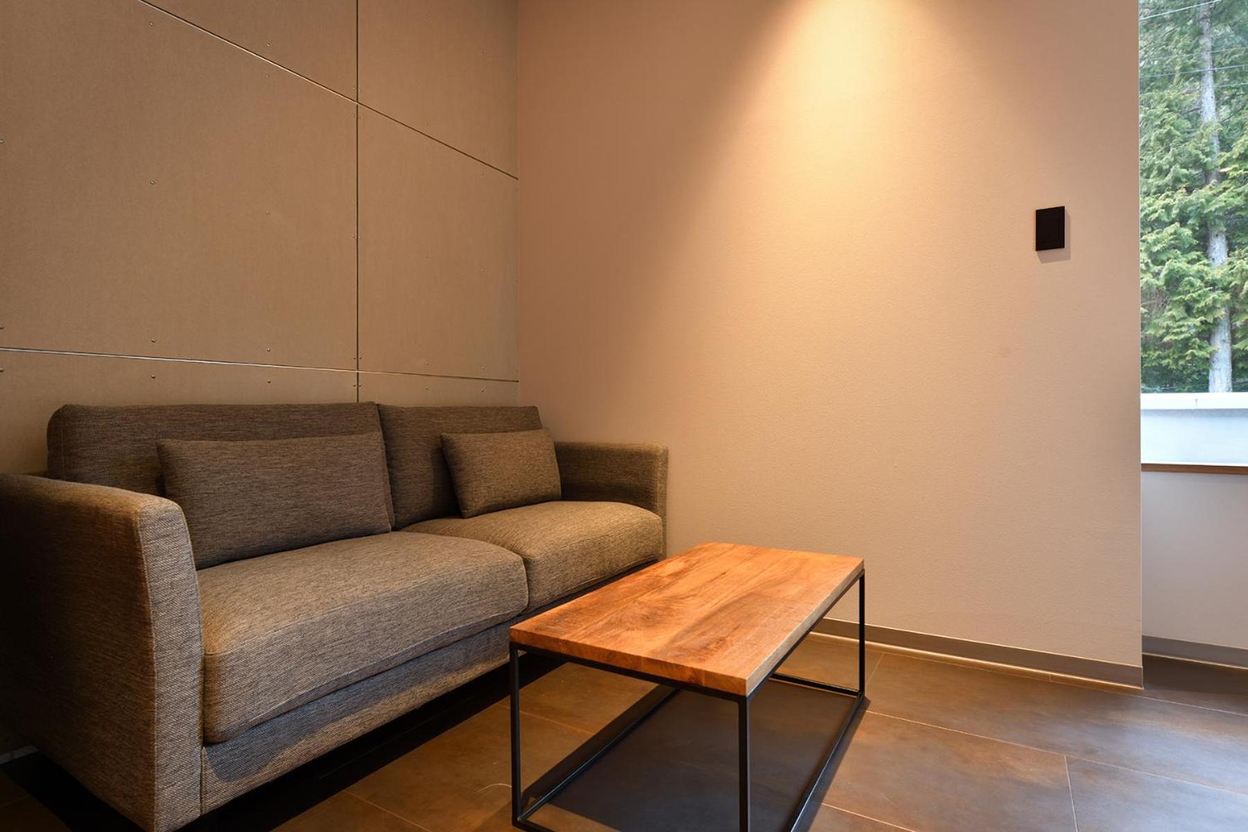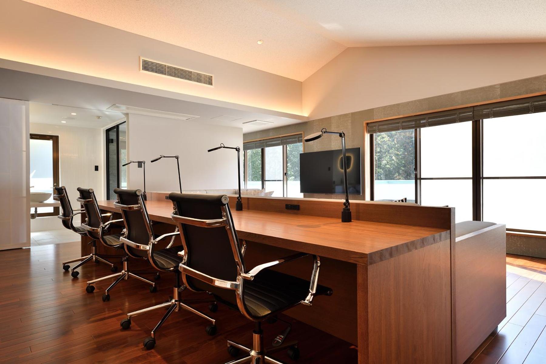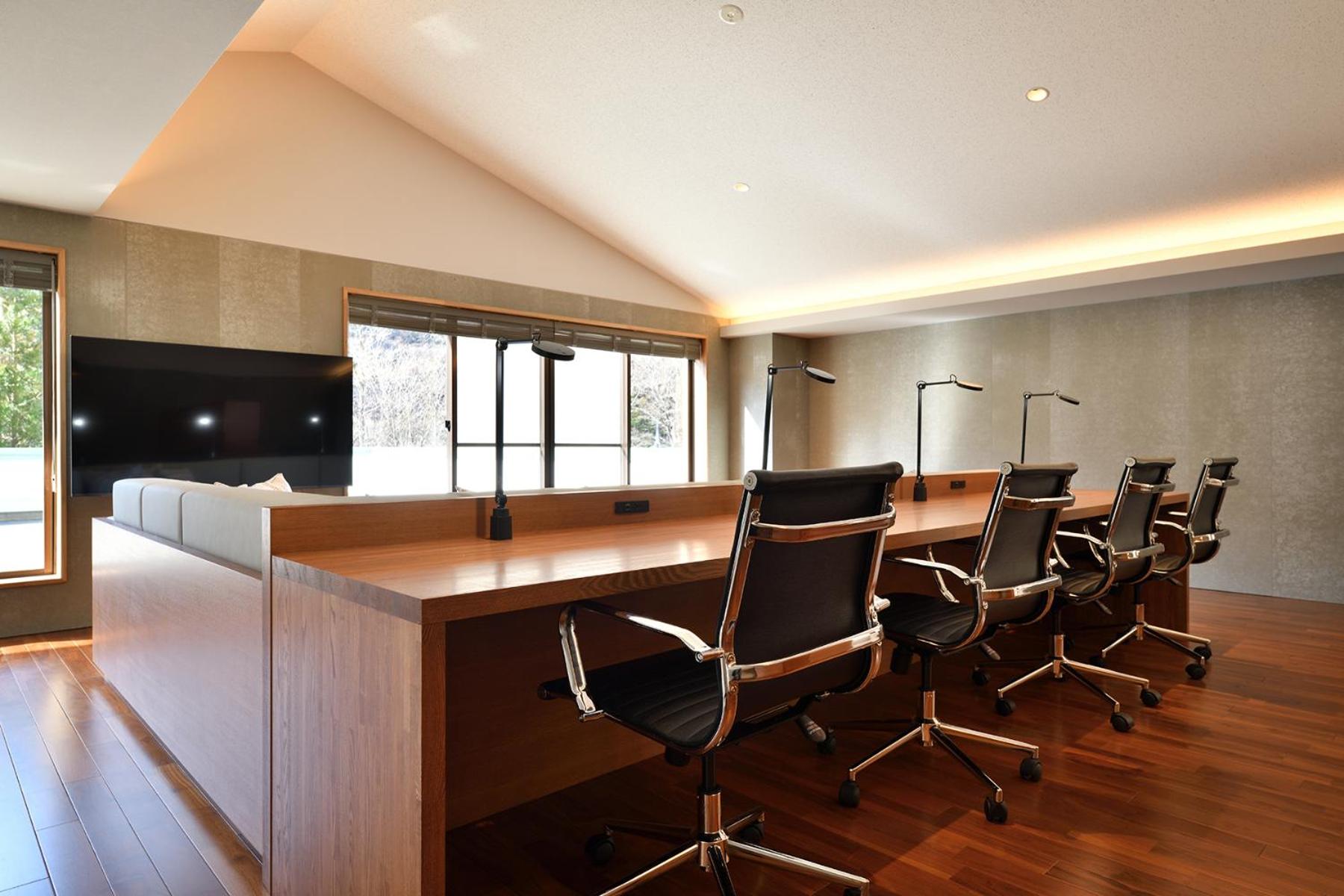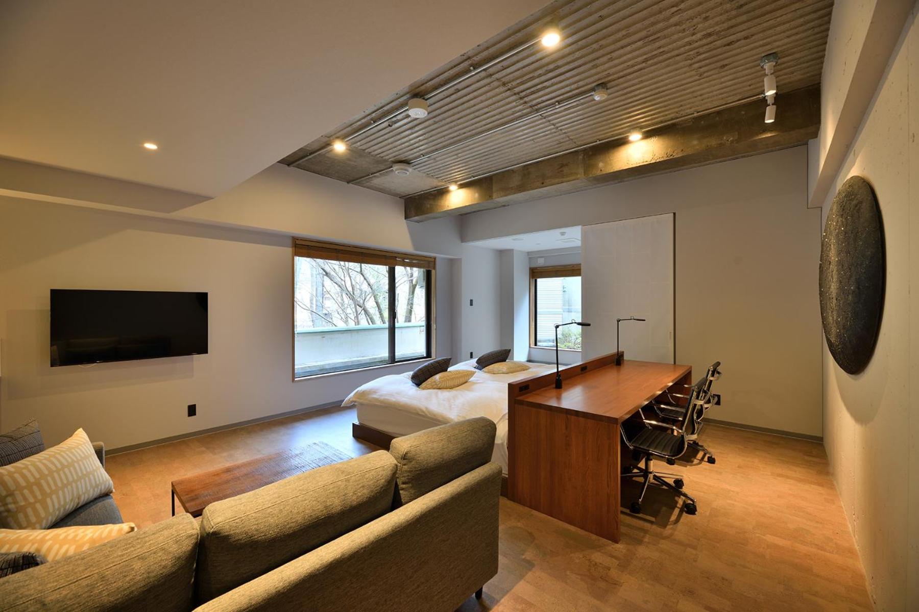 The spacious living and private onsen in the room