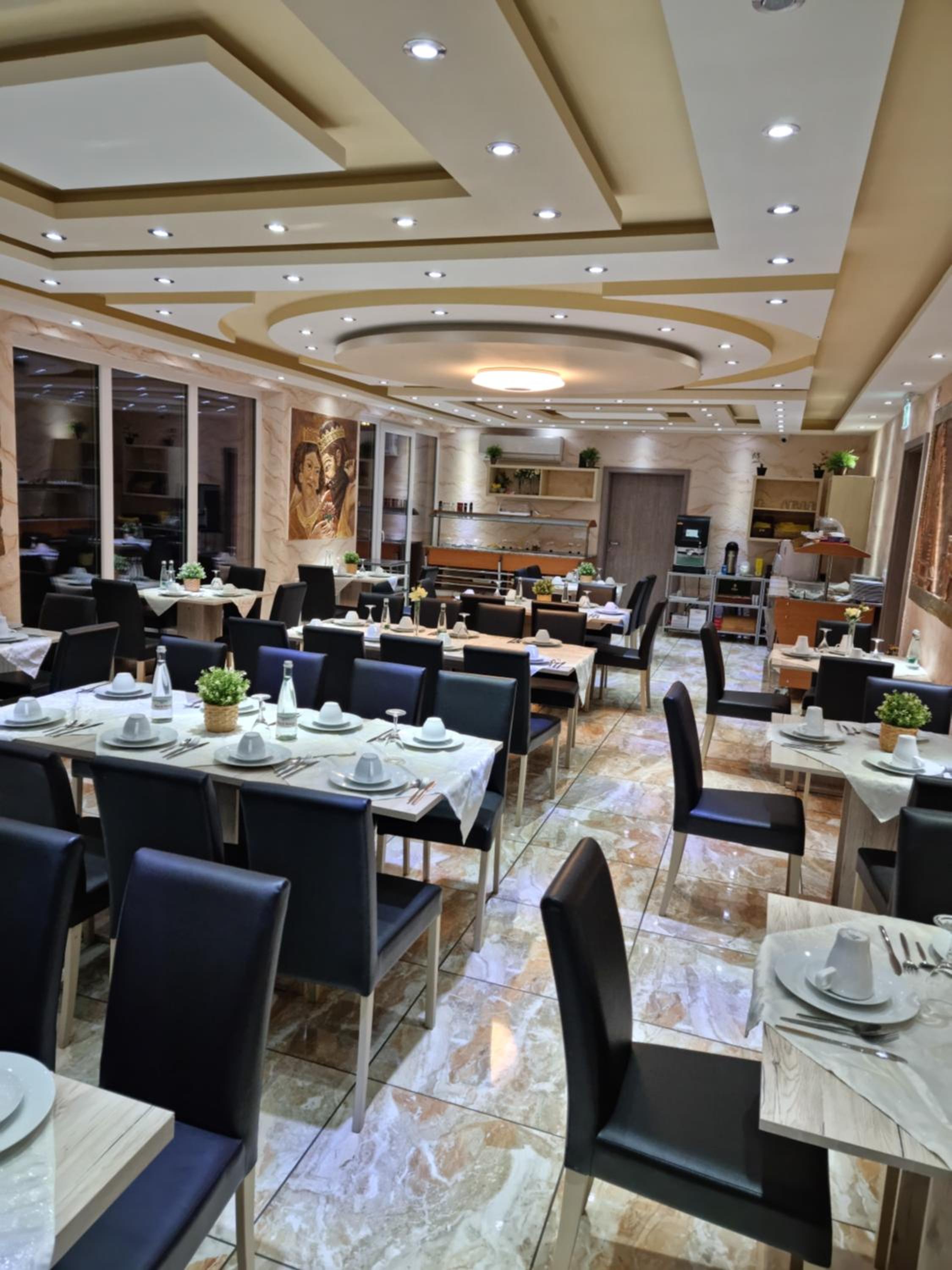 Am 1. Tag sehr unfreundlich von "Kellner" an anderen Tisch verwiesen, da wir nur zu dritt waren und an 4er Tisch wollten , obwohl Frühstücksraum, die meisten Tische leer/frei waren