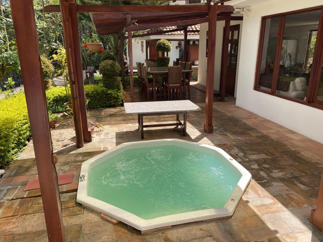 Steps away from the river, inside you'll find an open sky jacuzzi and a nice pool.