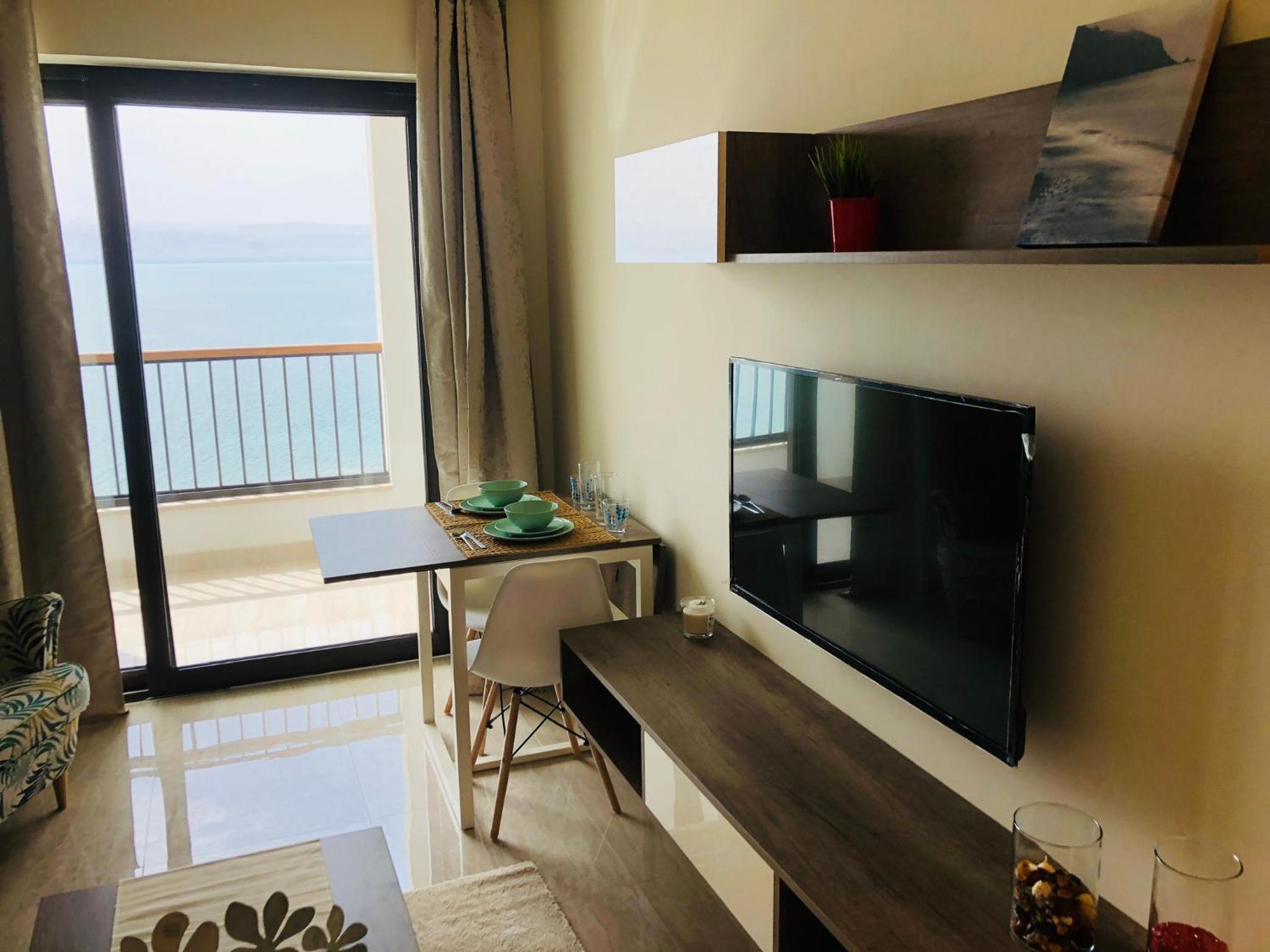 موقع الفندق ممتاز يتوسط كل المزارات ويطل مباشرة على البحر الميت وبه شاطئ خاص. السويت نظيف للغاية وبه ثلاث حمامات