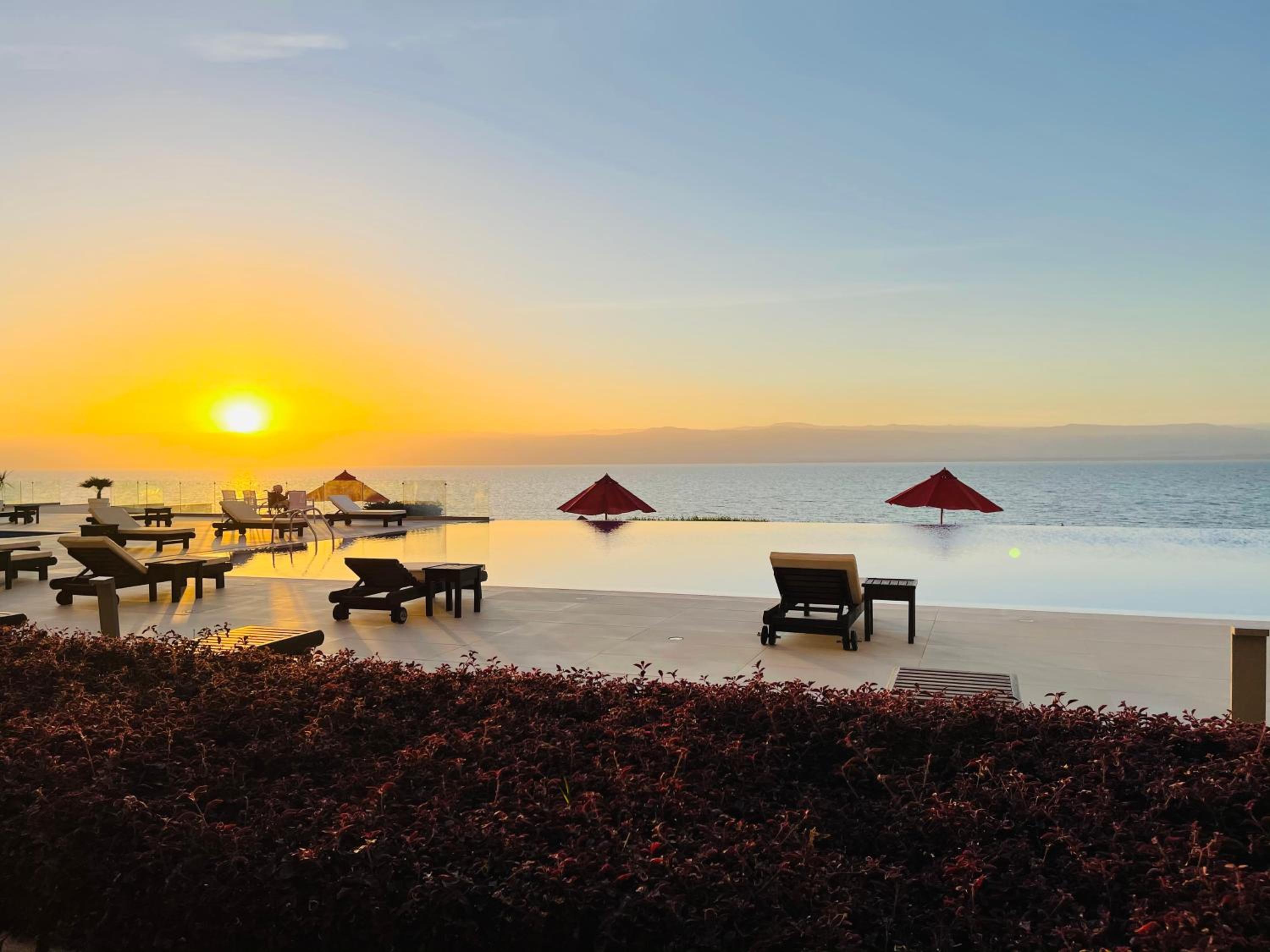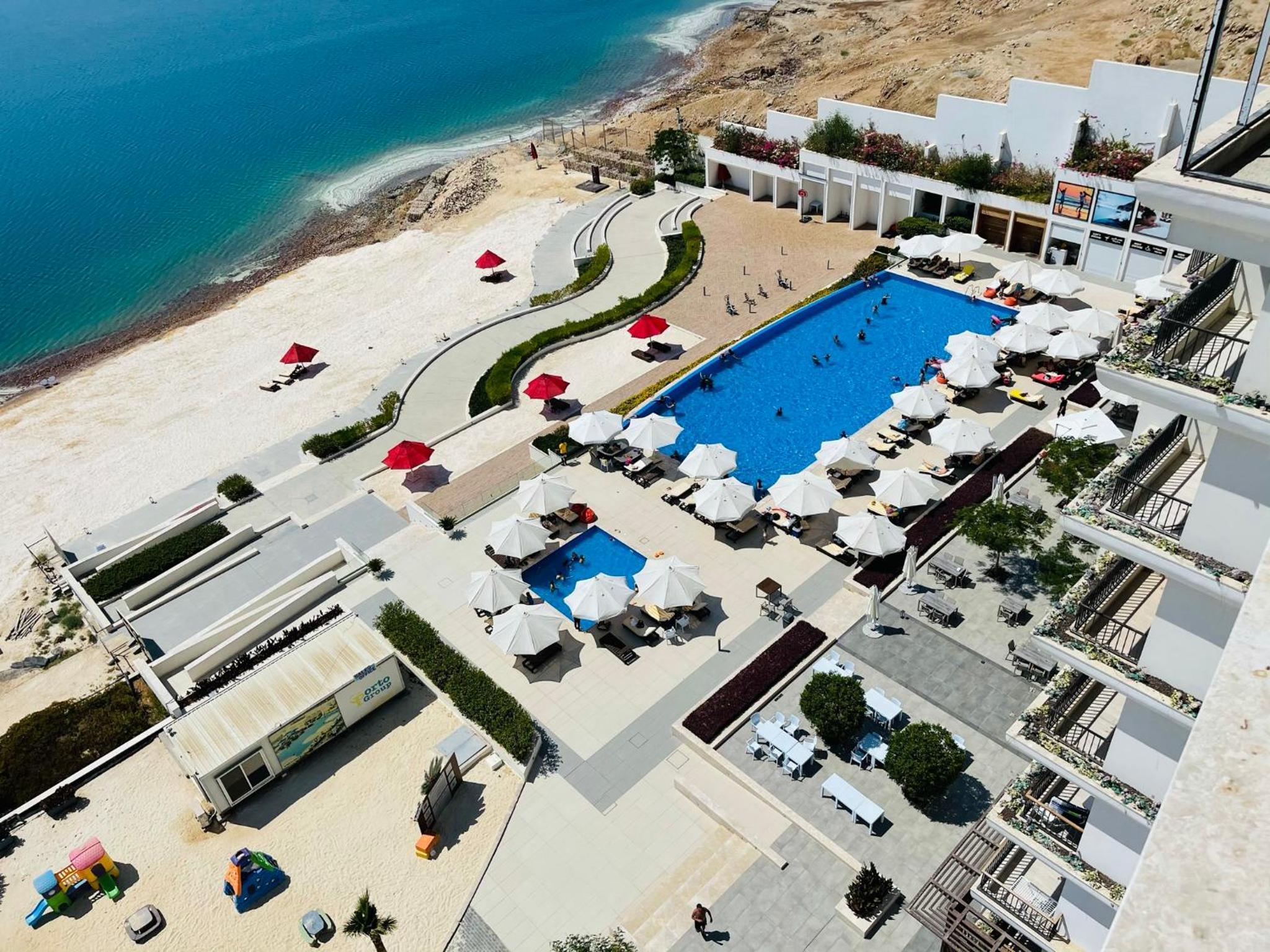 Porto Dead Sea is a stunning property located in Sowayma, offering a private beach area for guests to enjoy. With breathtaking views of the sea and pool from the terrace or balcony, this beachfront hotel provides a truly luxurious experience.