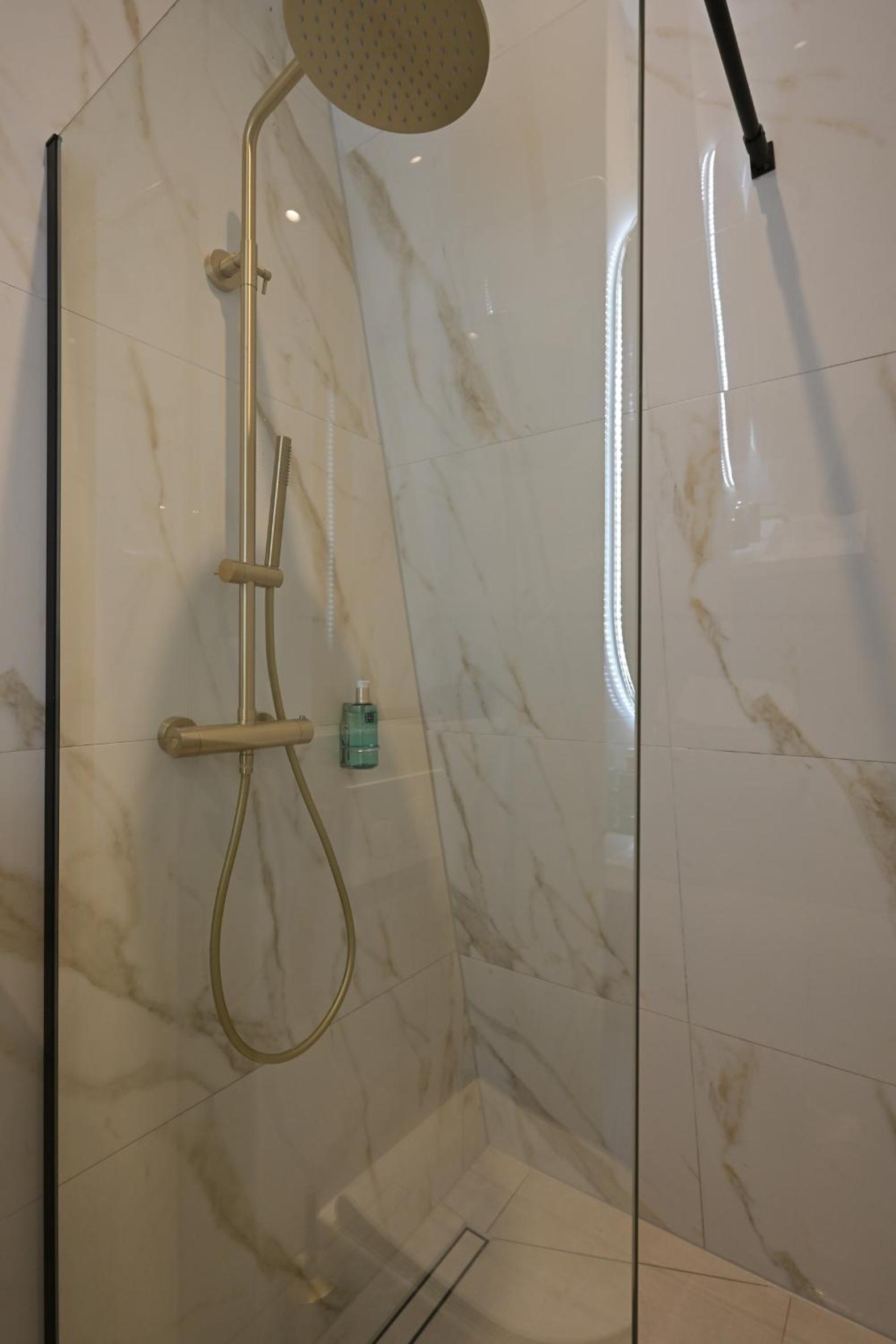 de douche zag er goed maar liep slecht af, we konden er slechts héél voorzichtig gebruik van maken.