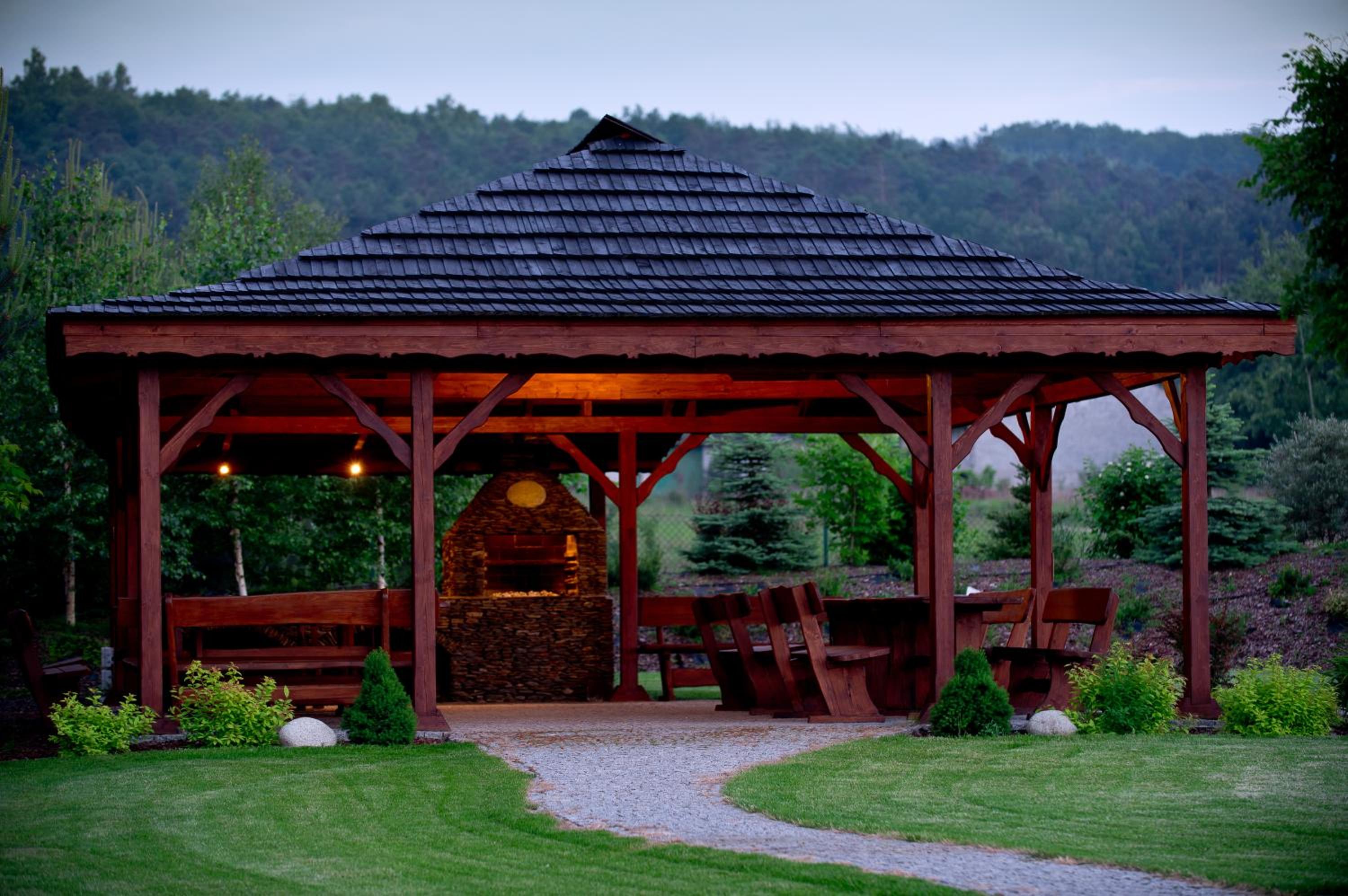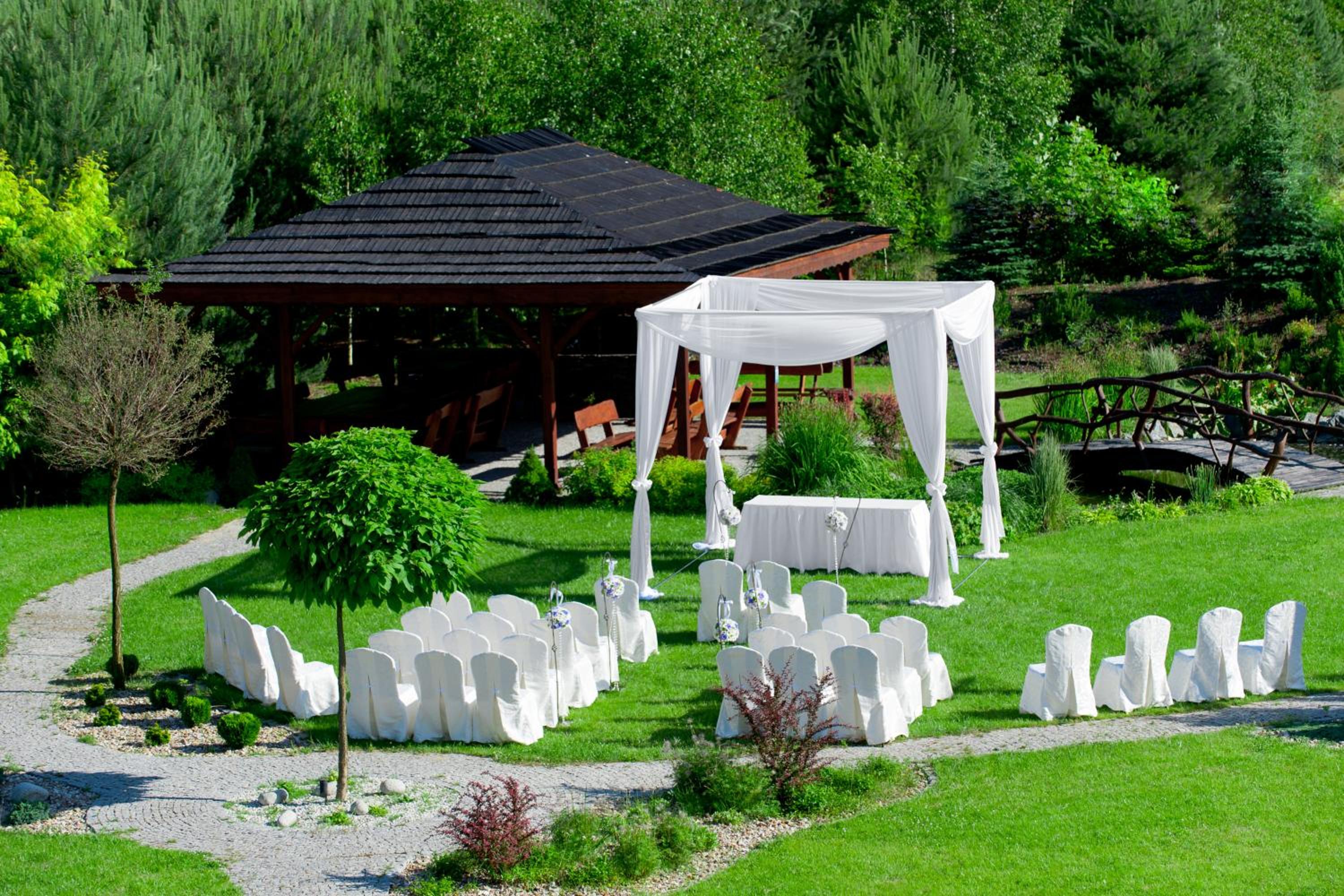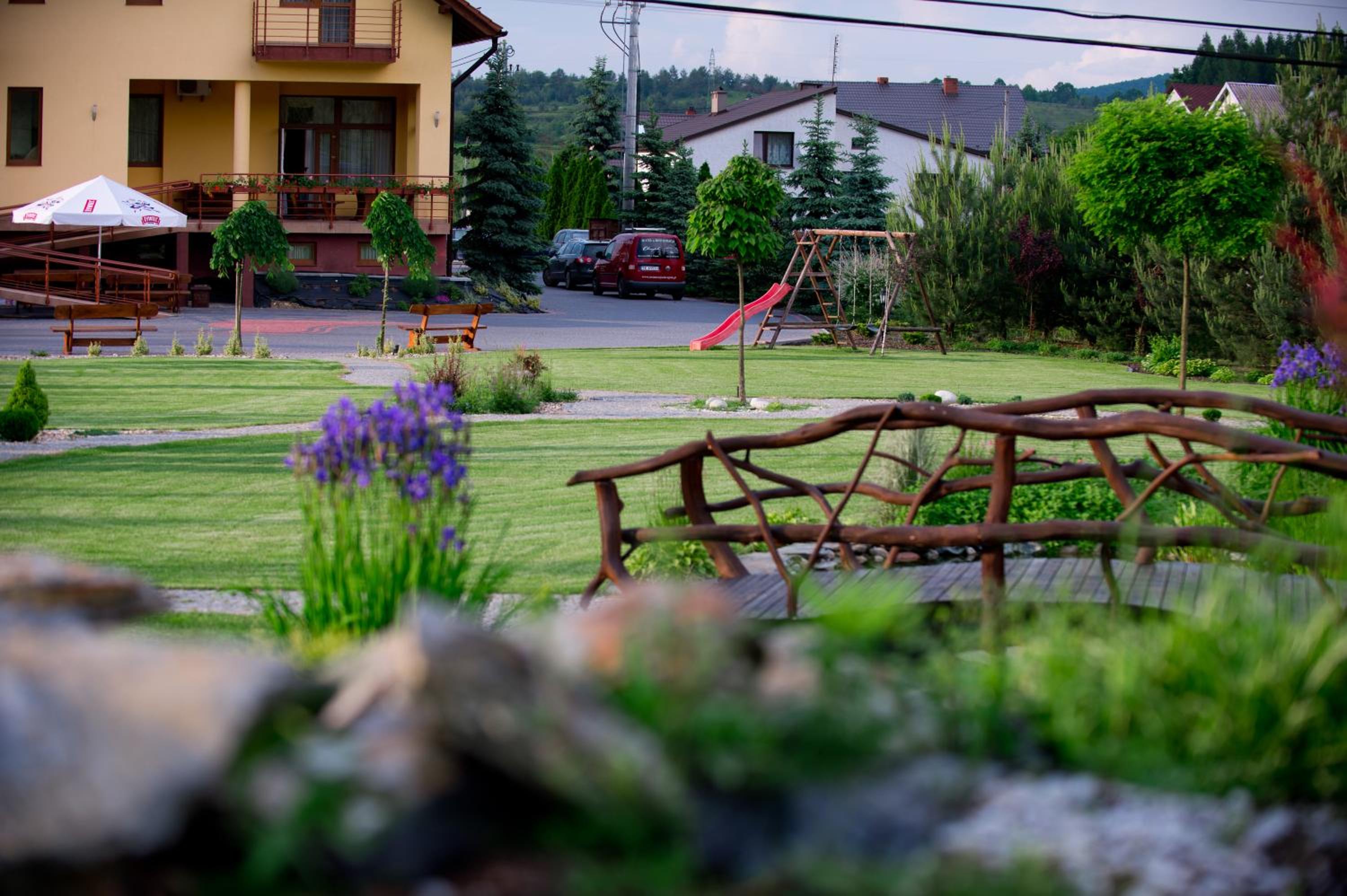 Escape to our peaceful garden oasis and unwind on the serene terrace at Hotel & Restauracja Okrąglak.