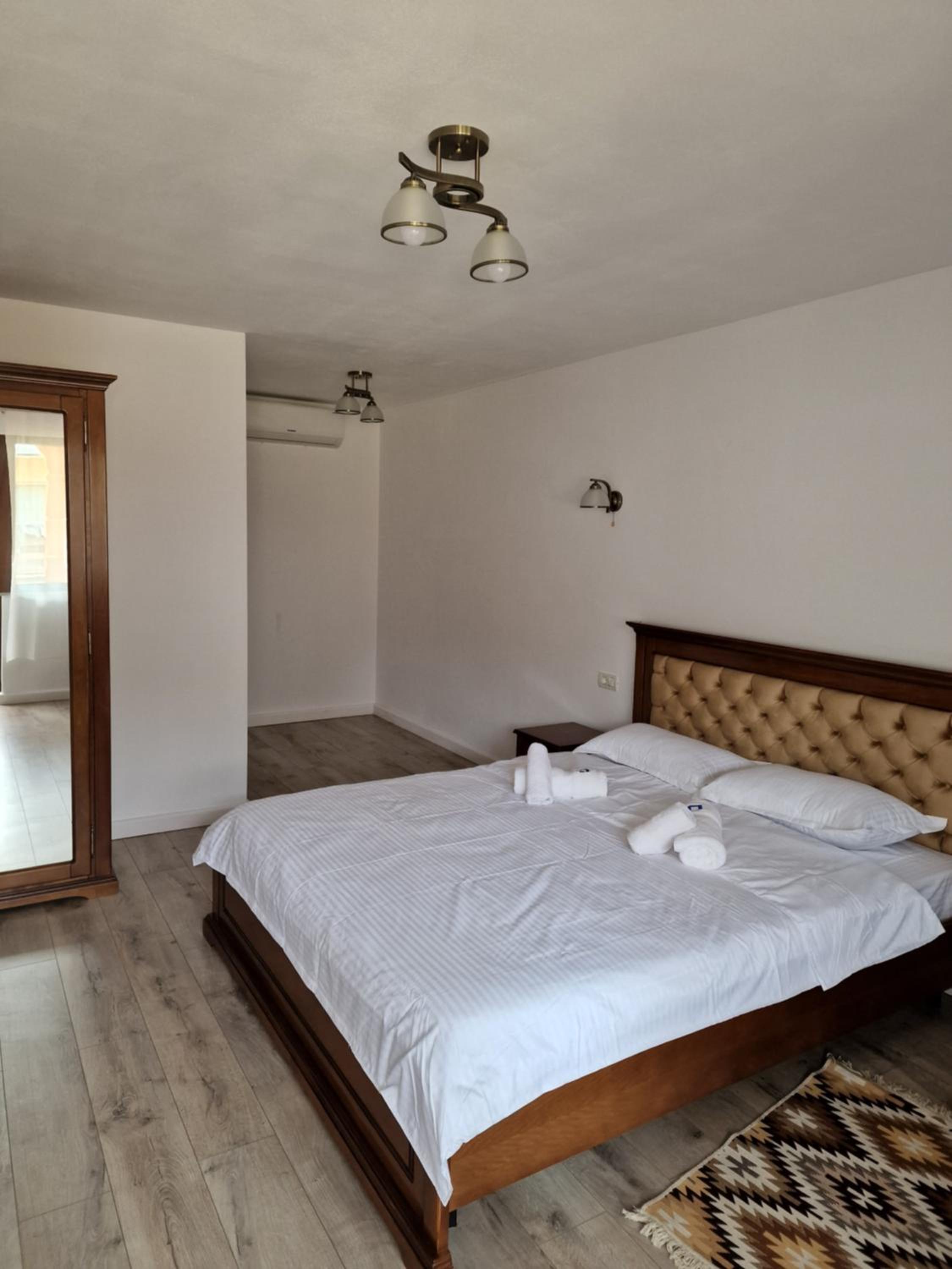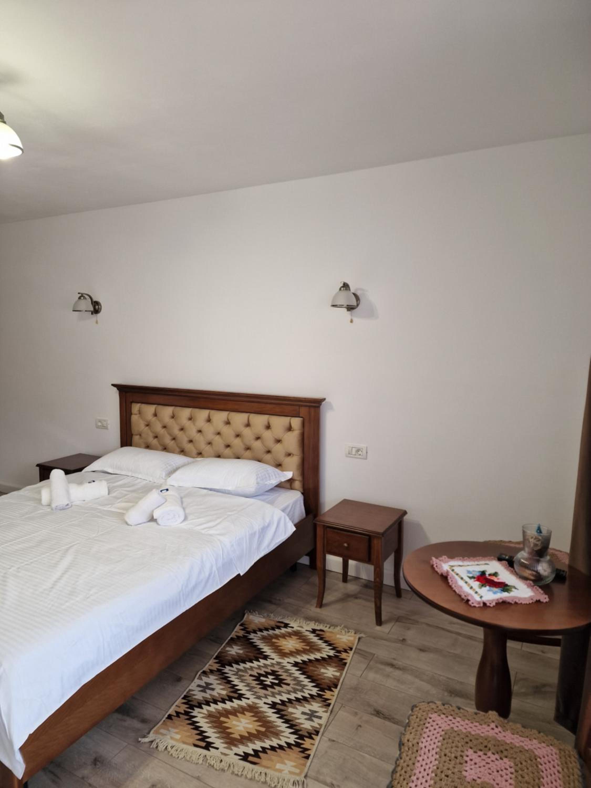 Habitación grande y cama muy grande y cómoda. Estaba todo muy limpio. El baño fue de los mejores que hemos tenido en nuestro viaje por Rumanía. La TV es smart tv, algo difícil de encontrar en otros alojamientos. La anfitriona es simpática y además nos invitó a palinka y café por la mañana, ya que no pedimos desayuno. A 5 minutos en coche del monasterio de Barsana.