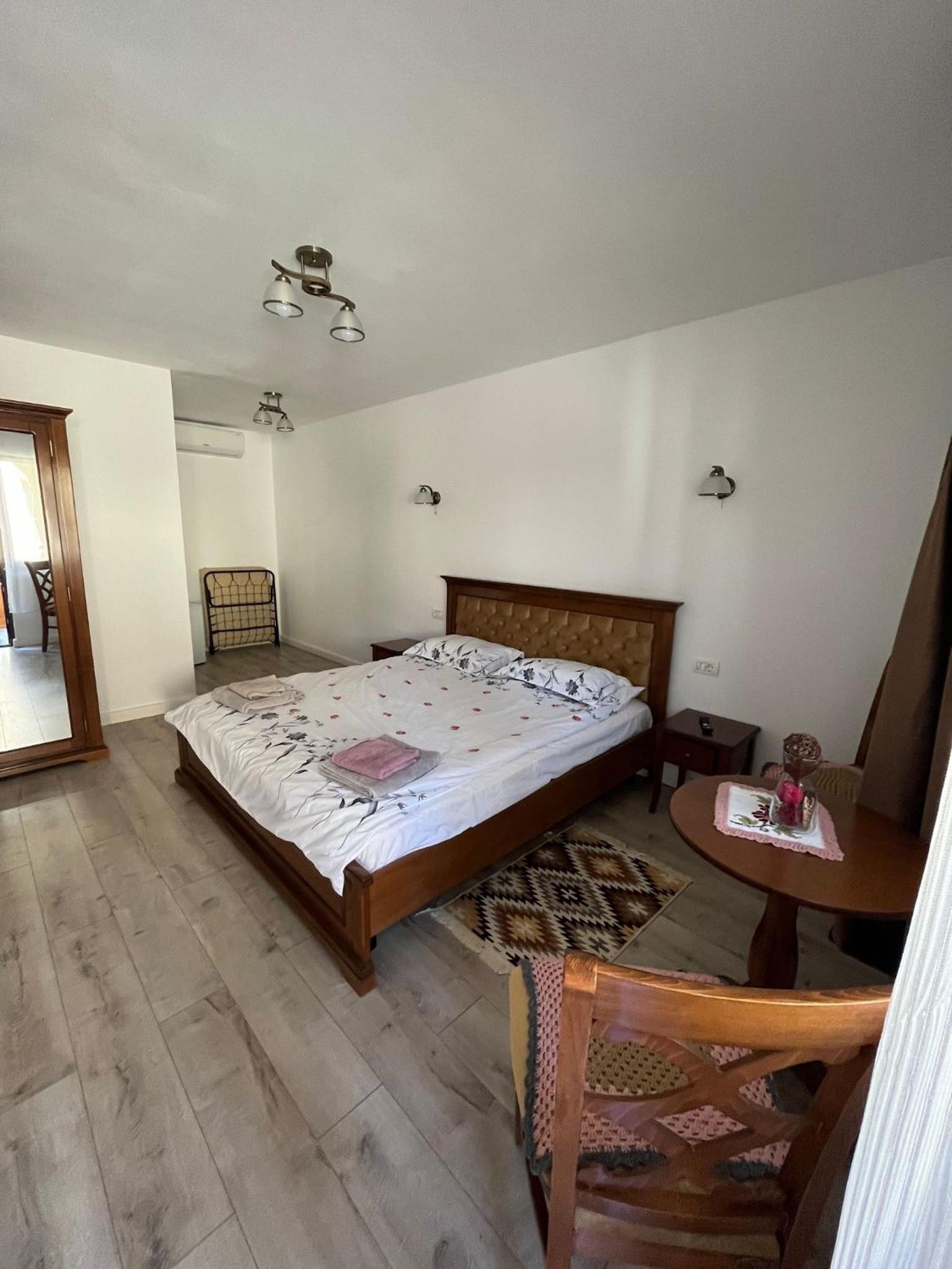 Hospitalidad muy buena, te dan para probar pan con queso y palinca nada más llegar. Tomamos el desayuno por 7€ muy completo, casero y fue una buena elección. Habitaciones con baño privado y nevera en el pasillo de fuera.