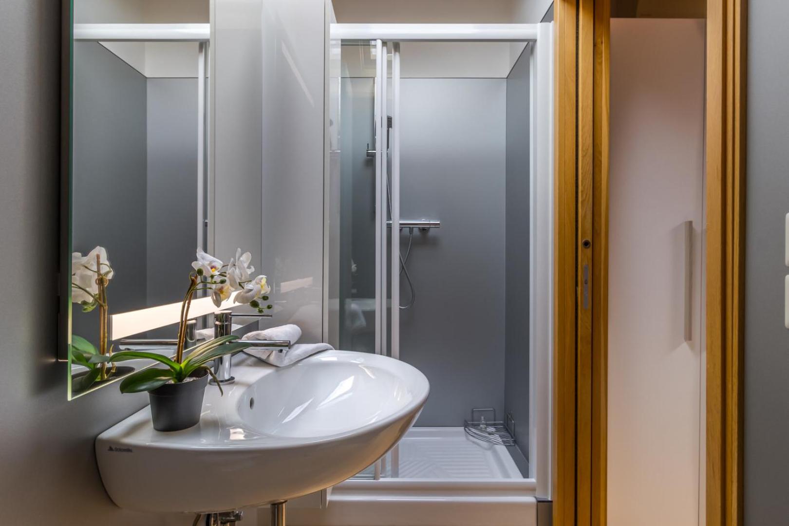 Beautifully finished modern apartment. A haven of peace and calm yet fantastic central location with easy walk from the station, boat landings and major sights. Two full bathrooms and bedrooms on separate levels were an added bonus.