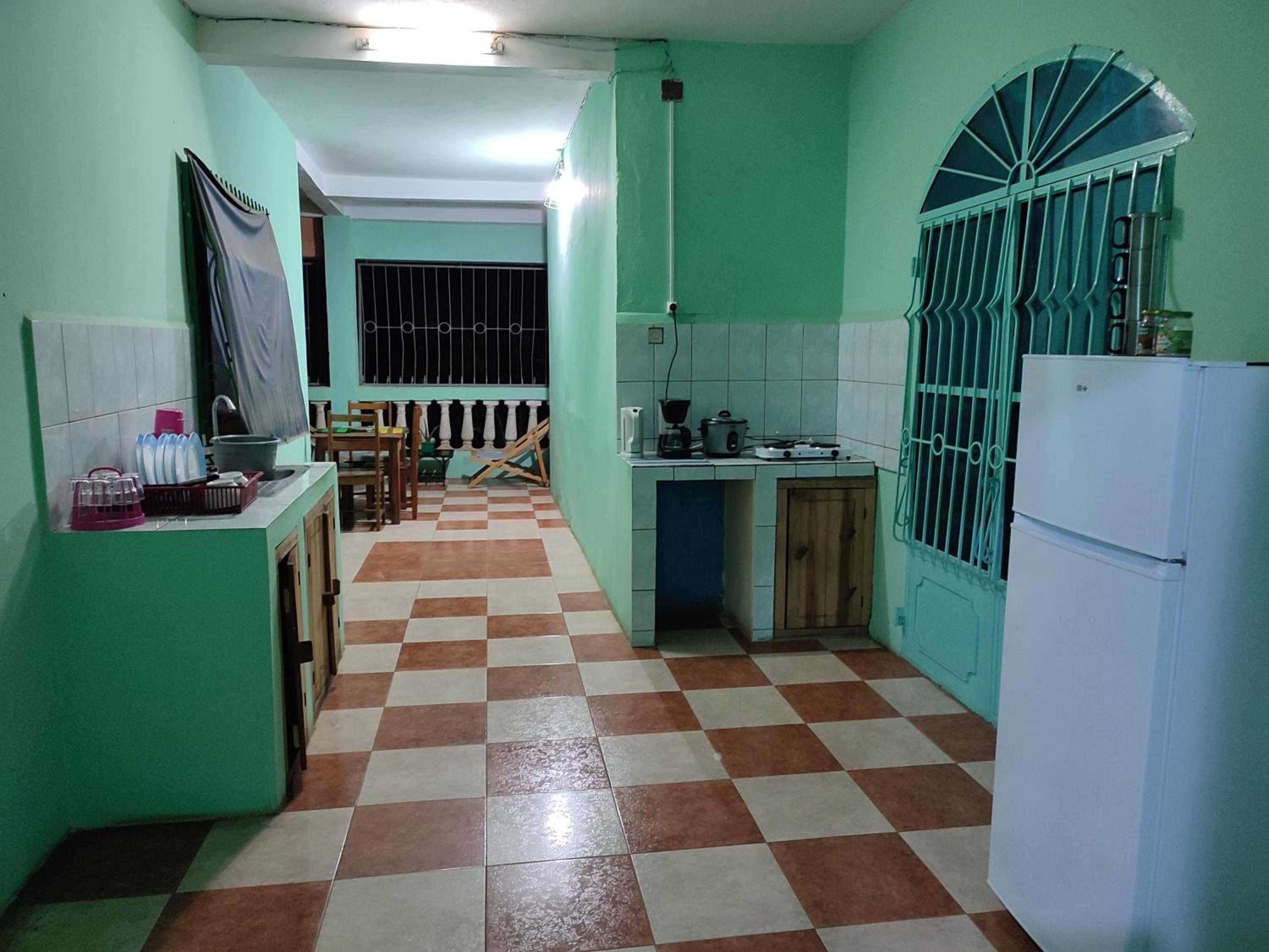 Le petit déjeuner inclus très bon, la terrasse privée et la terrasse commune avec hamac, la chambre relativement calme et reposante.