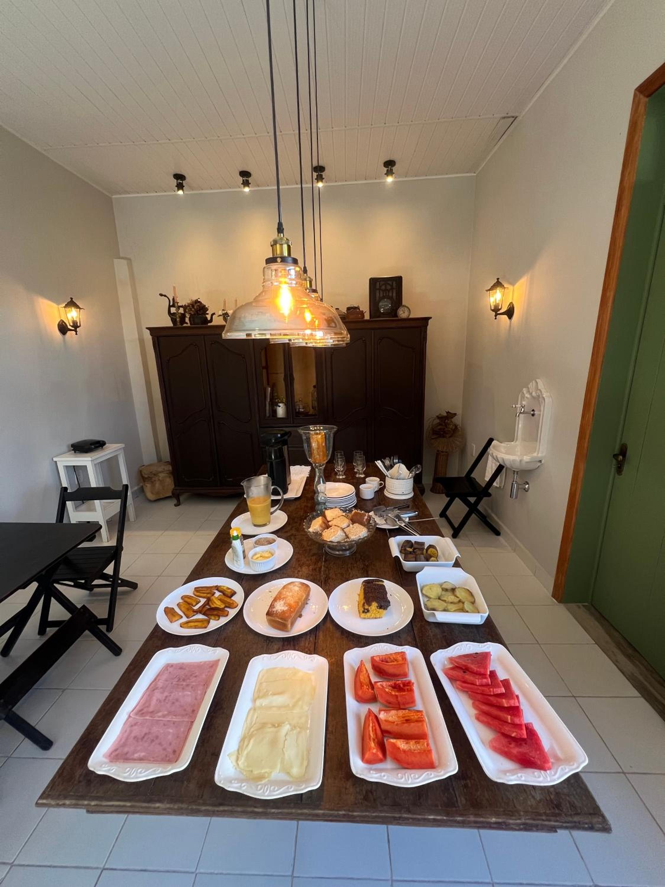 Café da manhã ruim. Os alimentos cozidos (ovo e banana da terra) estavam frios, não tinha rechaud para aquecer. O leite também estava frio. O bolo tinha gosto artificial, o café tinha mais água do que café e o suco estava aguado. As frutas estavam boas. Mas, acredito que por ser uma hospedagem com poucos quartos, poderiam ser mais caprichosos com o café da manhã. No quarto, a duchinha do banheiro estava quebrada e faltava água no chuveiro quando ligava a torneira da pia ao mesmo tempo.