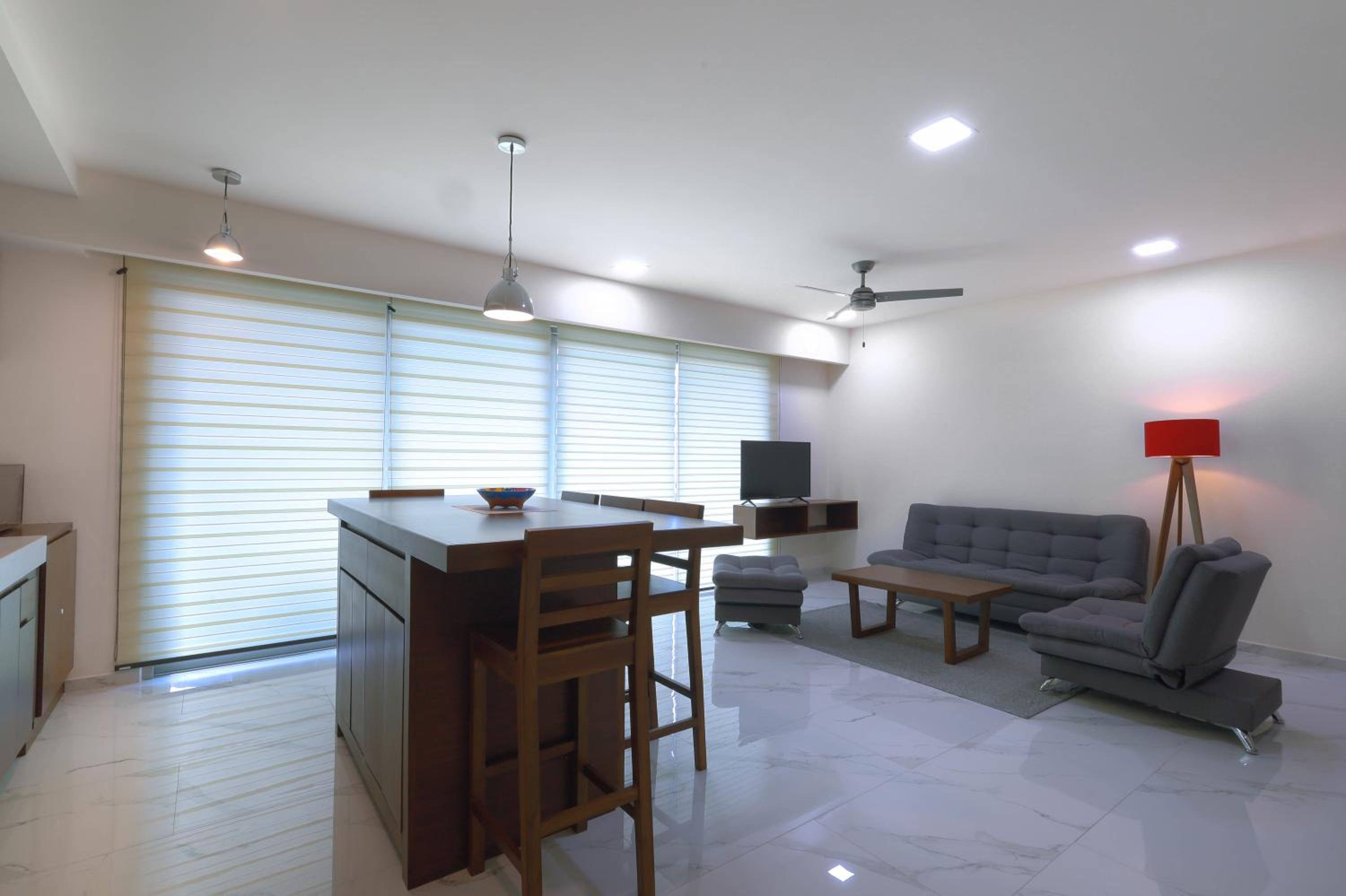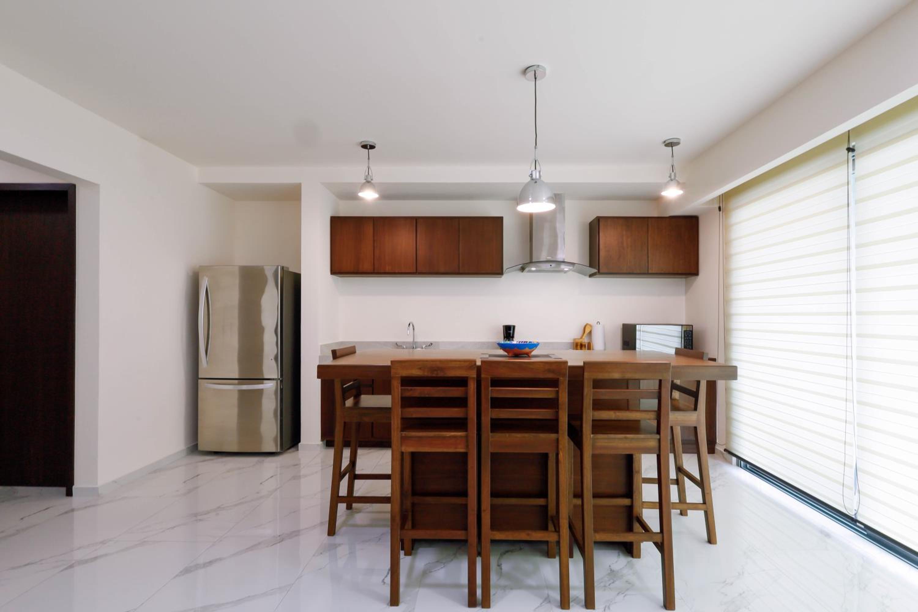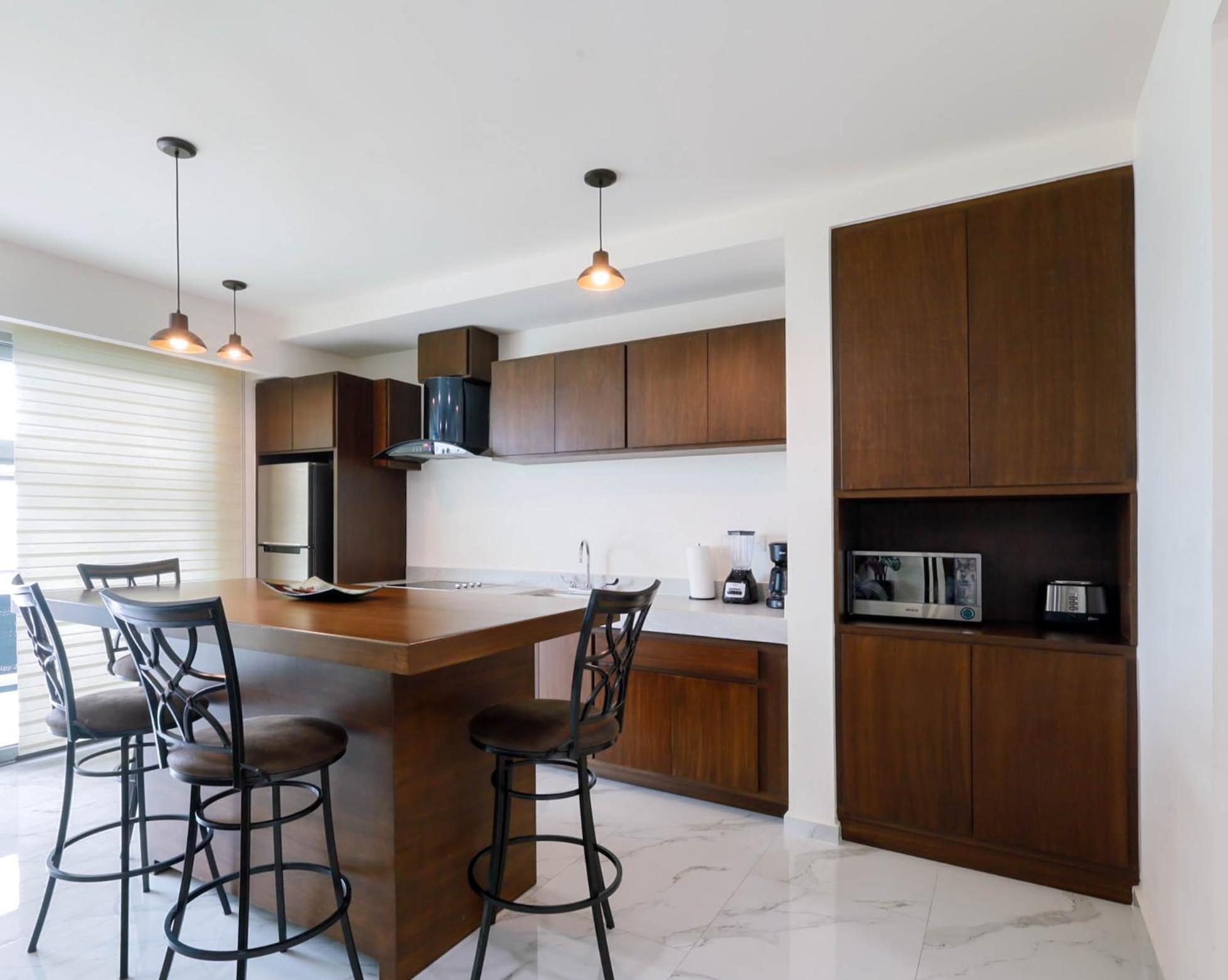 Great location. Easy to walk to everything on the north side of the island. Very nice, clean, modern apartment that included plates, utensils, cooking pans, and drinking water. Rooftop pool is lovely and we mostly had it to ourselves. The coffee shop downstairs is very high quality so gets busy during the morning