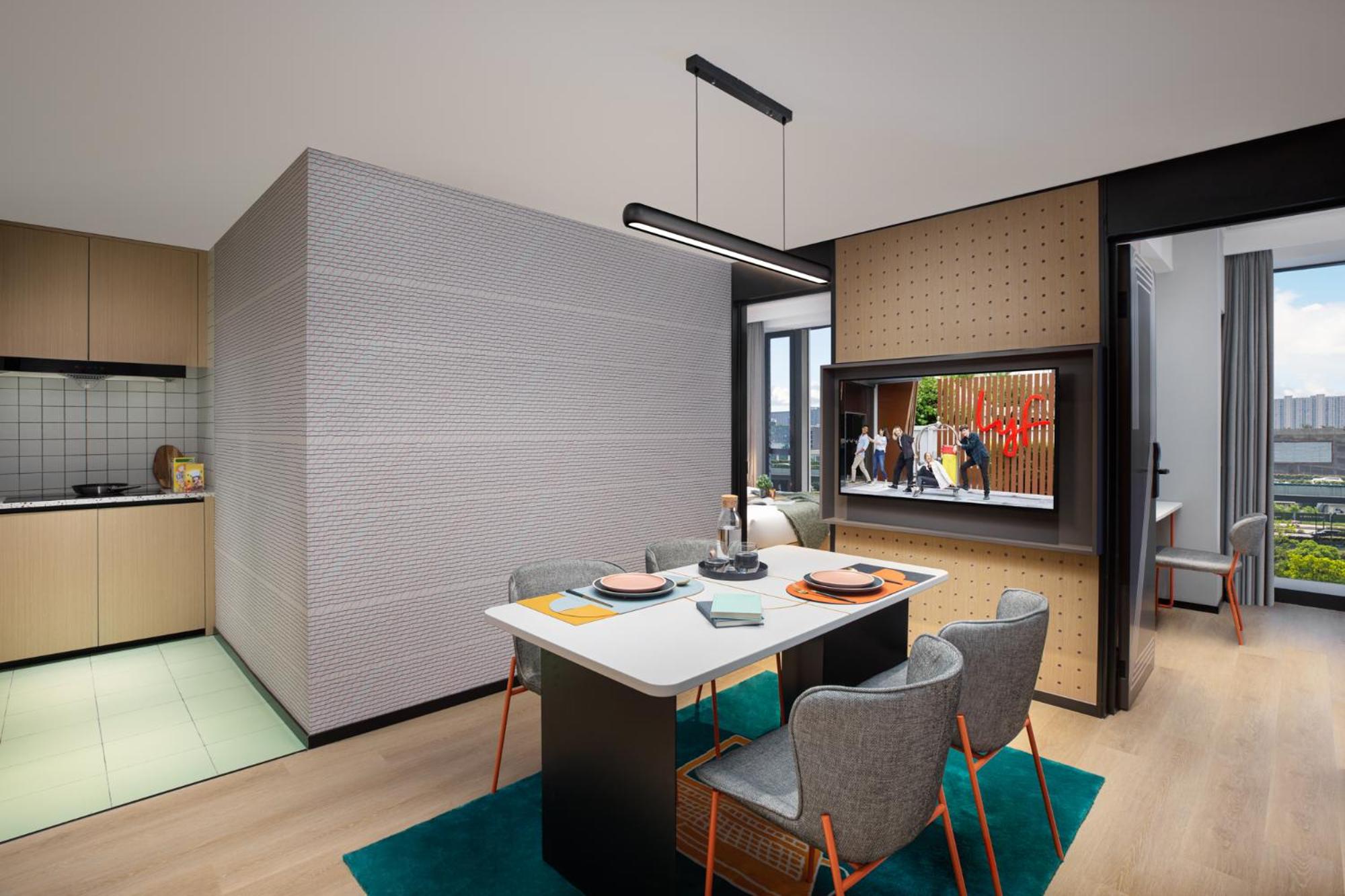lyf Mid-Town Hangzhou offers stylish rooms with city views and modern amenities including a washing machine, flat-screen TV, and fully equipped kitchen in selected rooms.