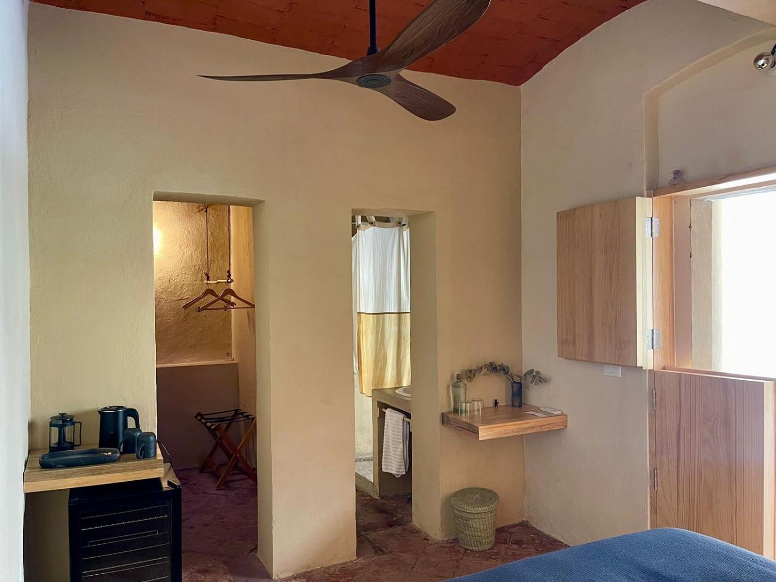 There is complimentary coffee and water in the room, hot water in the shower everyday and a full dressing room for storage. We loved our stay here, we'll be back for sure whenever we come back to our beloved Oaxaca :)