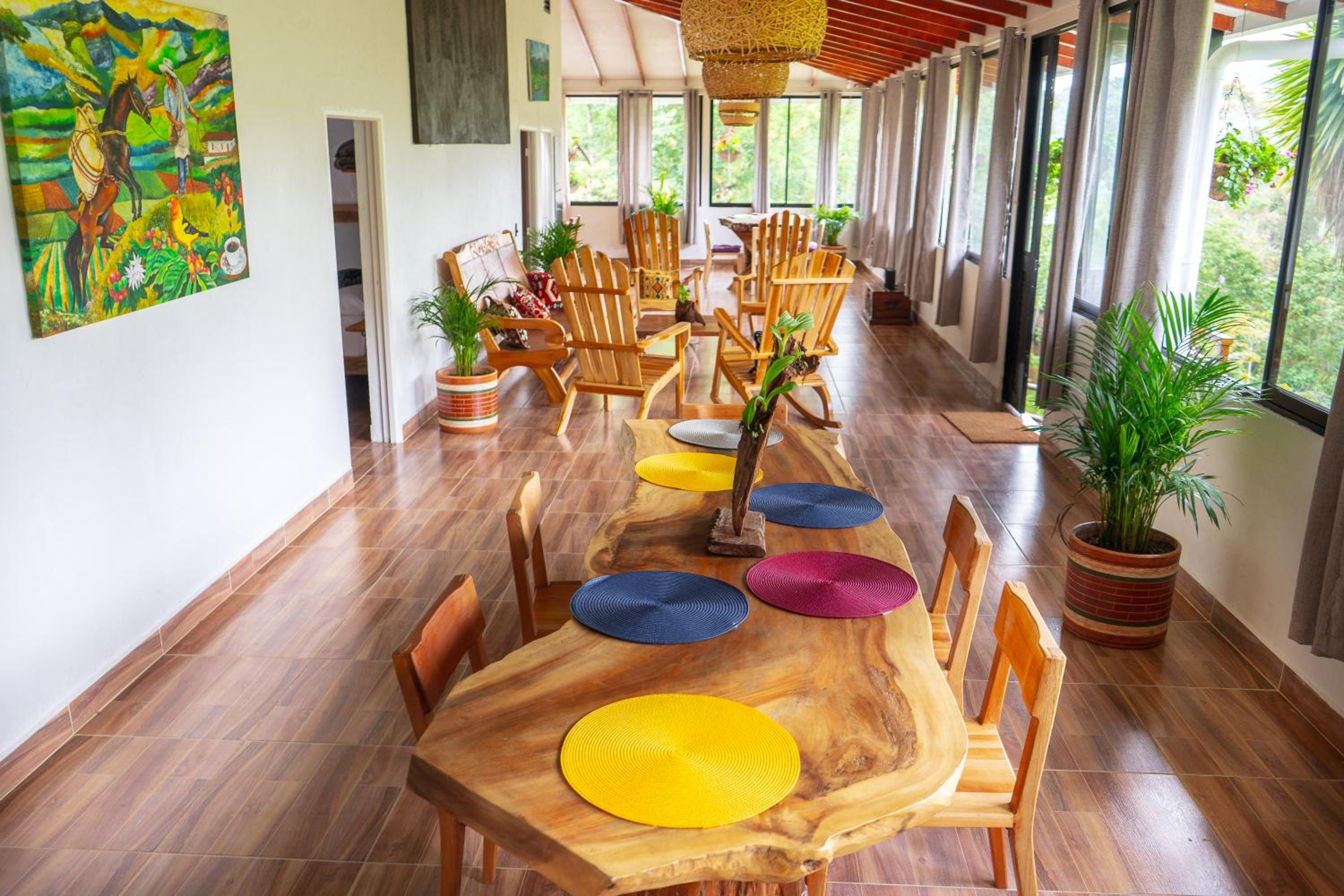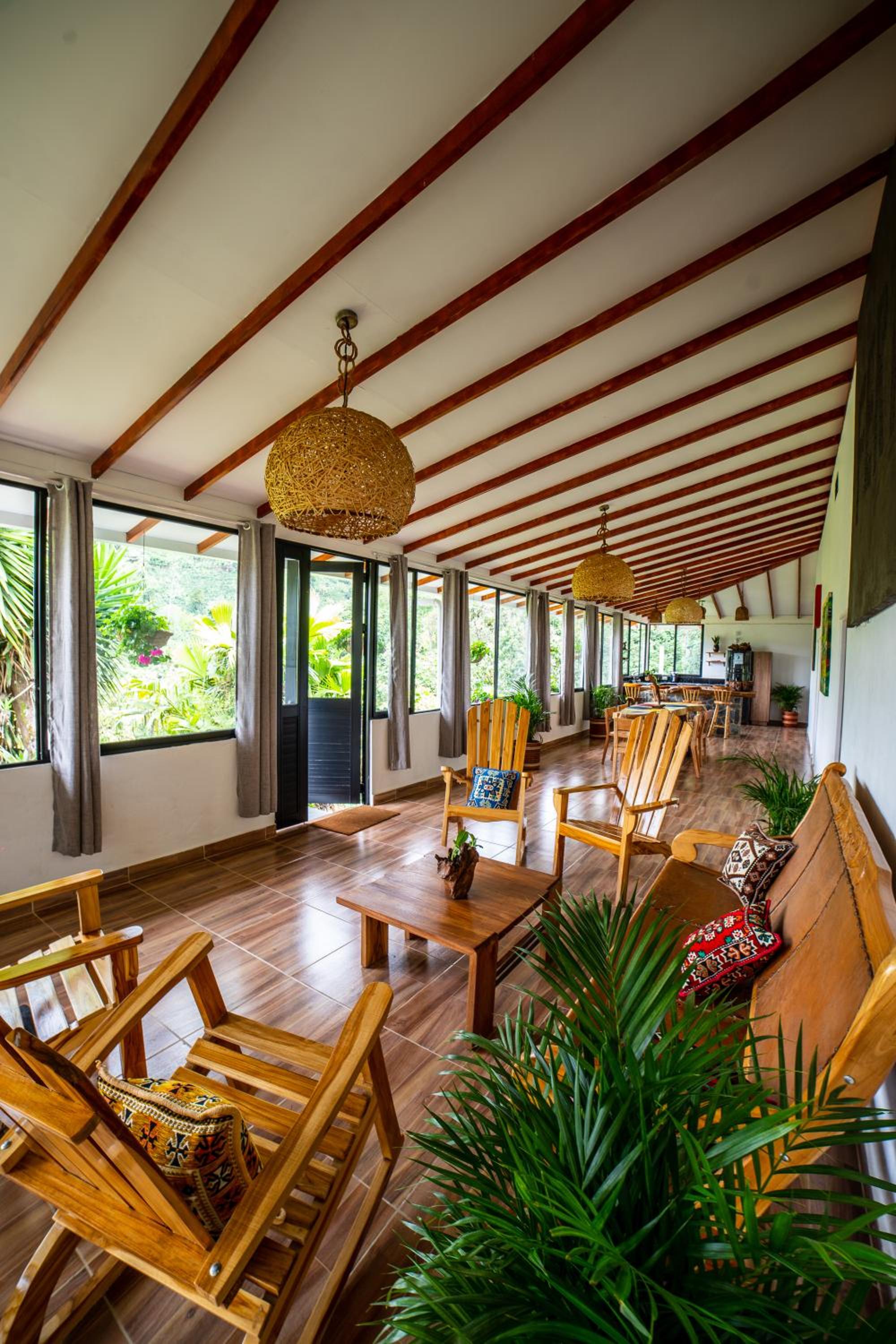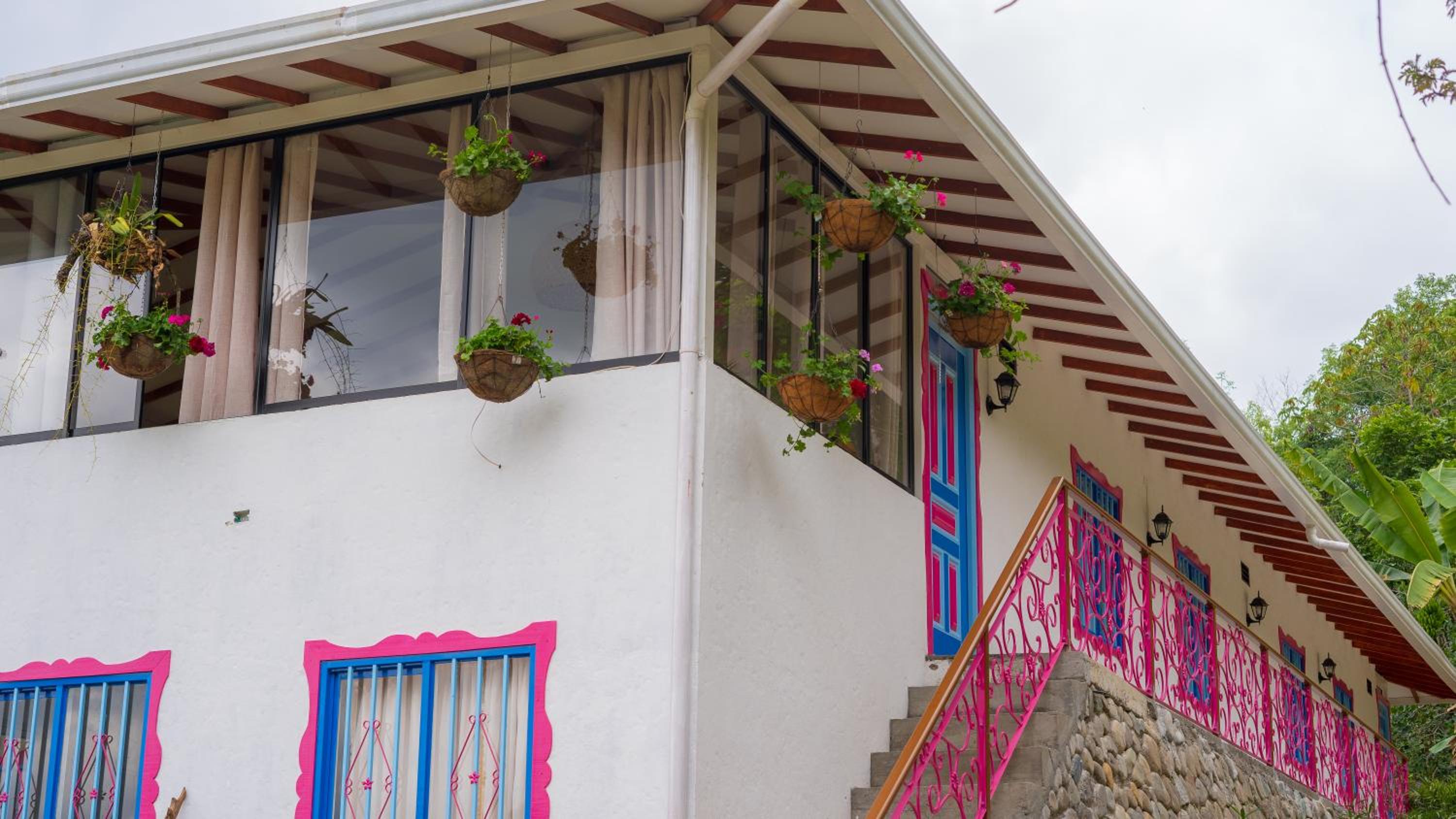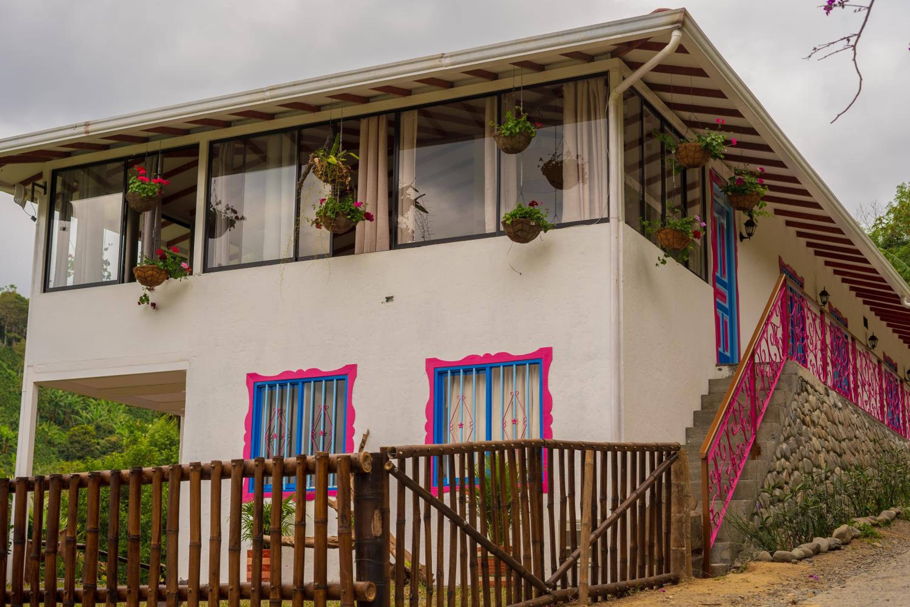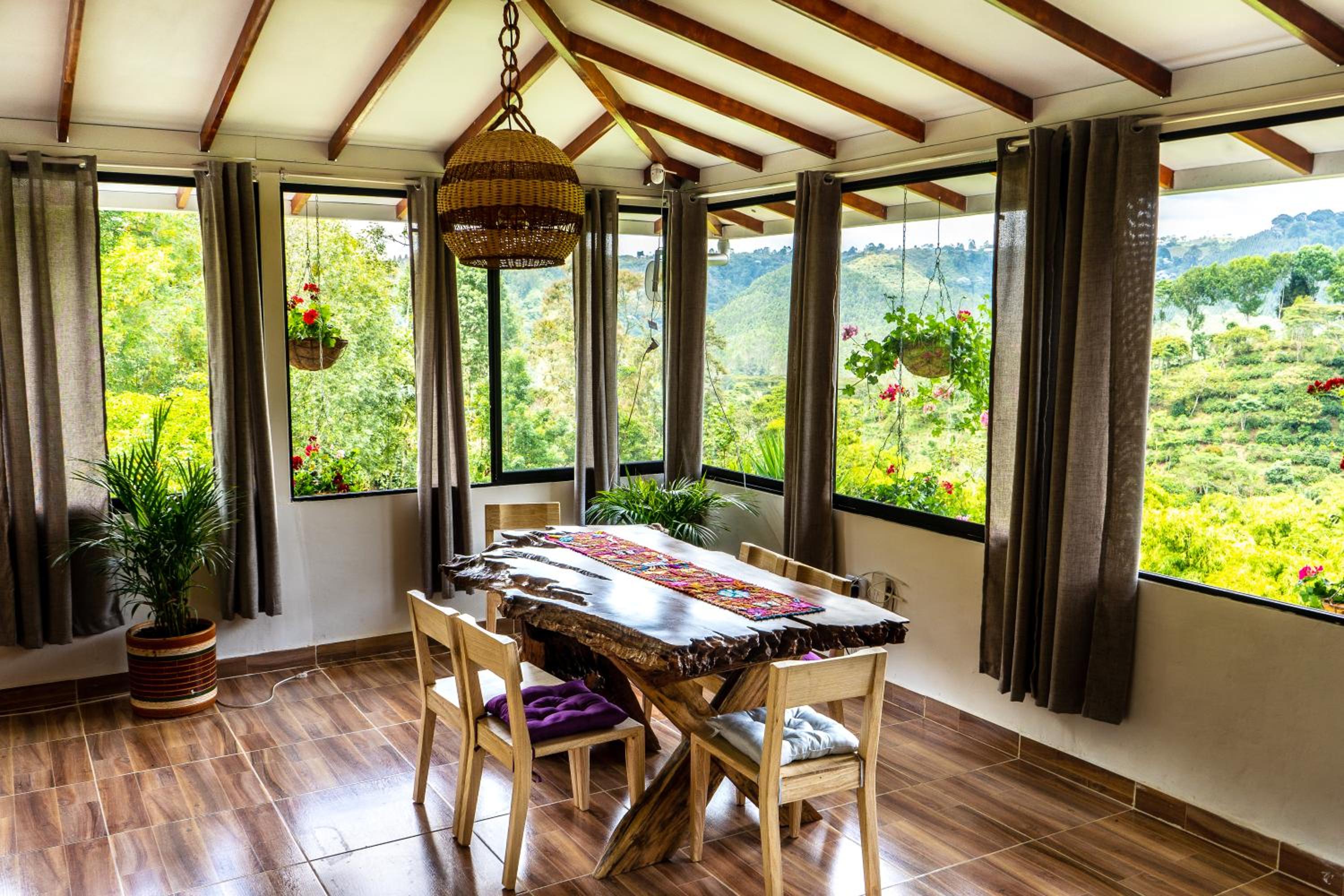 El entorno es espectacular, muy bien cuidado. Toda la zona común tiene un ventanal panorámico con vistas impresionantes, cuidadosamente decorado. Solo tiene 4 habitaciones, lo que lo convierte en un lugar muy tranquilo e íntimo. A menos de 15 minutos de Salento. Rodeado de fincas cafeteras.