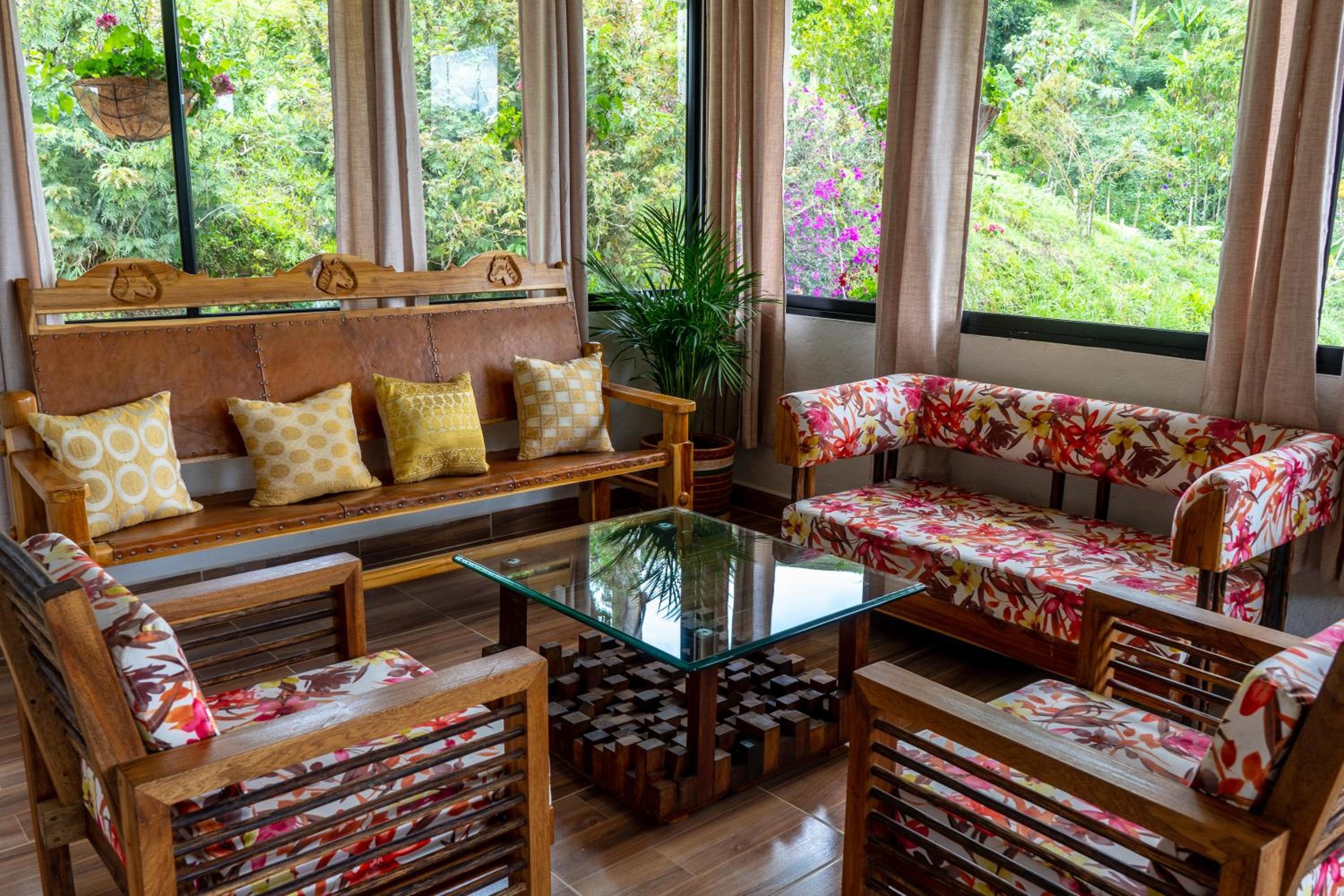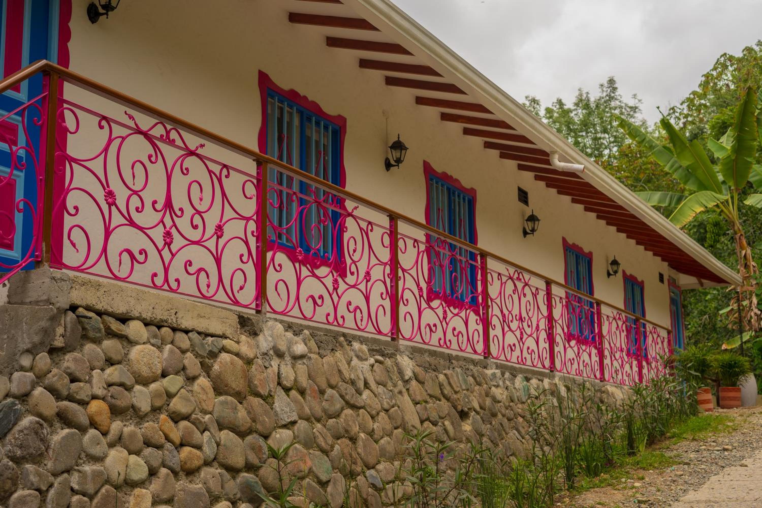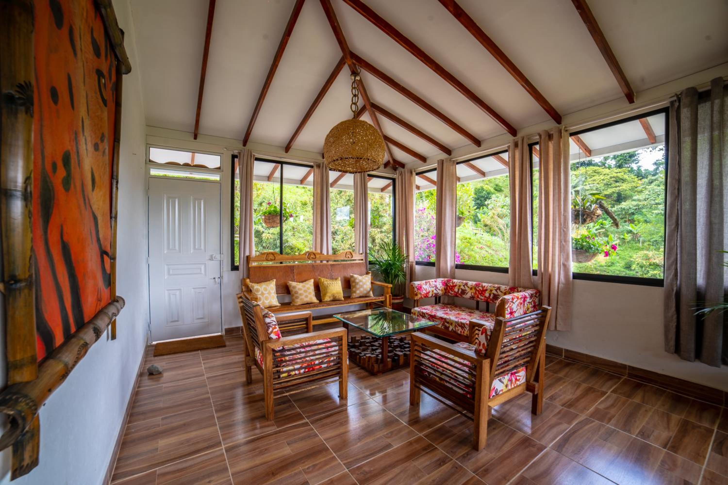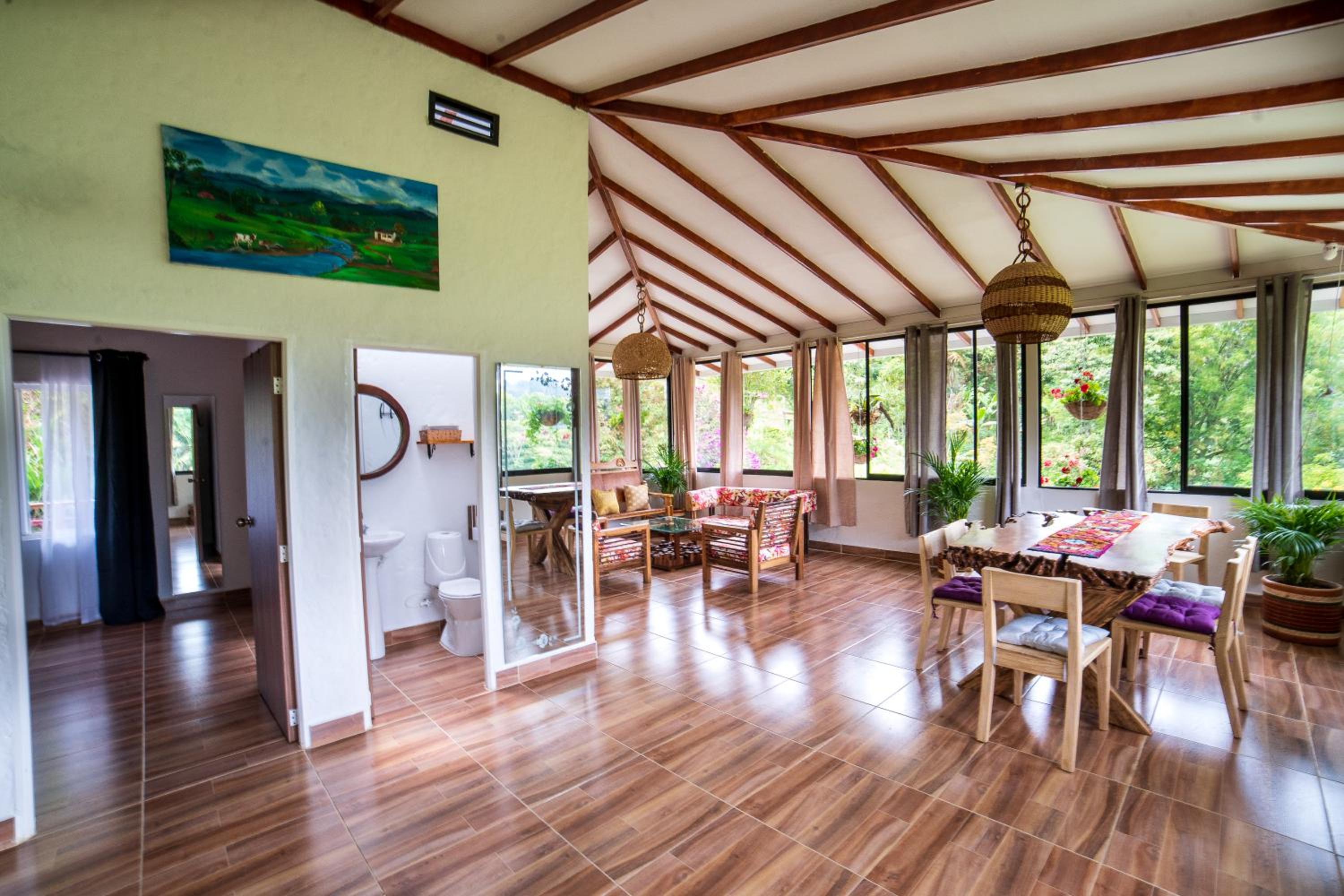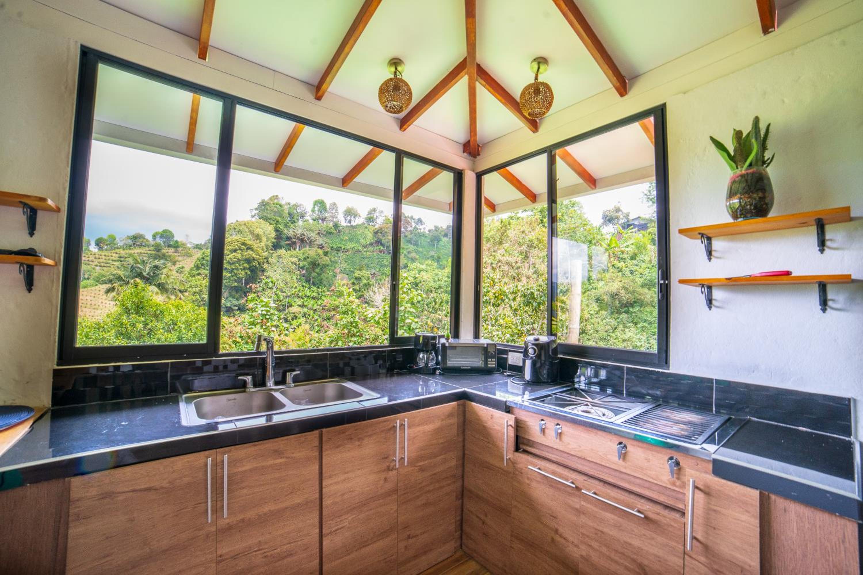 El entorno es espectacular, muy bien cuidado. Toda la zona común tiene un ventanal panorámico con vistas impresionantes, cuidadosamente decorado. Solo tiene 4 habitaciones, lo que lo convierte en un lugar muy tranquilo e íntimo. A menos de 15 minutos de Salento. Rodeado de fincas cafeteras.