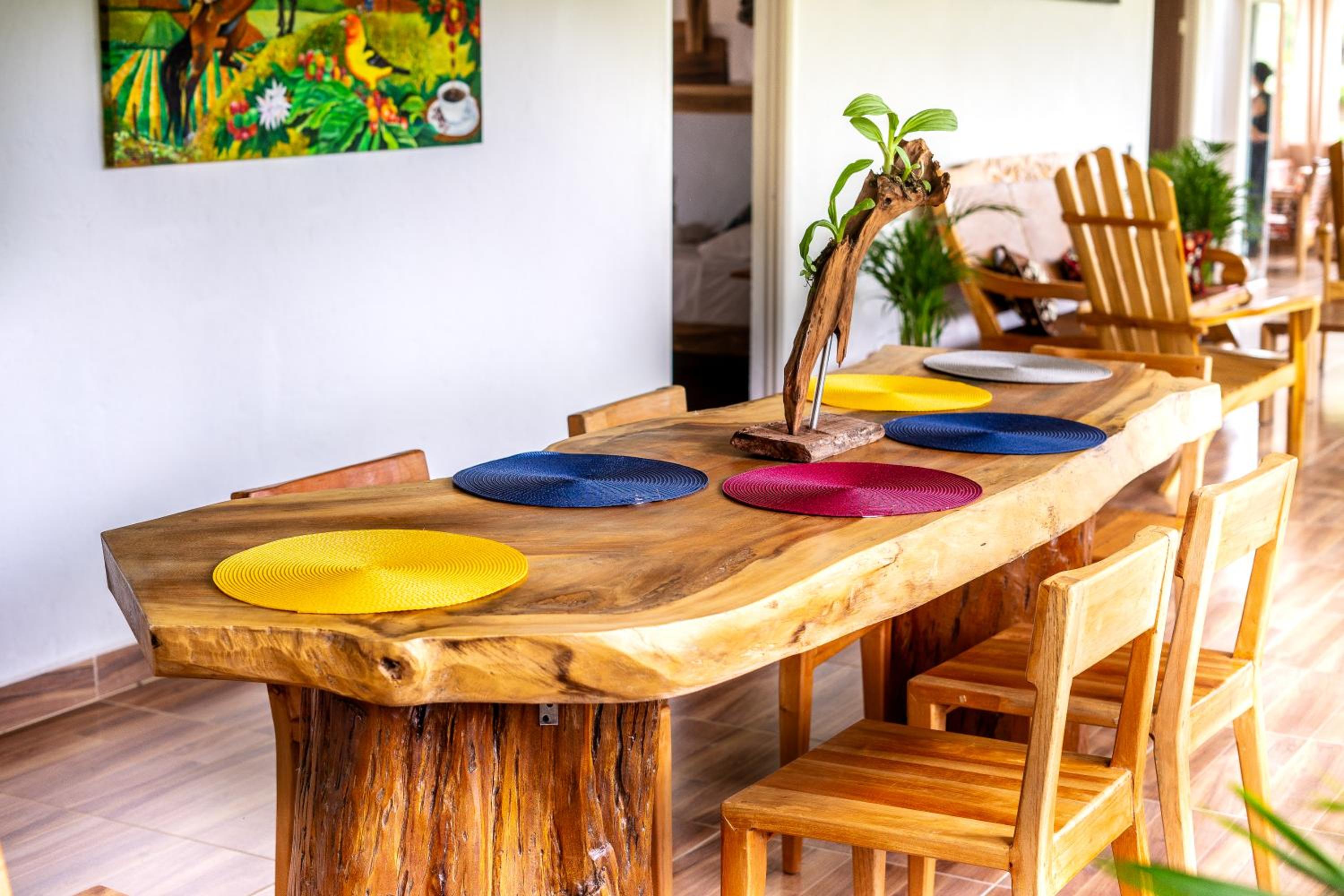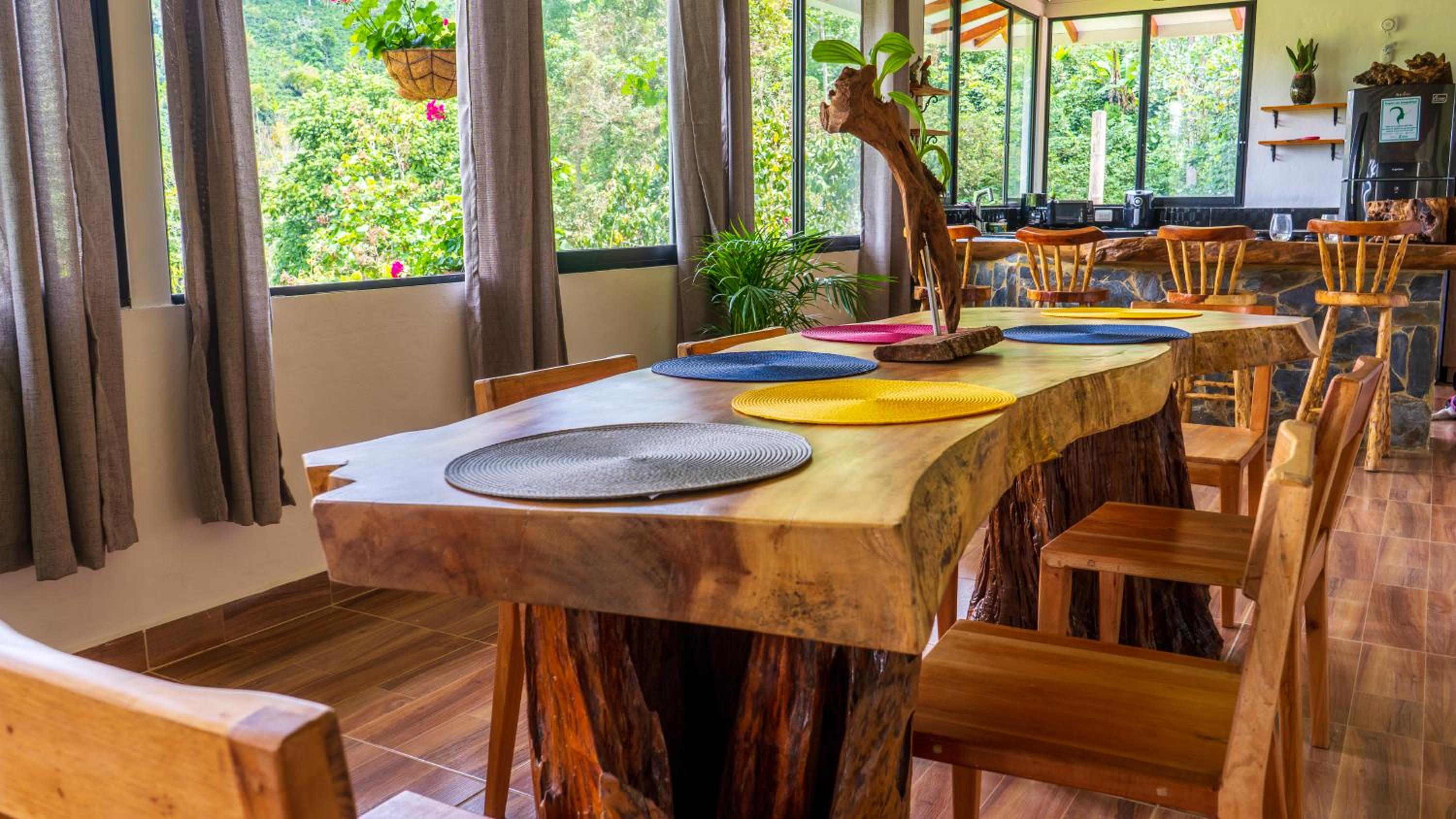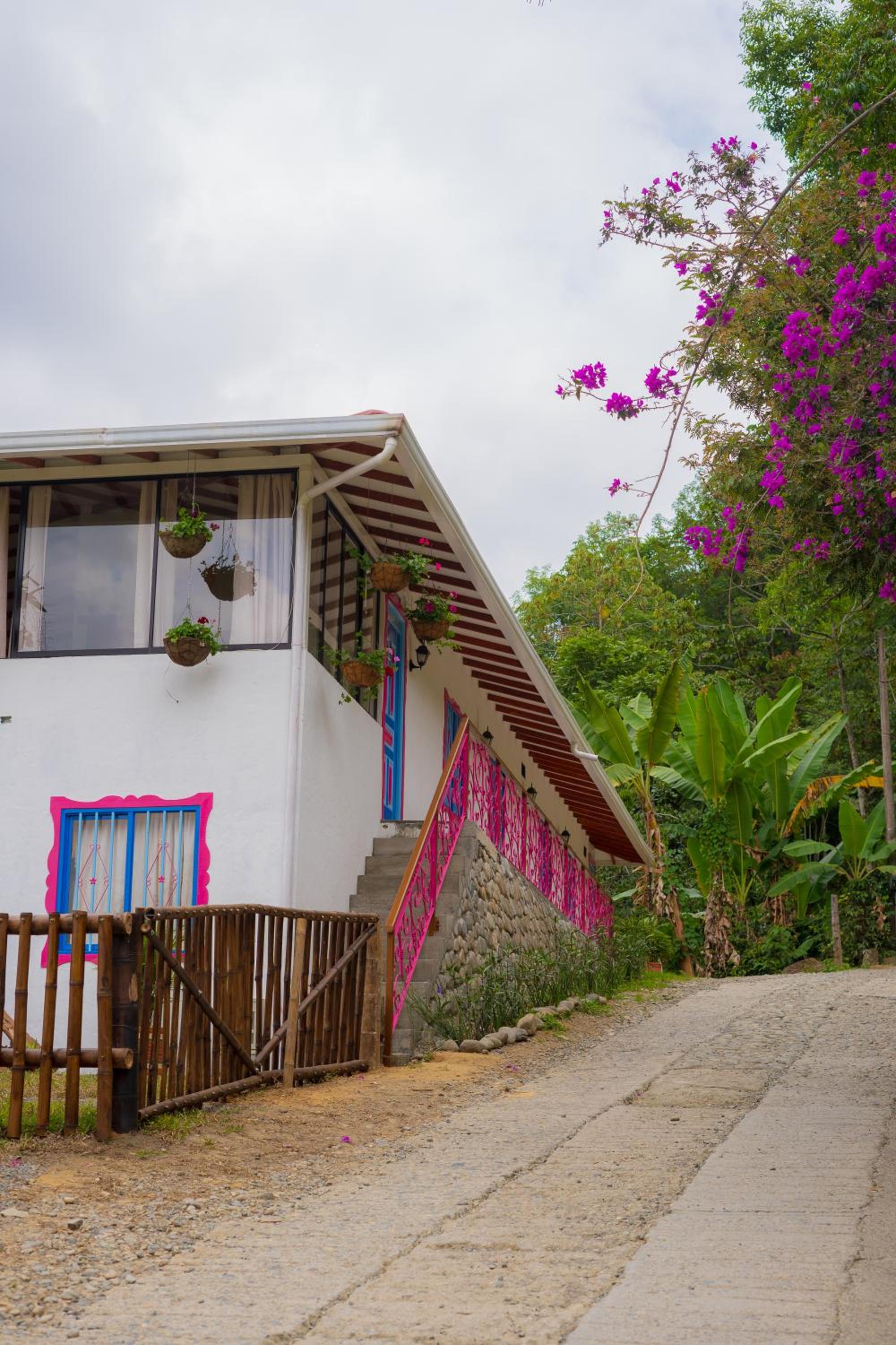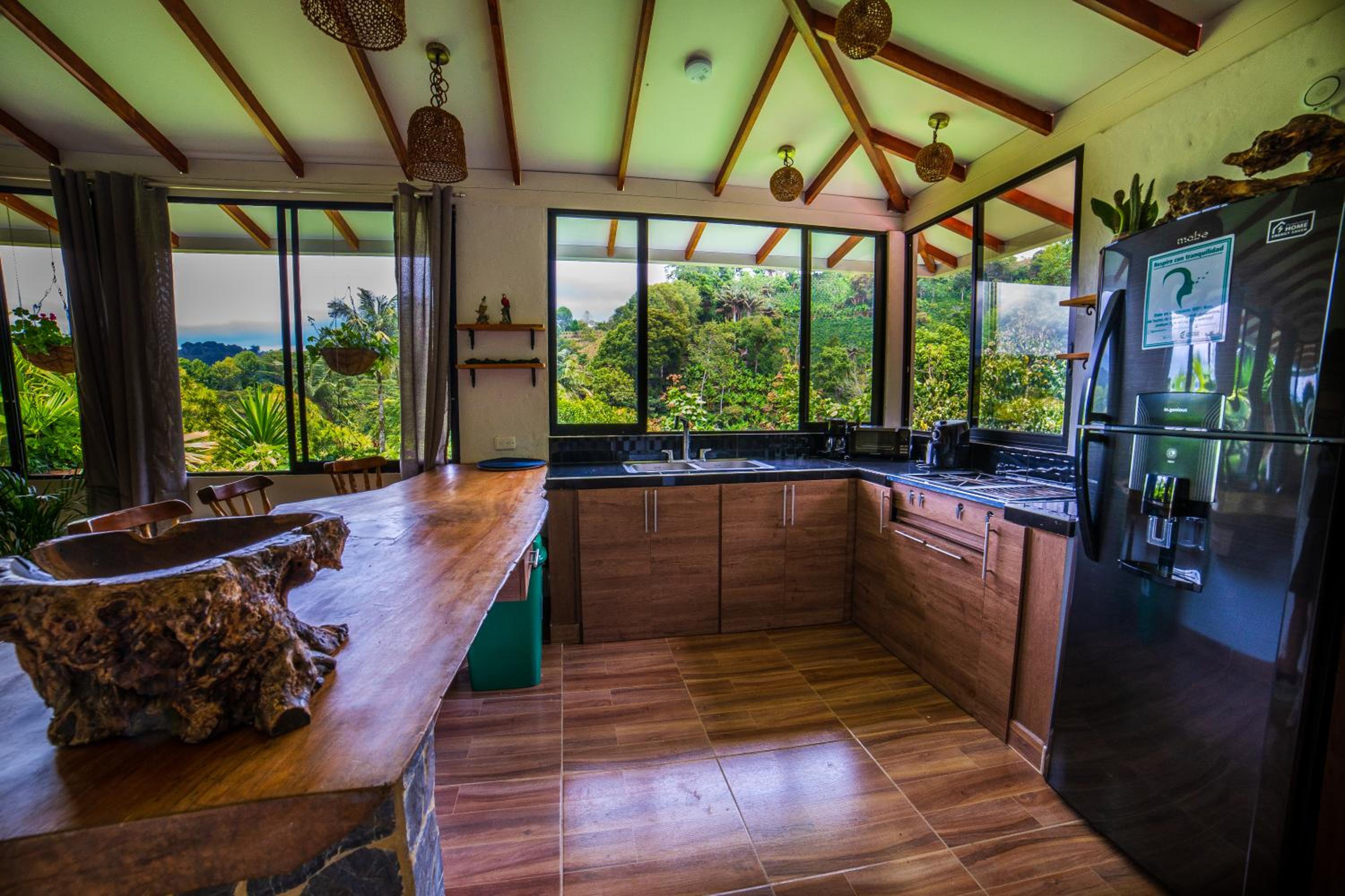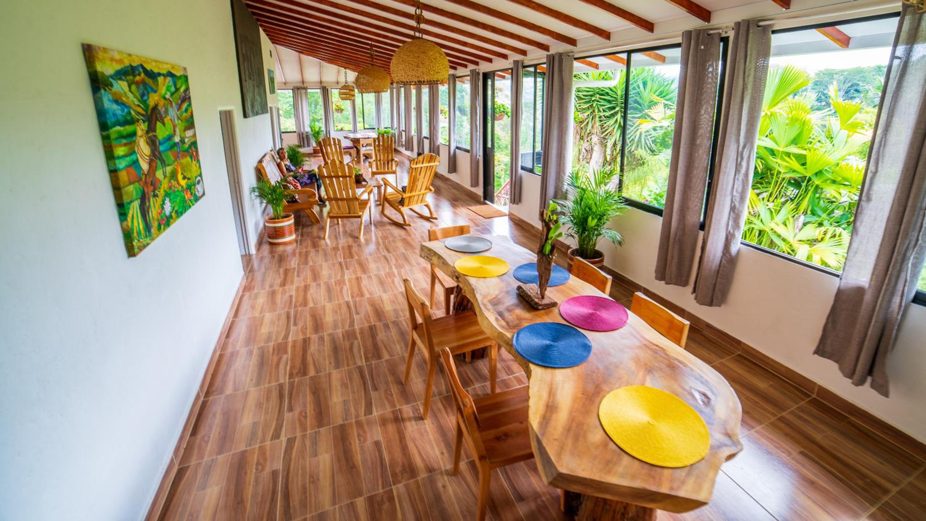 El entorno es espectacular, muy bien cuidado. Toda la zona común tiene un ventanal panorámico con vistas impresionantes, cuidadosamente decorado. Solo tiene 4 habitaciones, lo que lo convierte en un lugar muy tranquilo e íntimo. A menos de 15 minutos de Salento. Rodeado de fincas cafeteras.