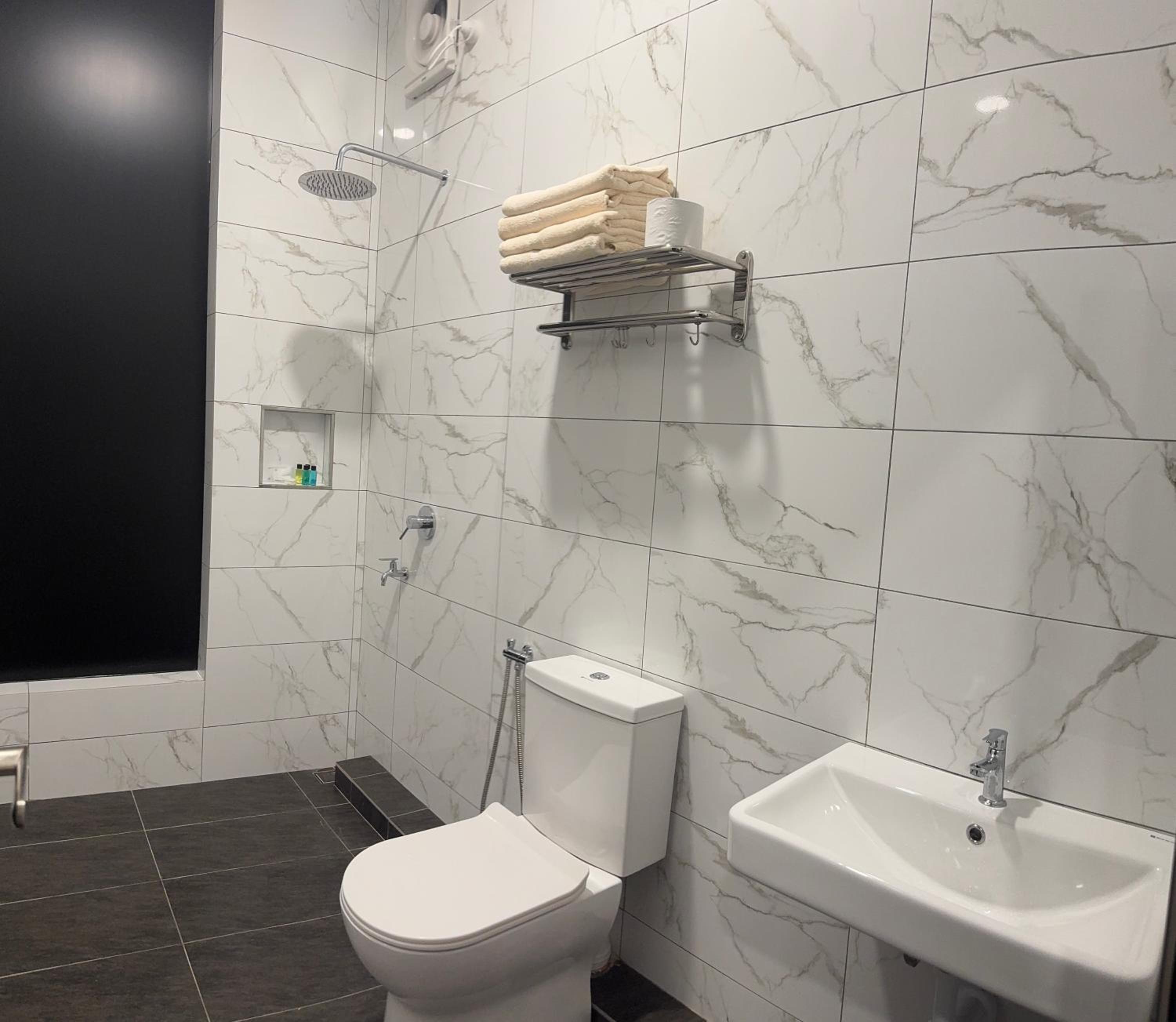 the room is clean and the building is almost new. The shower works well. Parking is monitored by CCTV.