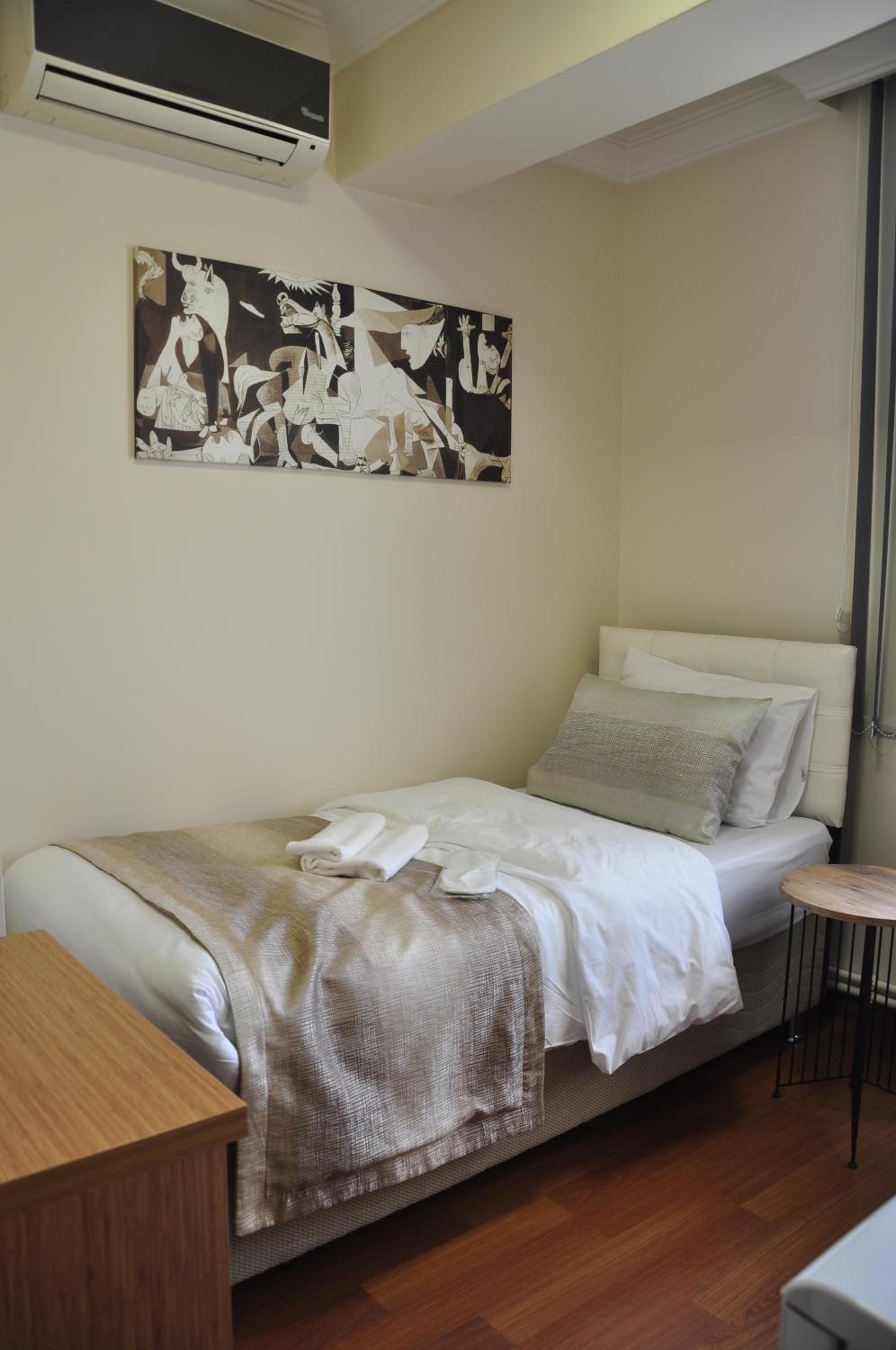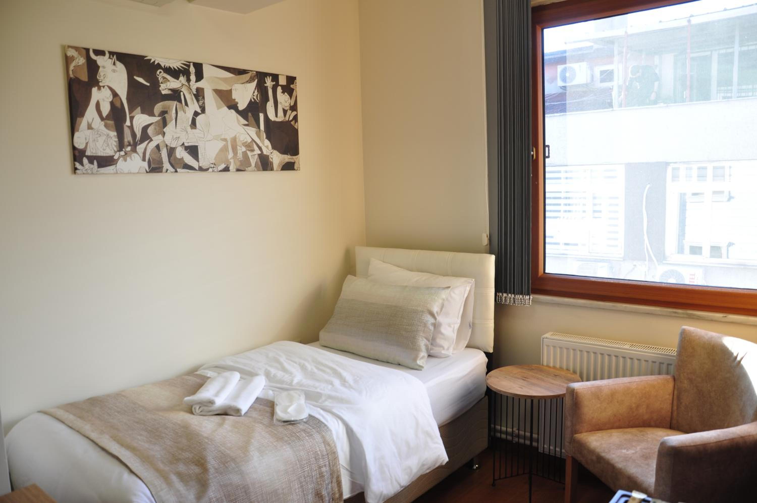 If you don’t know Turkish, you will have a hard time communicating with the staff. The manager (old guy) was very inhospitable as the moment we entered the property with kids he reminded us to be quiet, my kids are all well behaved but you don’t expect them on a leisure to expect hotel having policy similar to a rehab medical facility of pin drop silence. It was an ordeal we have to bear throughout the stay. Even usage of elevator was restricted to 2 persons and repeatedly being reminded to be quiet even inside the room. Worst is the street level noise that kept our kids awake and sleepless throughout the night as there is no insulation on the windows and constant noise from the street can be heard distracting sleep of my toddler several times through both nights.