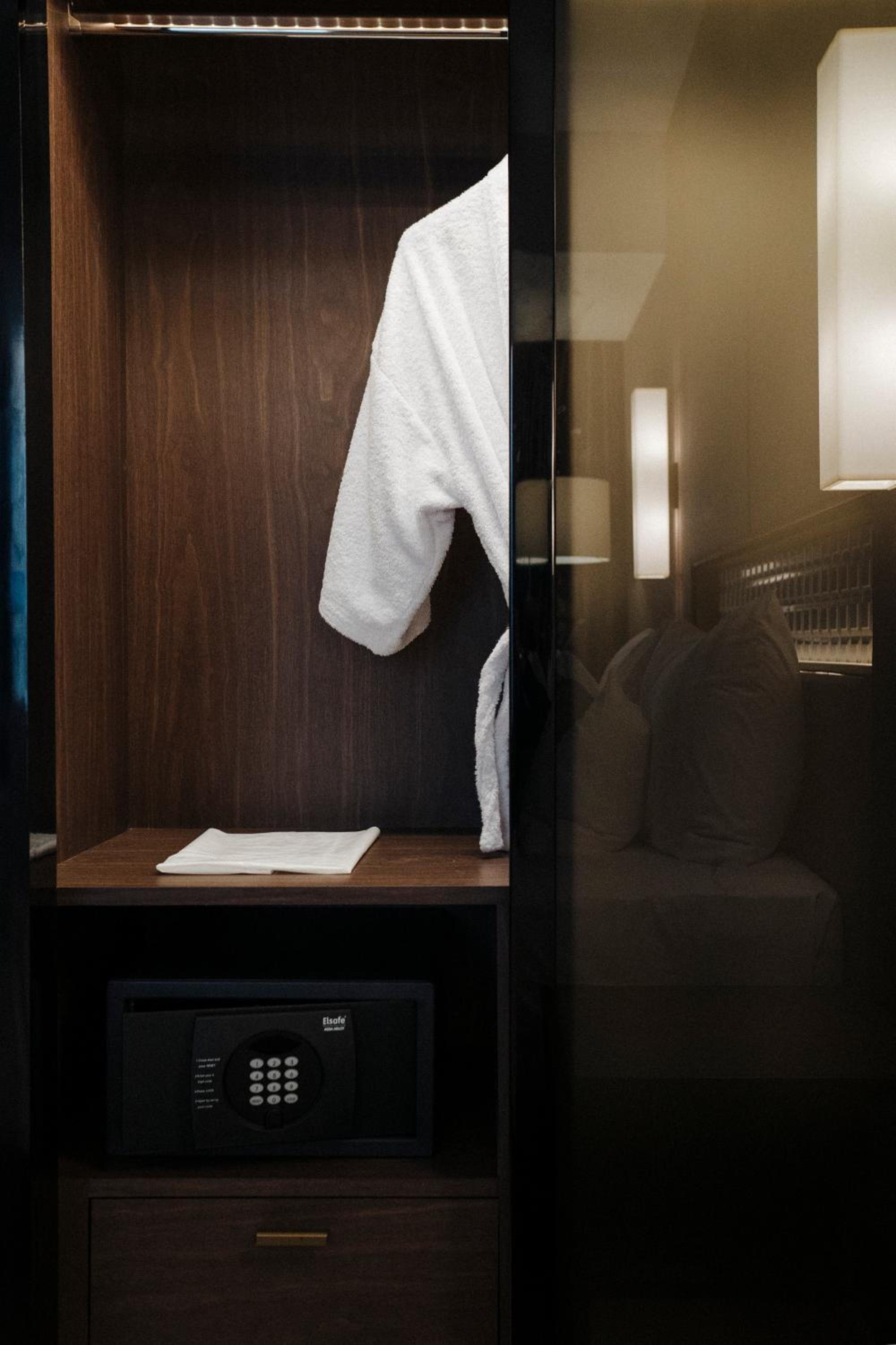 Experience comfort and style in our rooms equipped with modern amenities like flat-screen TVs and personal safes. Enjoy stunning city views from select units and unwind in a private bathroom with complimentary toiletries.