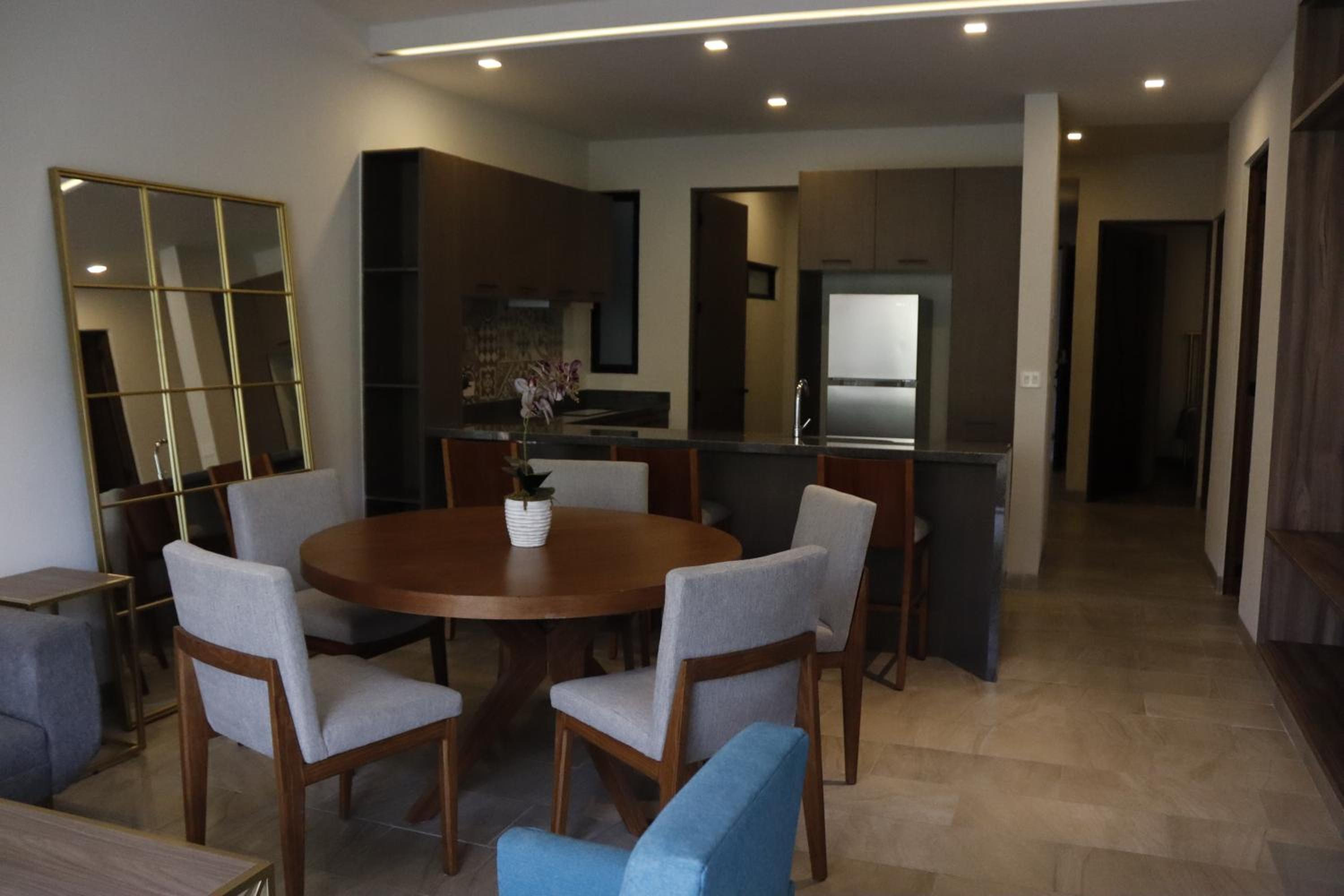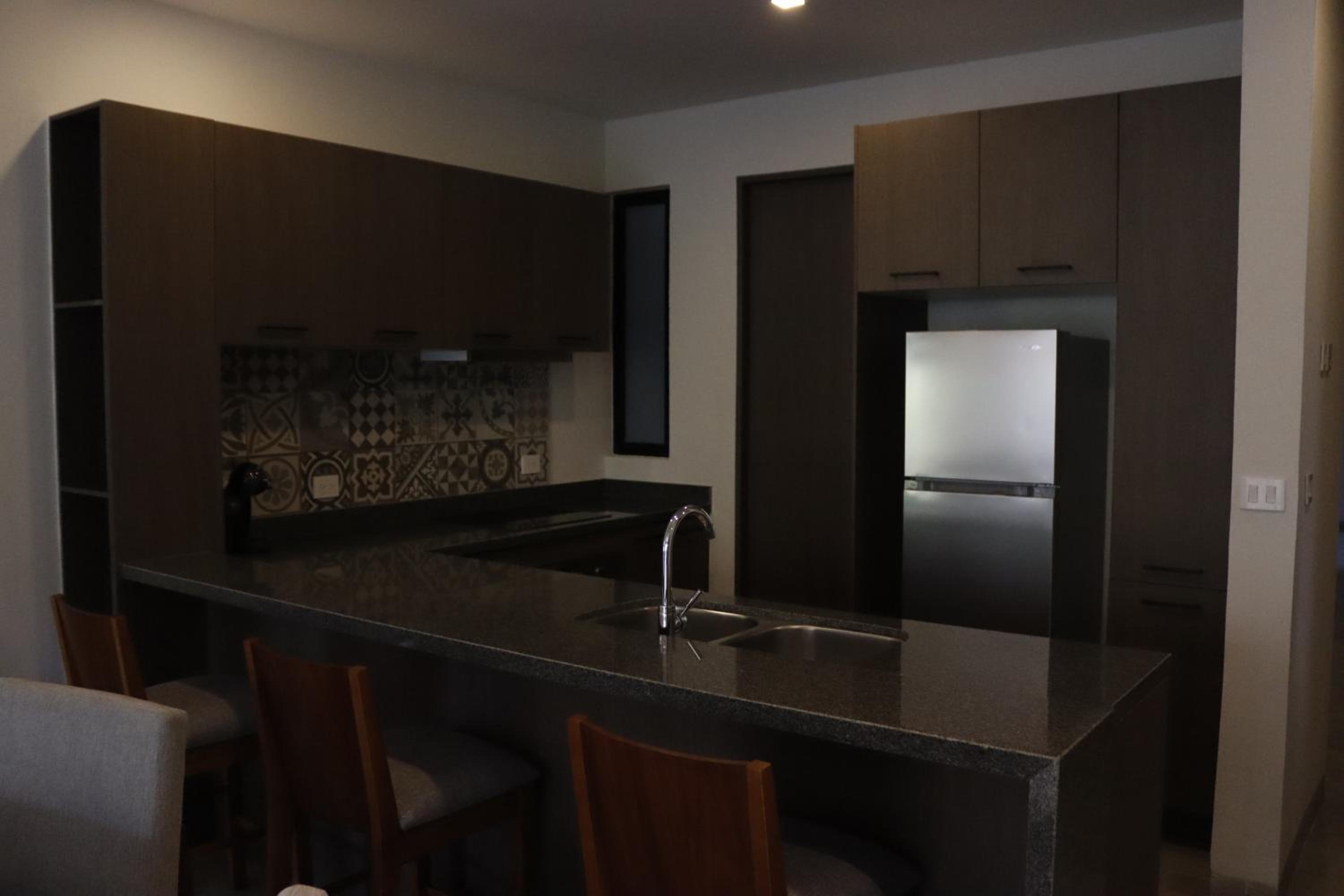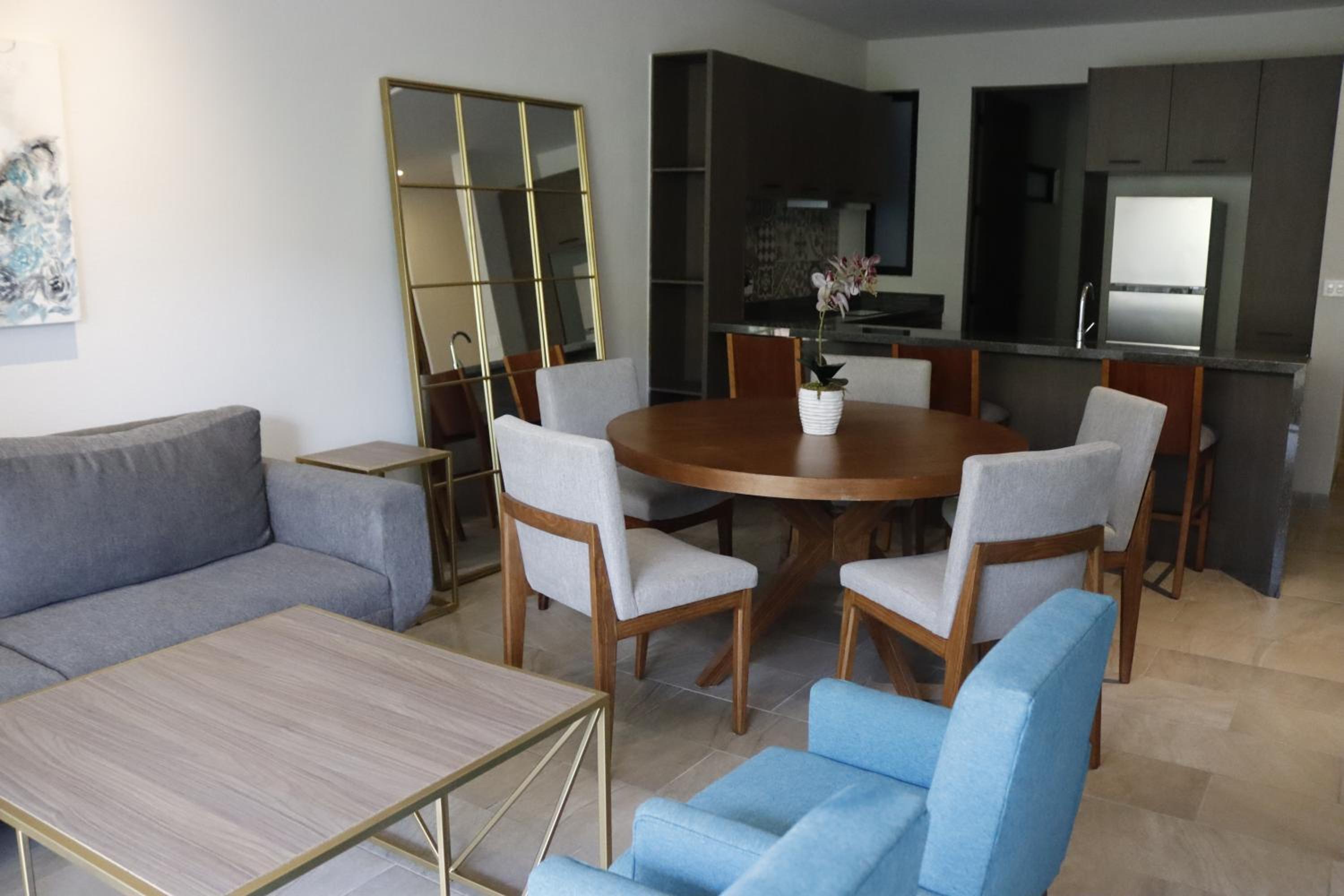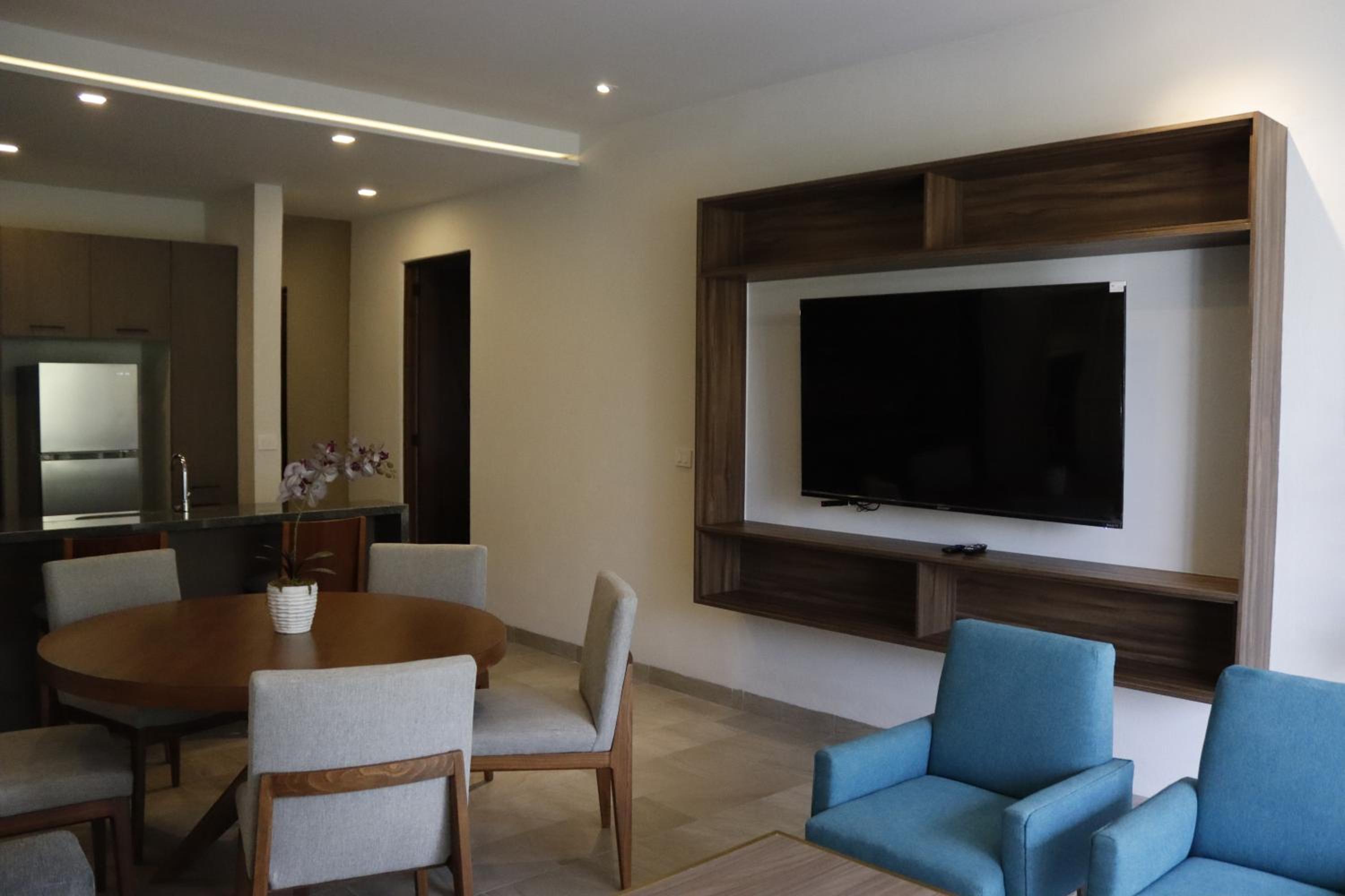 Each unit at the aparthotel is designed for comfort and convenience, featuring a balcony, fully equipped kitchen, dining area, and flat-screen TV.
