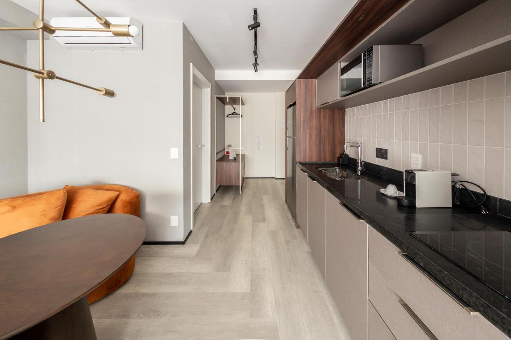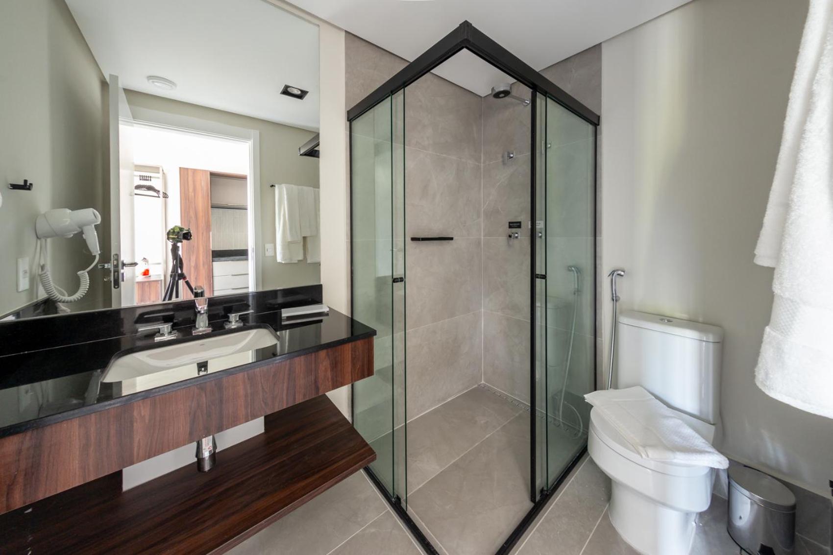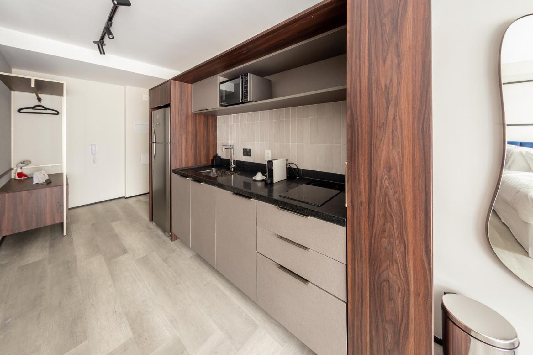 A estrutura é boa, o acabemnto e equipamentos são bons. O check in e check out é bem intuitivo. A equipe de limpeza é muito cortês e eficiente.1