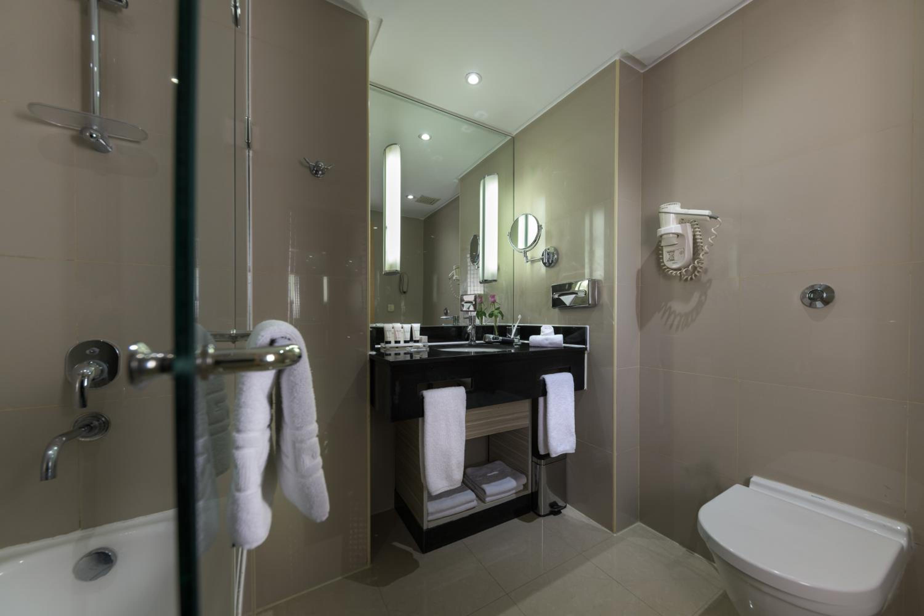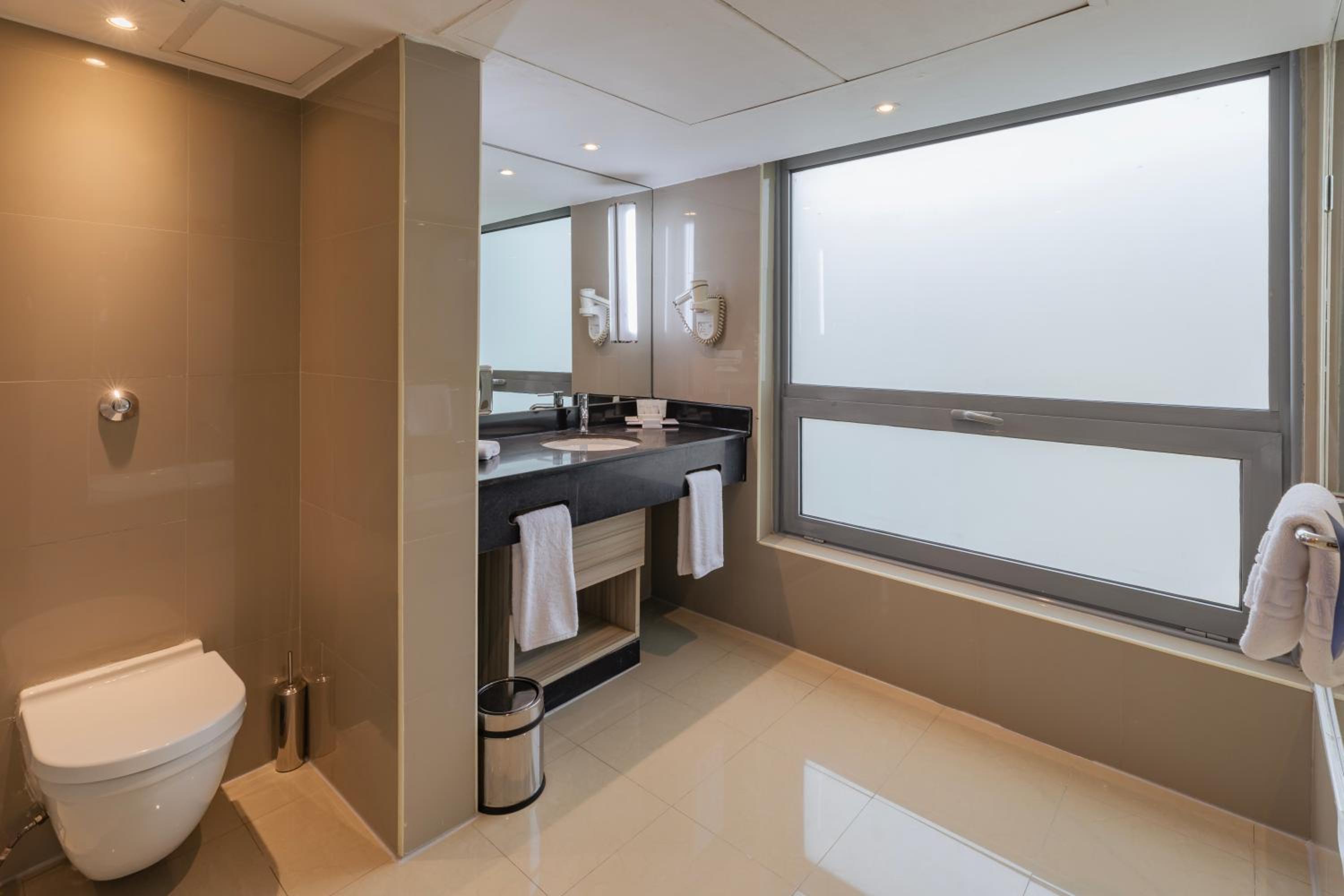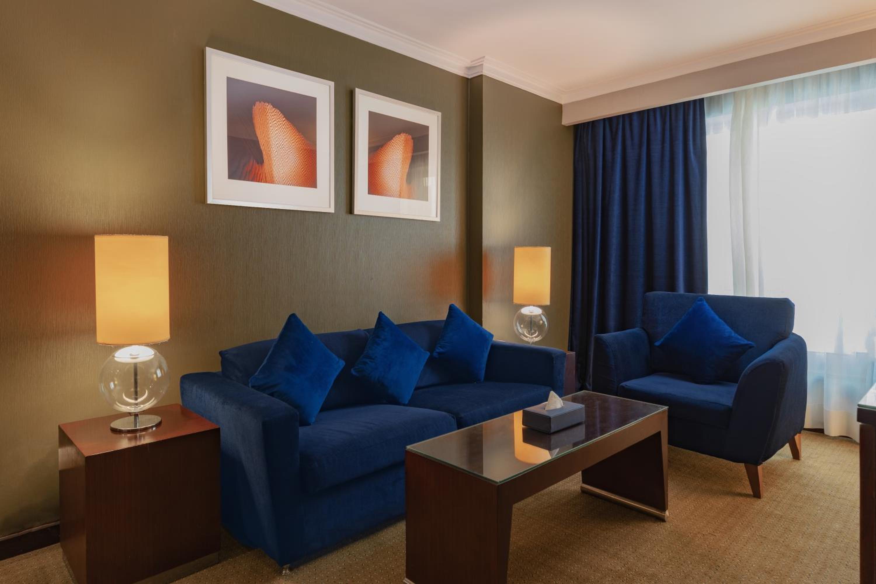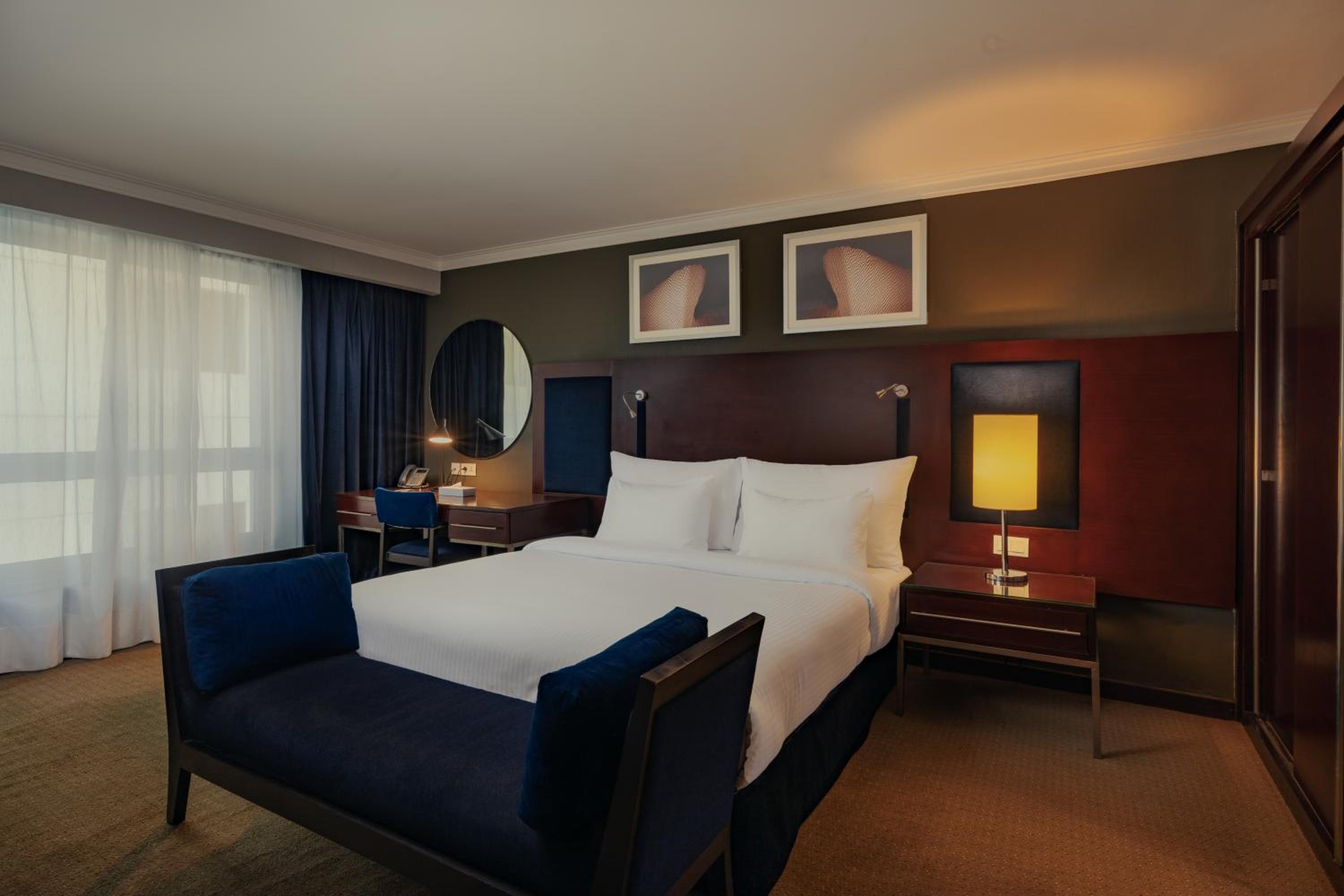 Experience modern décor, Select Comfort beds, and stunning views of Cairo from your room at Radisson Blu Hotel Cairo Heliopolis. Indulge in complimentary luxury bathroom amenities and relax in a cozy seating area.