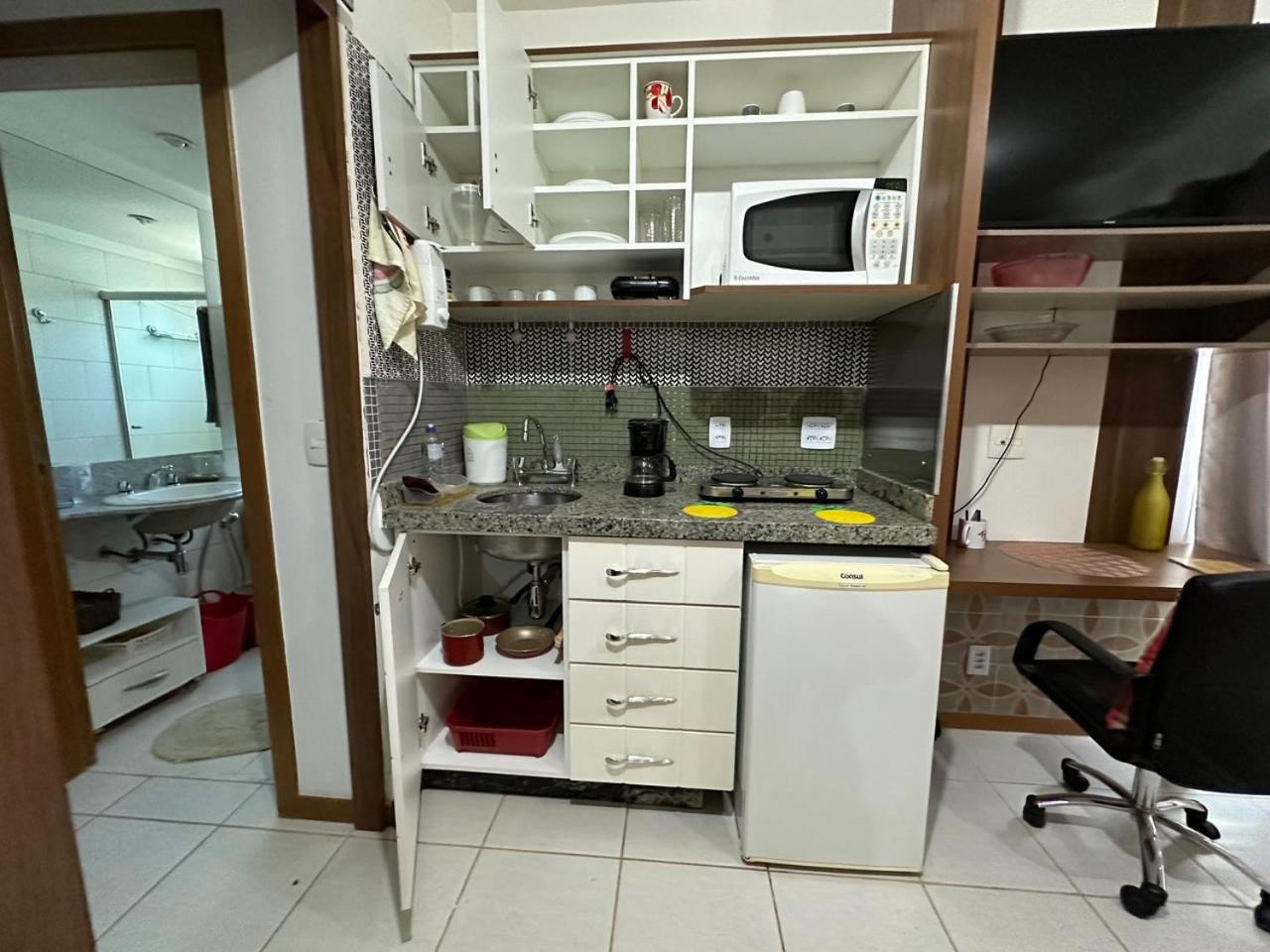 The kitchenette is not well designed. Specifically, the cooker and sink are next to each other.
