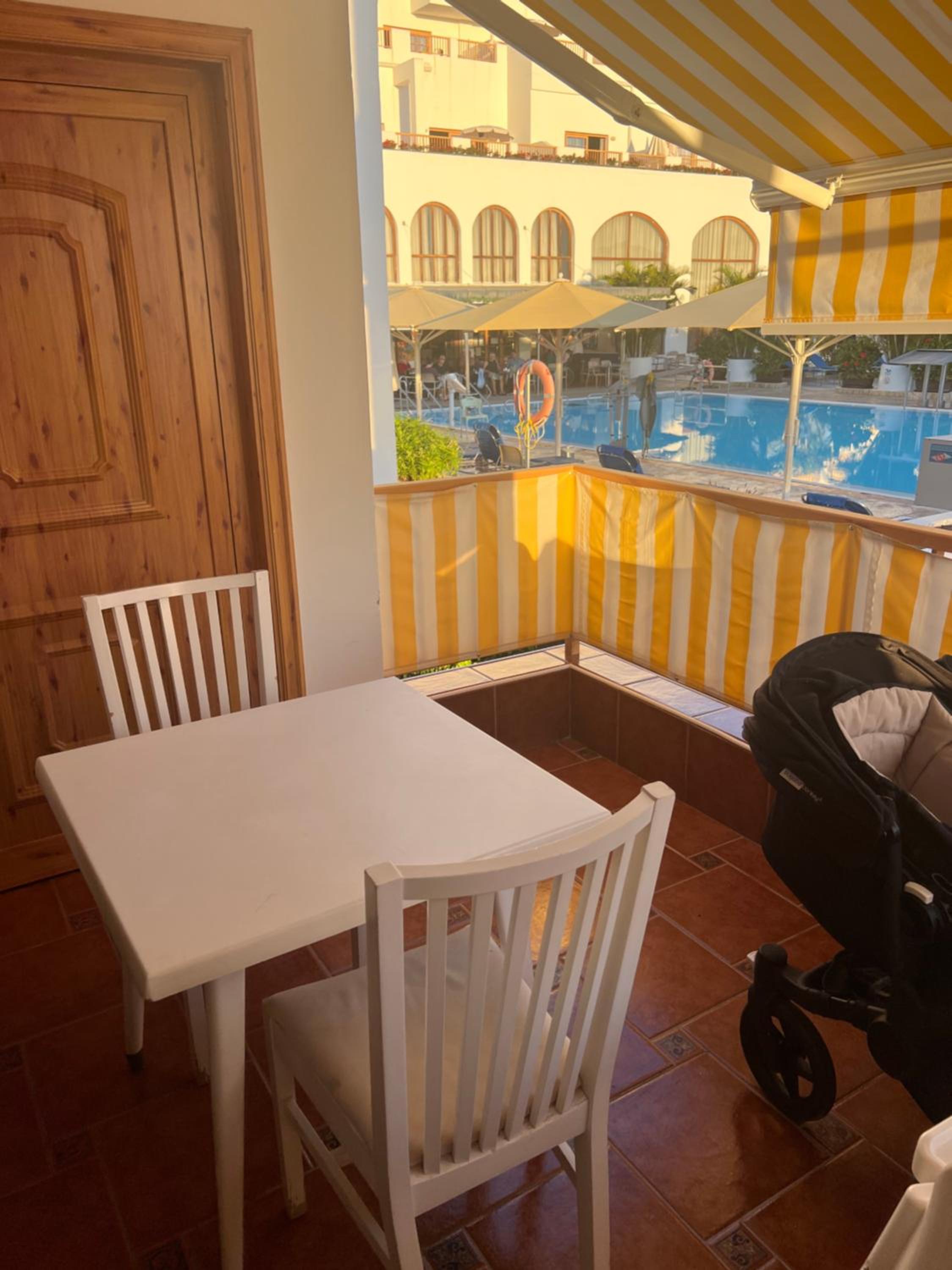 Hotel very nice, well maintained and room was a short walk from reception. Had everything you could ask for, comfortable beds, good shower, fully equipped kitchen, nice balcony, good seating area/tv, free safe and lots of storage space. Very good experience from meeting owner to staying. In a fantastic area just opposite Mirador strip so huge choice of great bars/restaurants within 100m