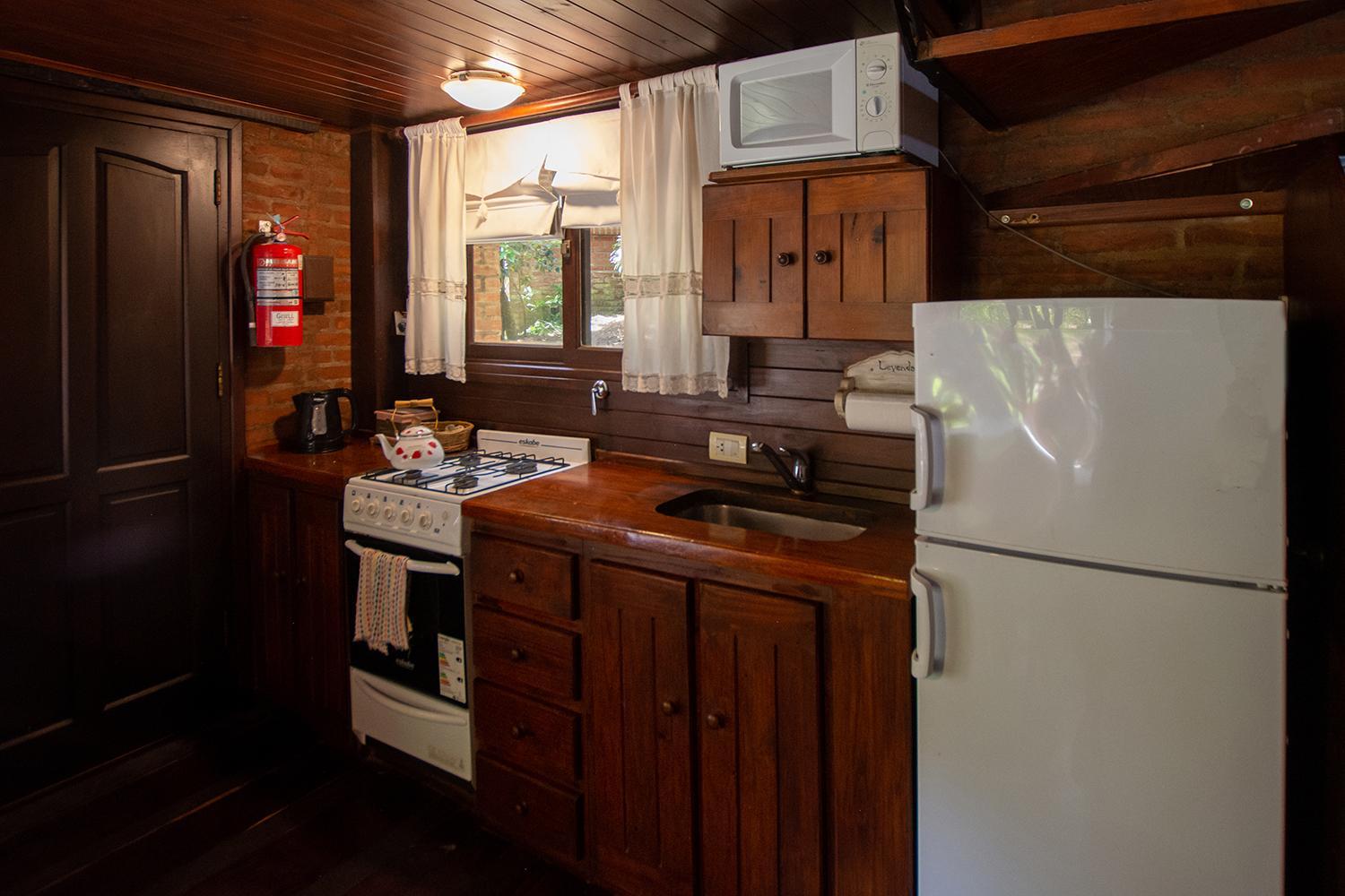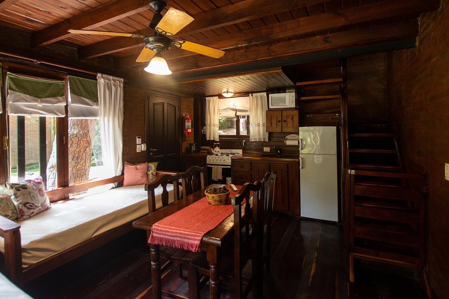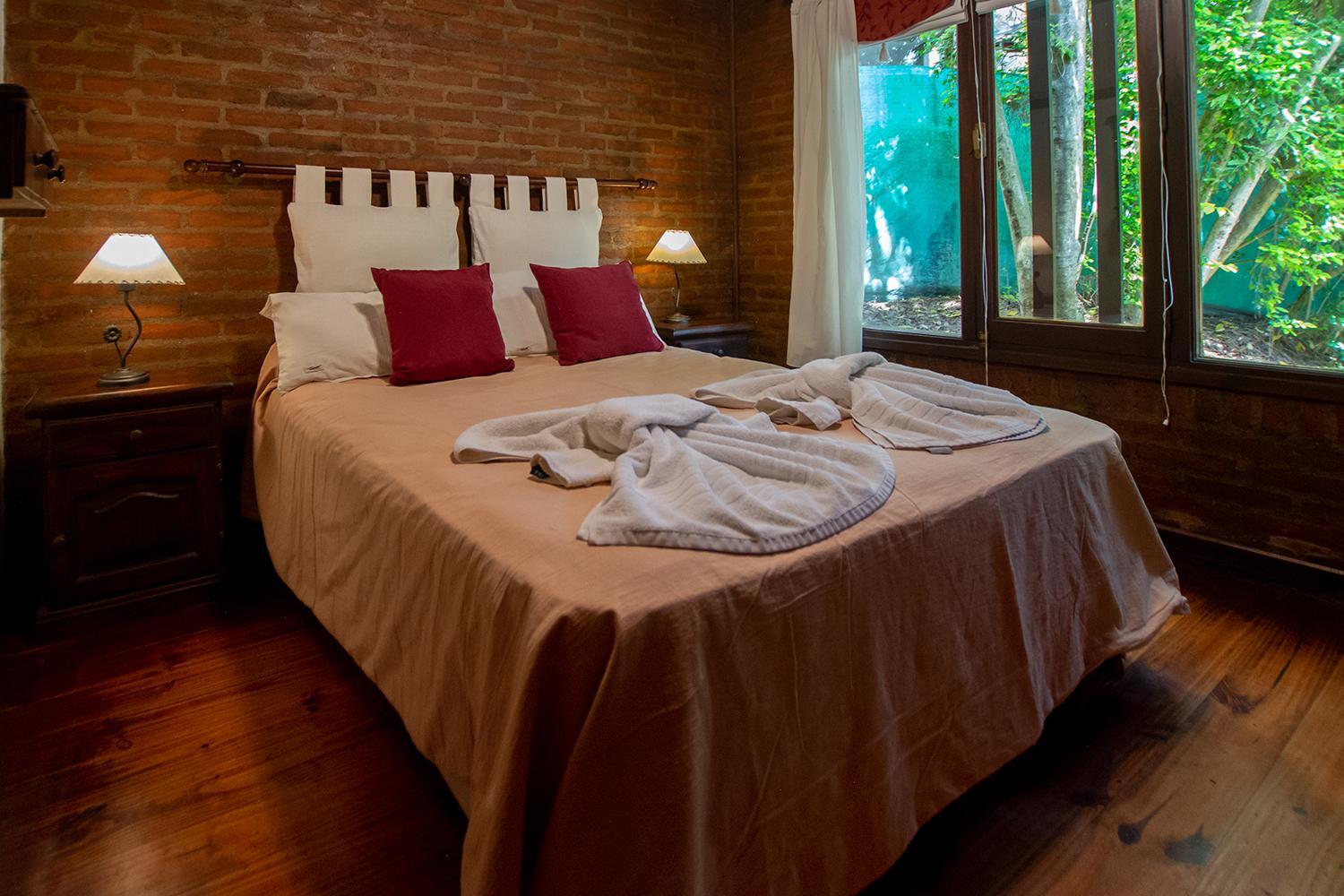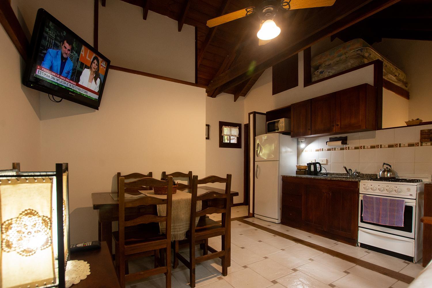 Las cabañas son muy lindas. Están rodeadas de verde y con espacio para estar afuera. Prendimos la parrilla todos los días. Descansamos mucho. También disfrutamos la pileta y pudimos llevar a nuestro perrito. El desayuno era super completo y el personal muy amable.