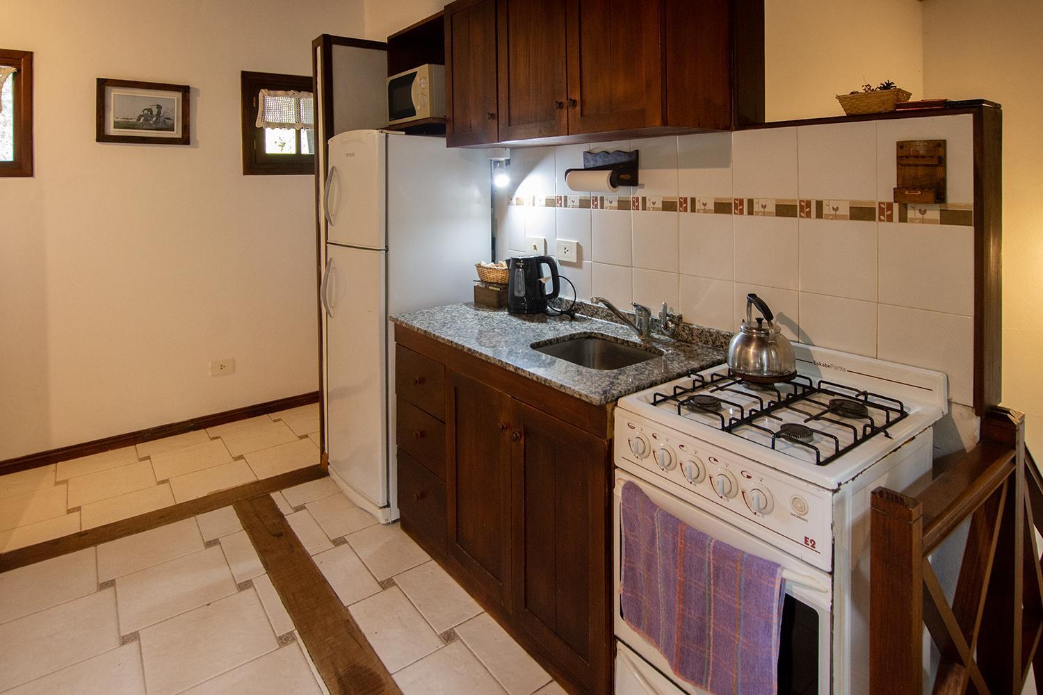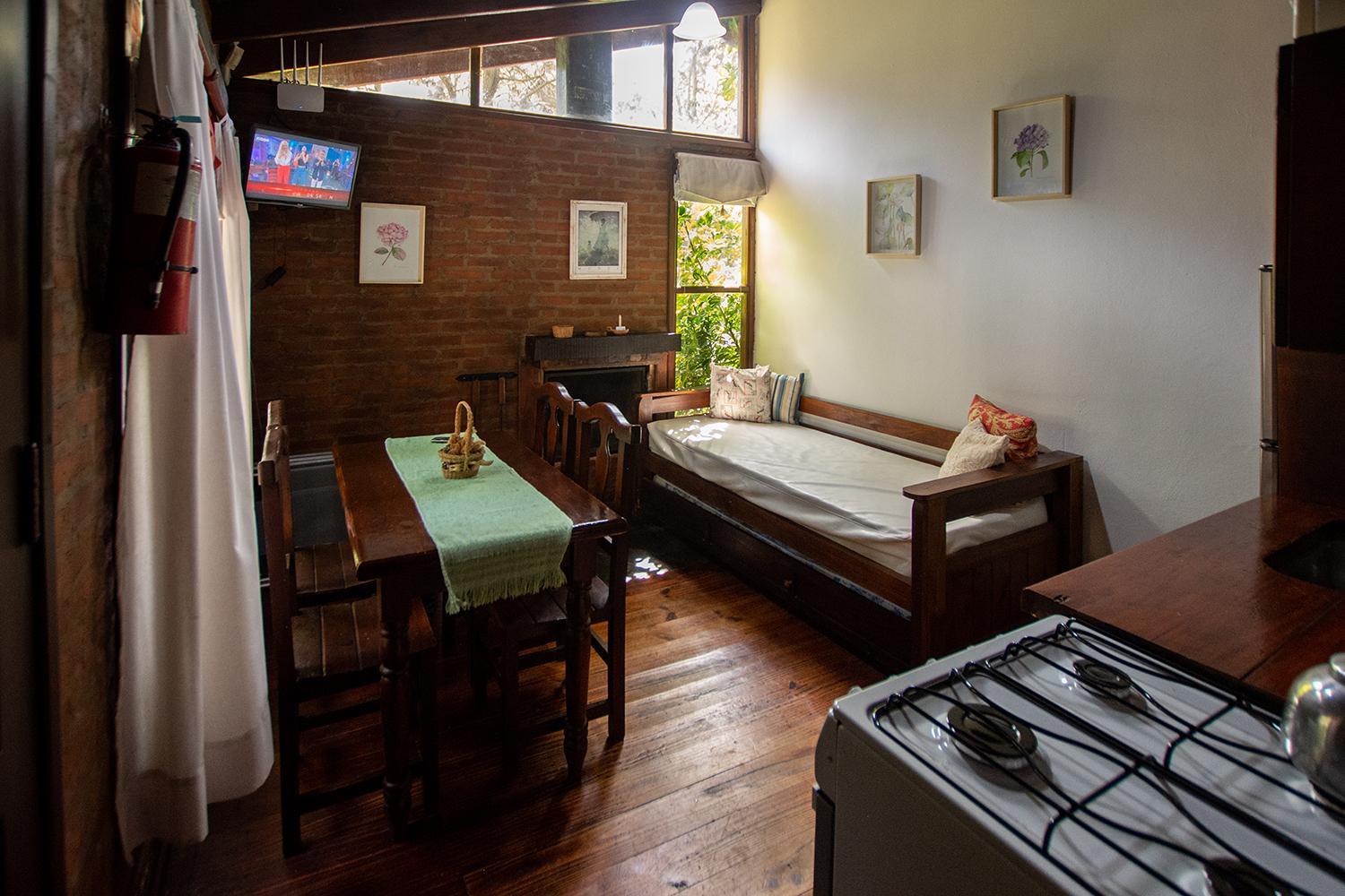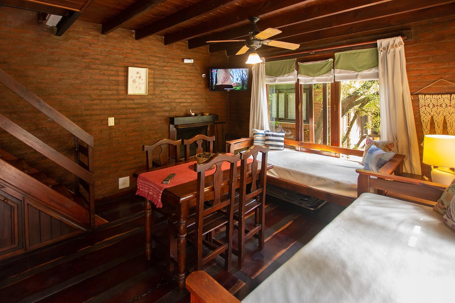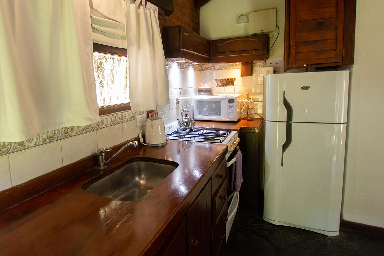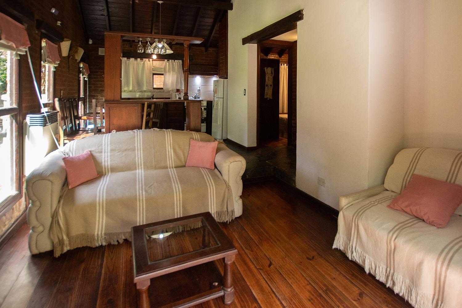 Las cabañas son muy lindas. Están rodeadas de verde y con espacio para estar afuera. Prendimos la parrilla todos los días. Descansamos mucho. También disfrutamos la pileta y pudimos llevar a nuestro perrito. El desayuno era super completo y el personal muy amable.