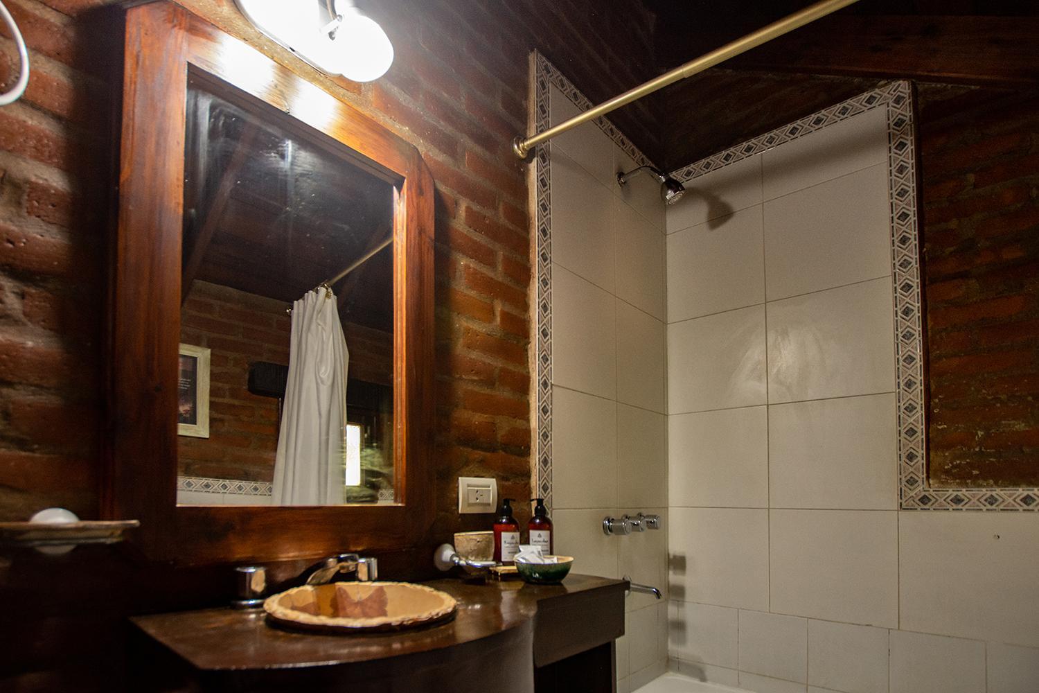 La ducha muy incomoda, imposible ducharse sin inundar el baño y de dificil acceso si tenes movilidad reducida. Griferia de plastico.