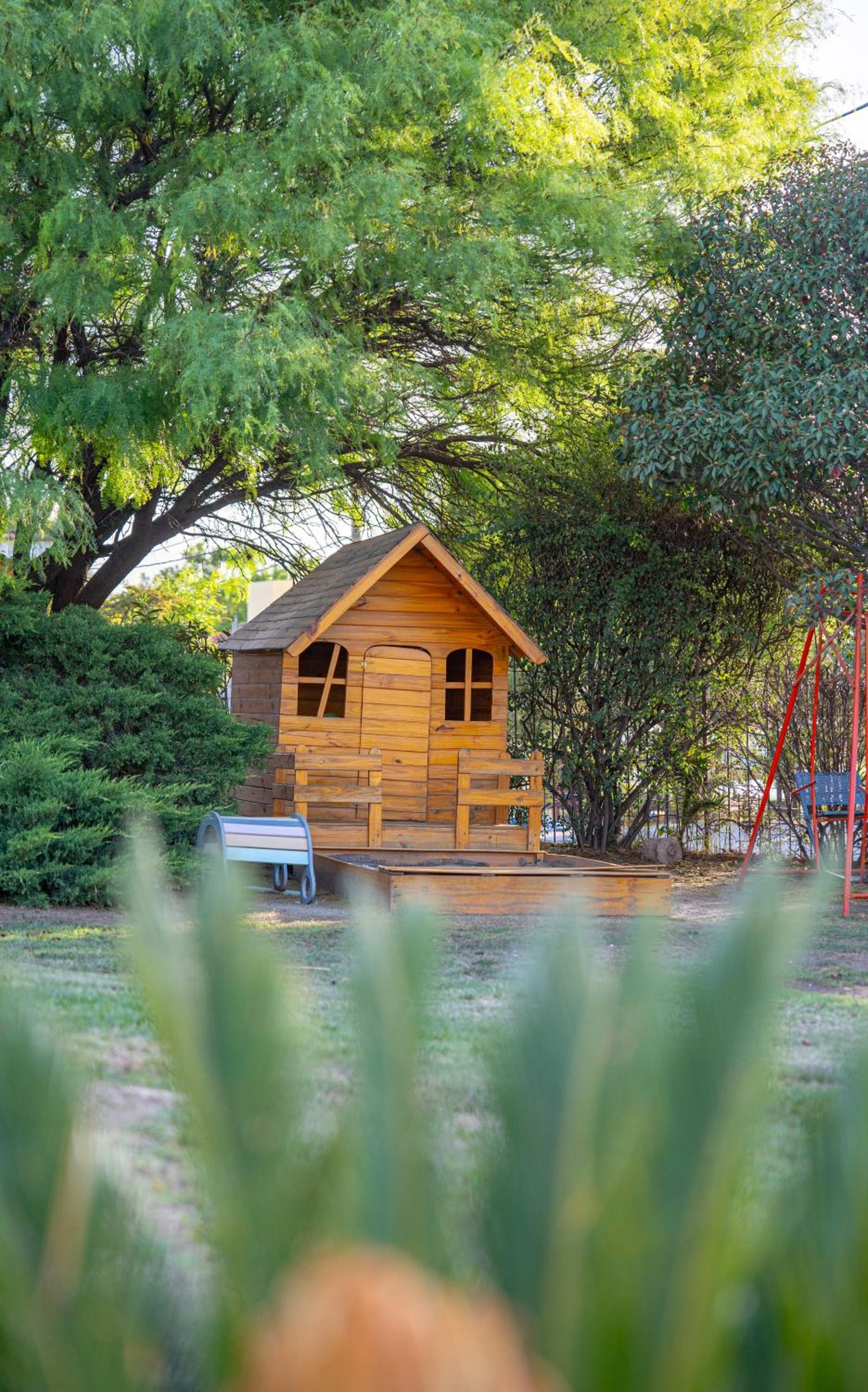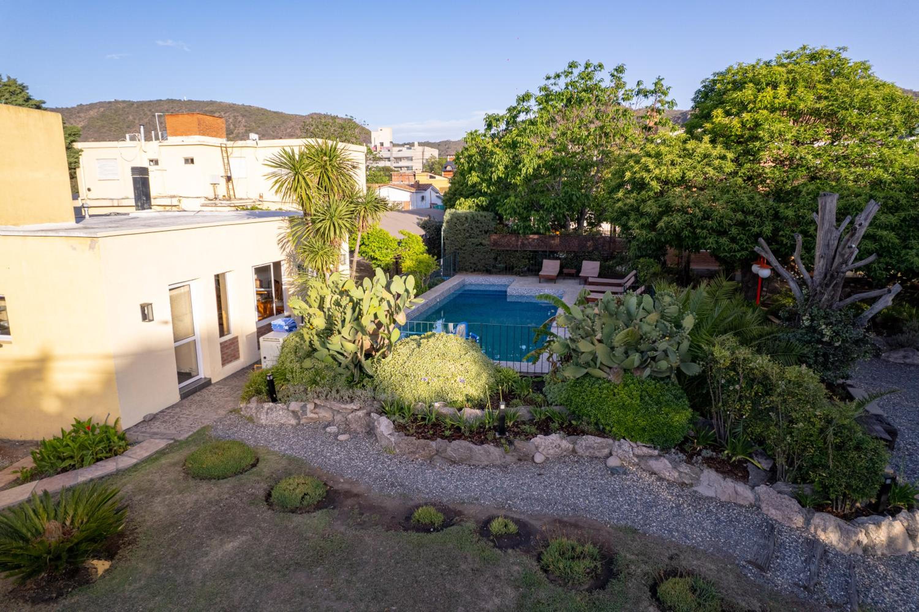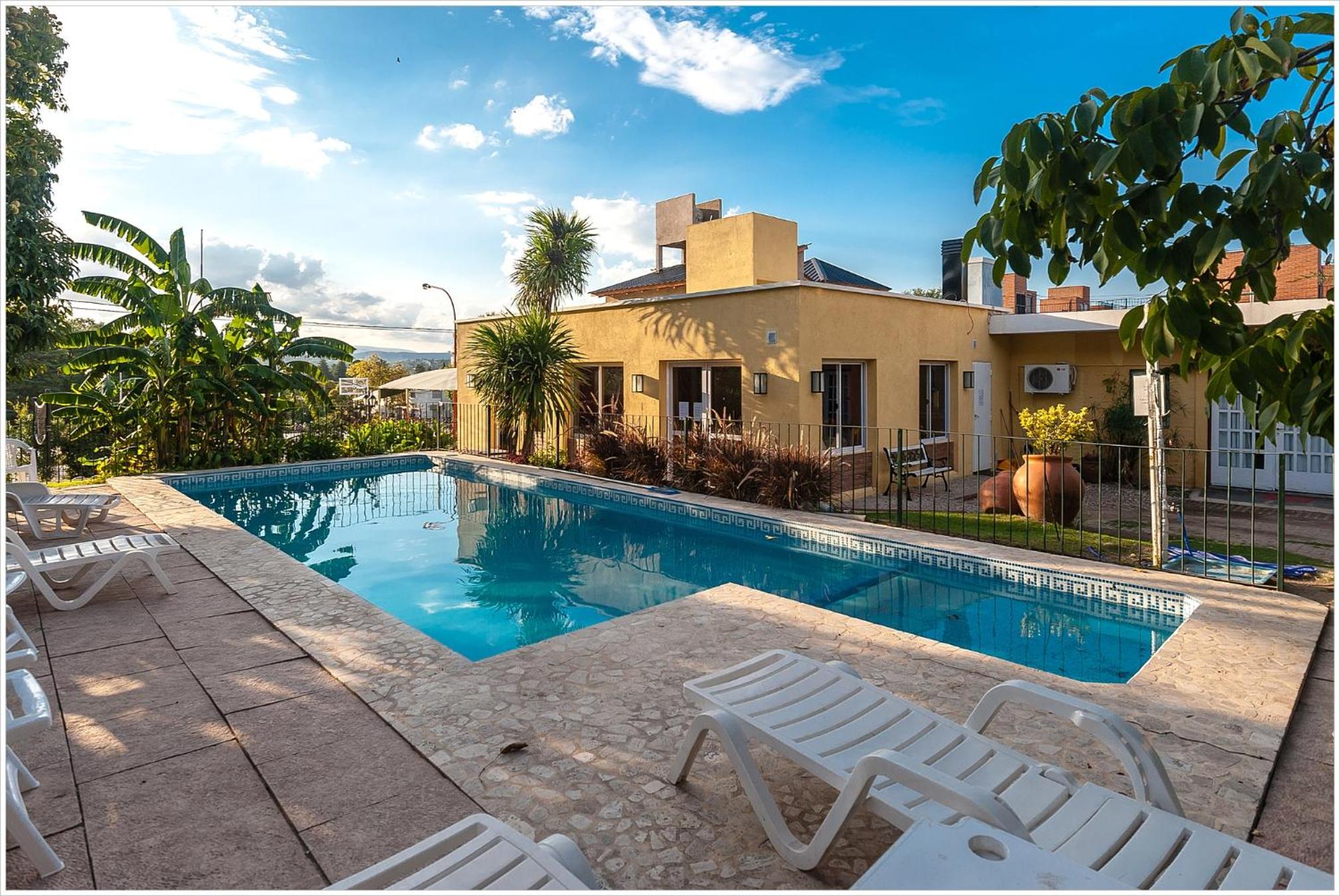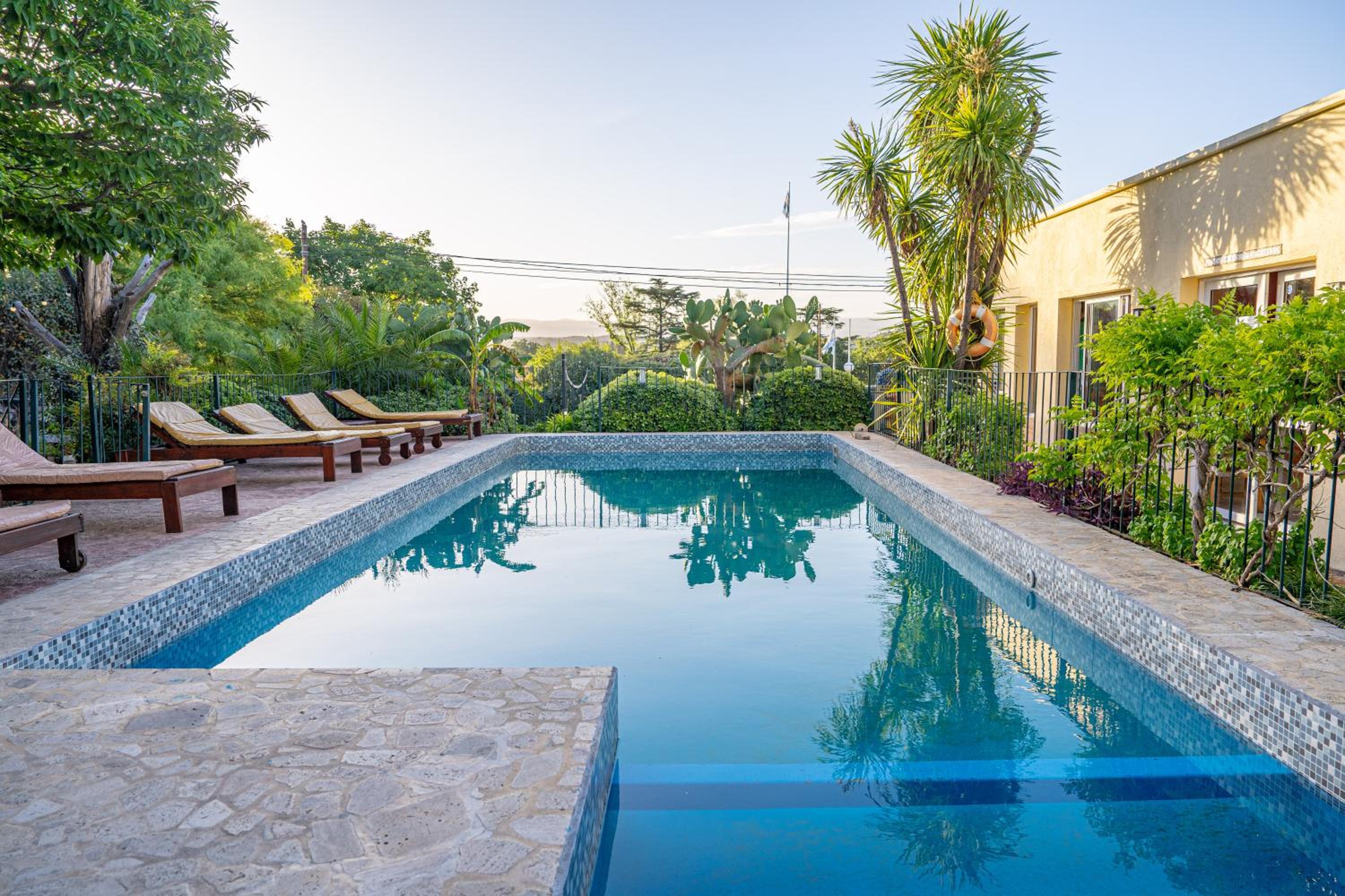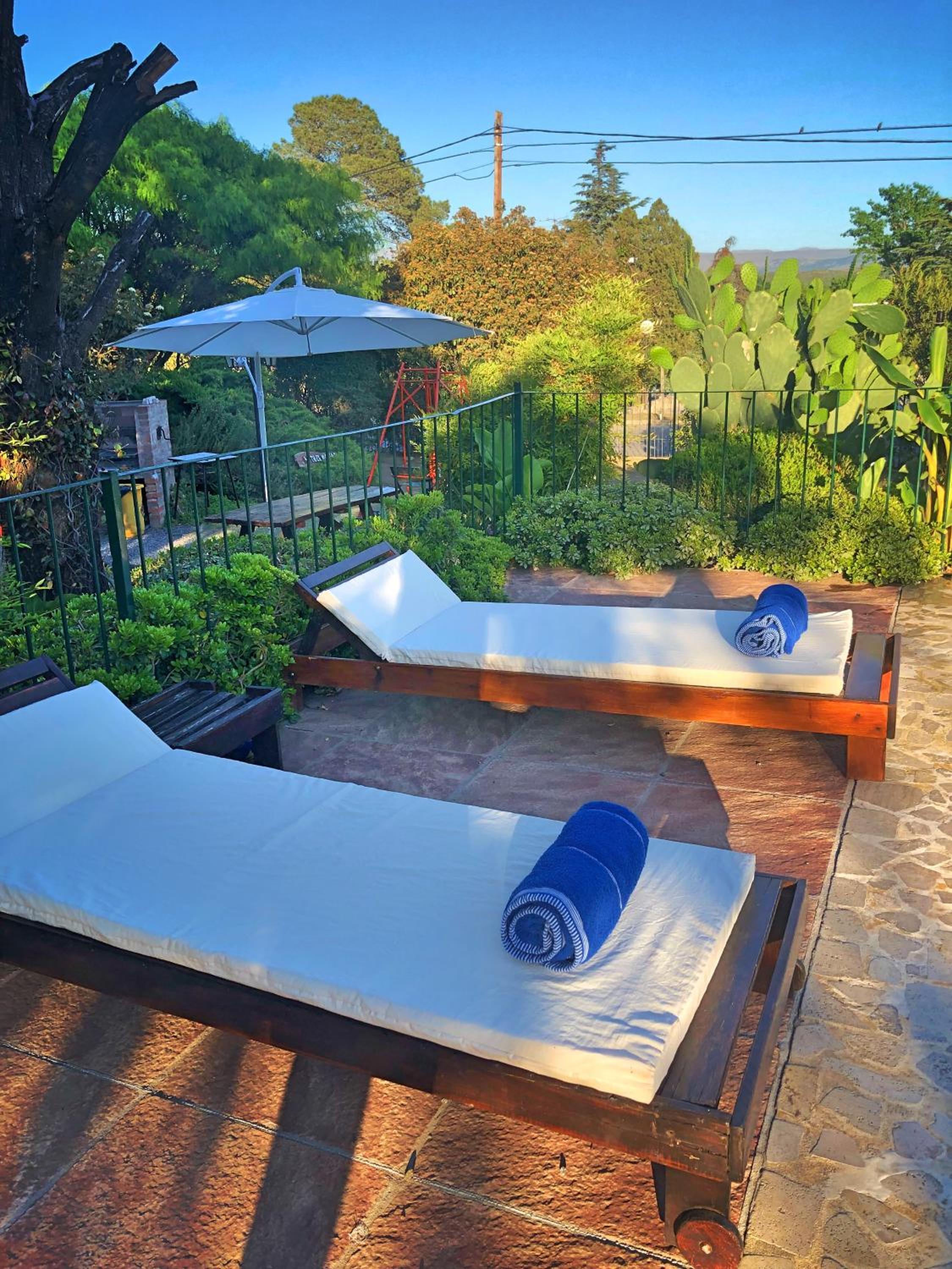 La tranquilidad del parque y la pileta.