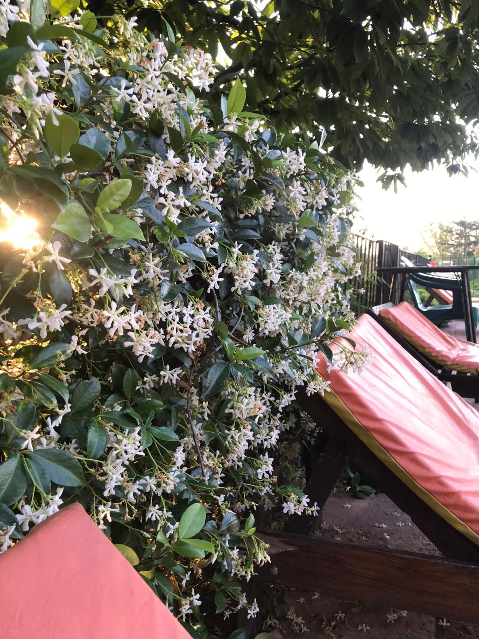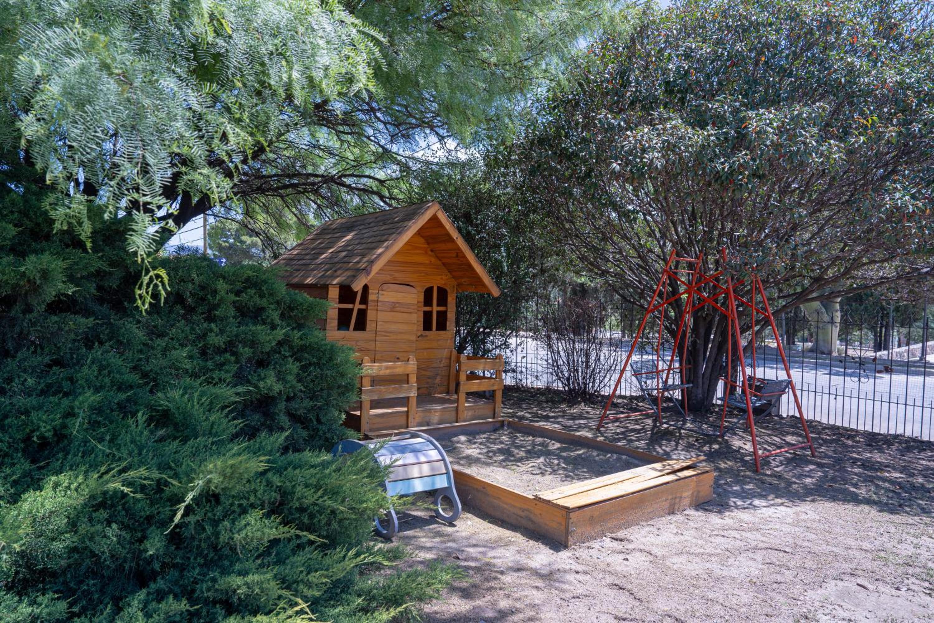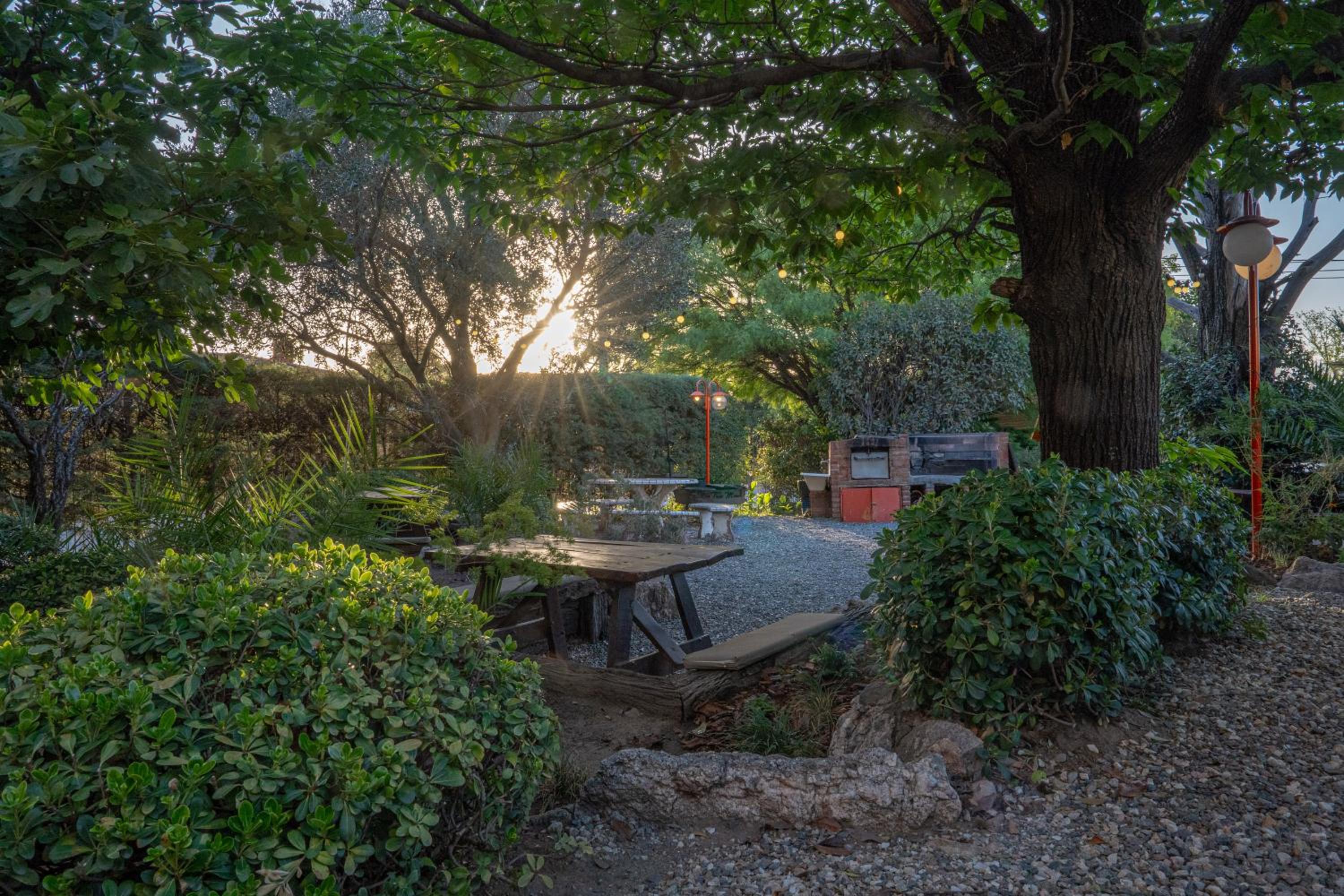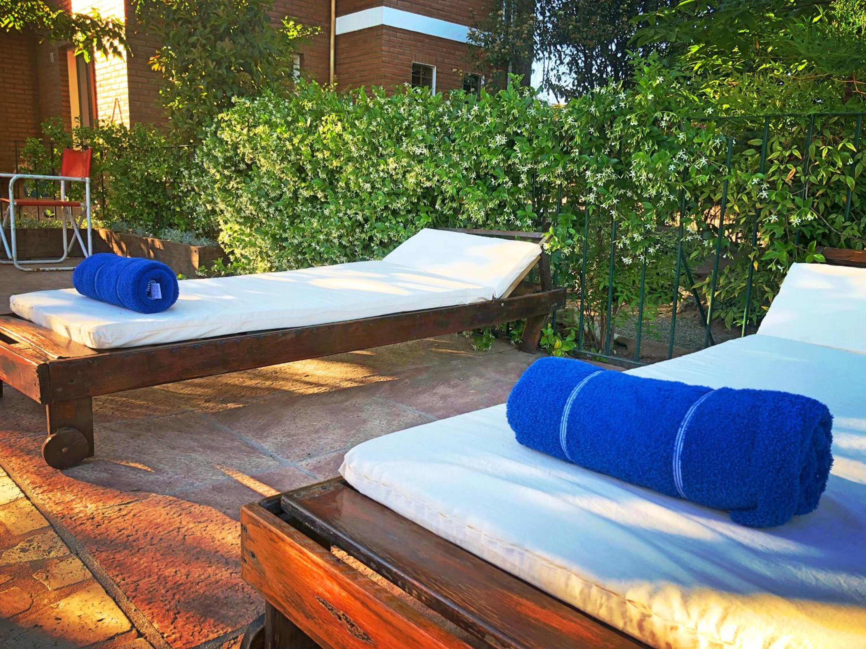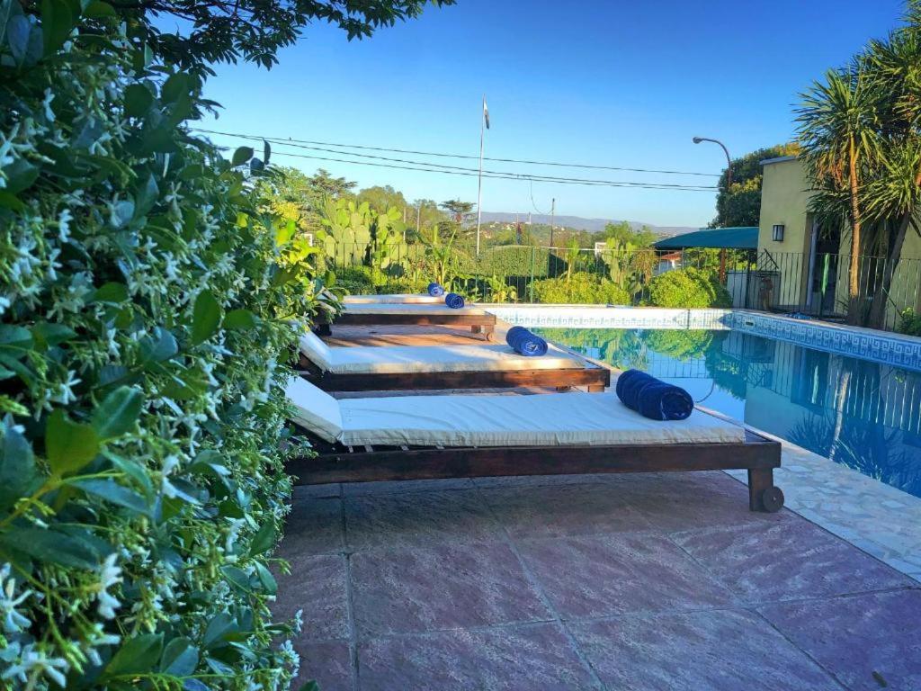 La tranquilidad del parque y la pileta.